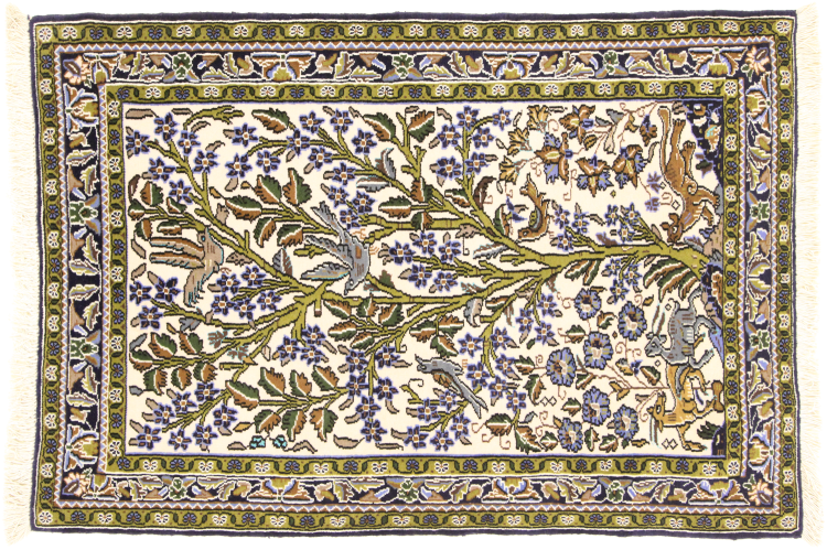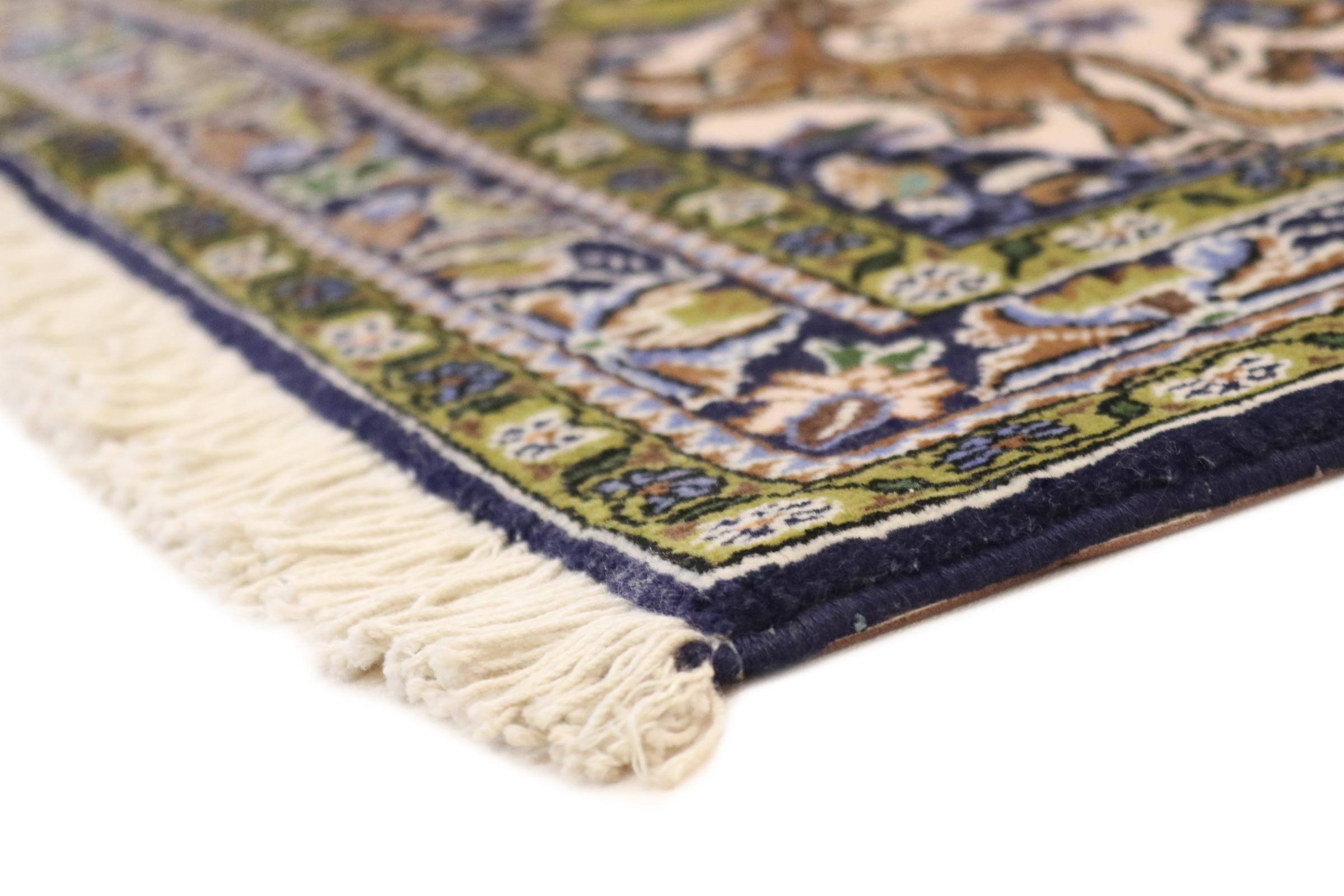 This carpet comes from Iran (formerly Persia) and as a Persian rug enjoys probably the highest reputation among all hand-knotted rug types. No other region looks back on such a long tradition in rug making as Iran. Thus, the probably finest and most elaborate rugs originate here. The robustness, durability and quality of the Persian knot are still unsurpassed today. Persian rugs are usually named after their region of origin. For instance, a Nain, a Ghom as well as an Isfahan carpet comes from the city of the same name in Iran.