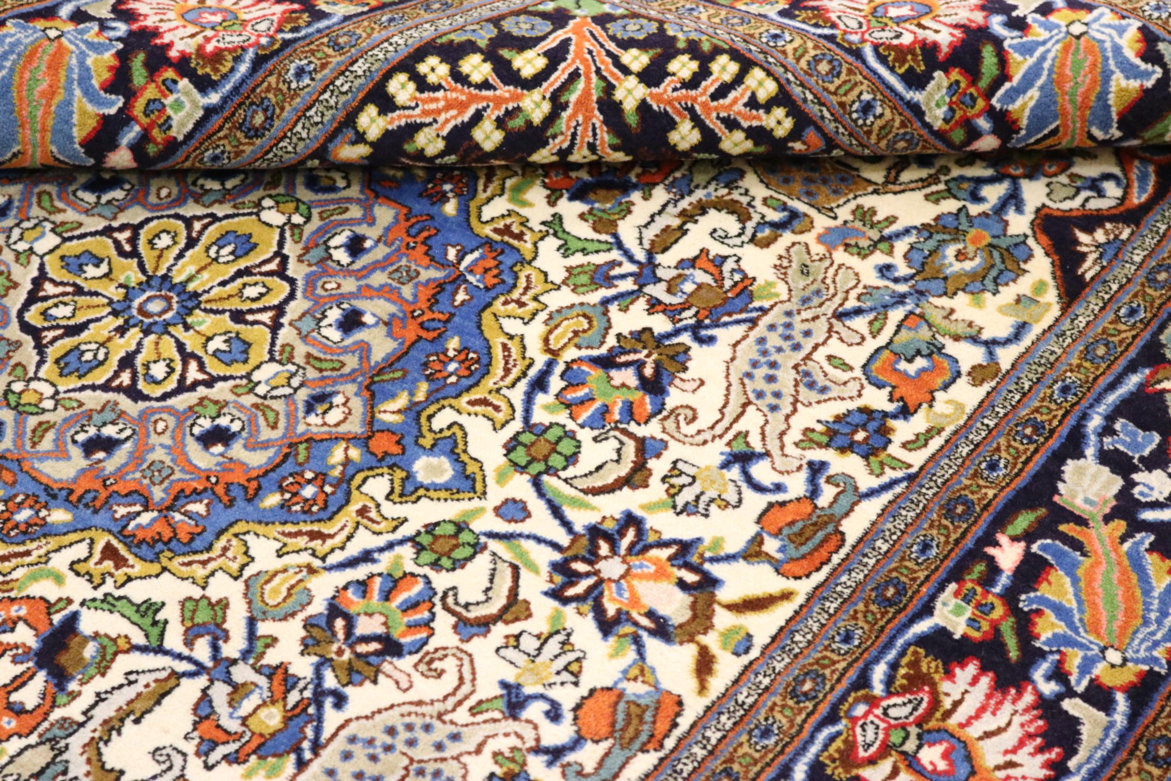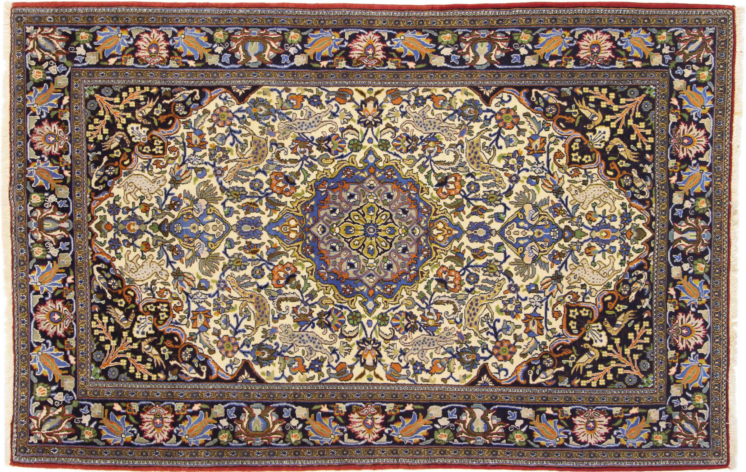 This carpet comes from Iran (formerly Persia) and as a Persian rug enjoys probably the highest reputation among all hand-knotted rug types. No other region looks back on such a long tradition in rug making as Iran. Thus, the probably finest and most elaborate rugs originate here. The robustness, durability and quality of the Persian knot are still unsurpassed today. Persian rugs are usually named after their region of origin. For instance, a Nain, a Ghom as well as an Isfahan carpet comes from the city of the same name in Iran.