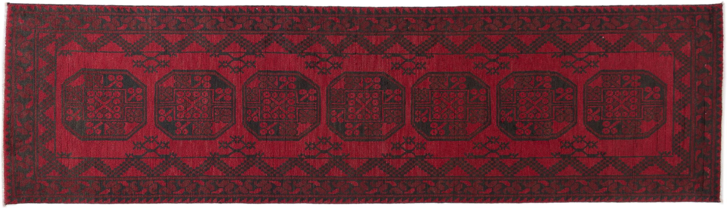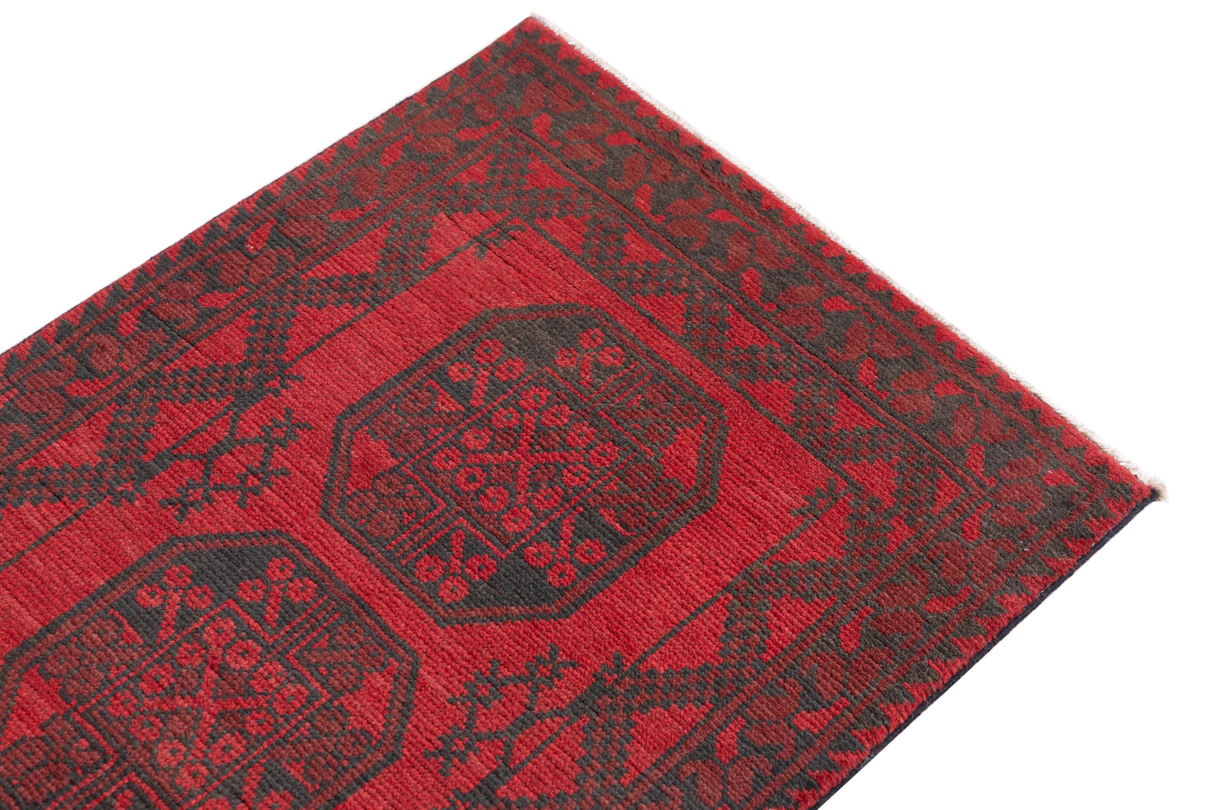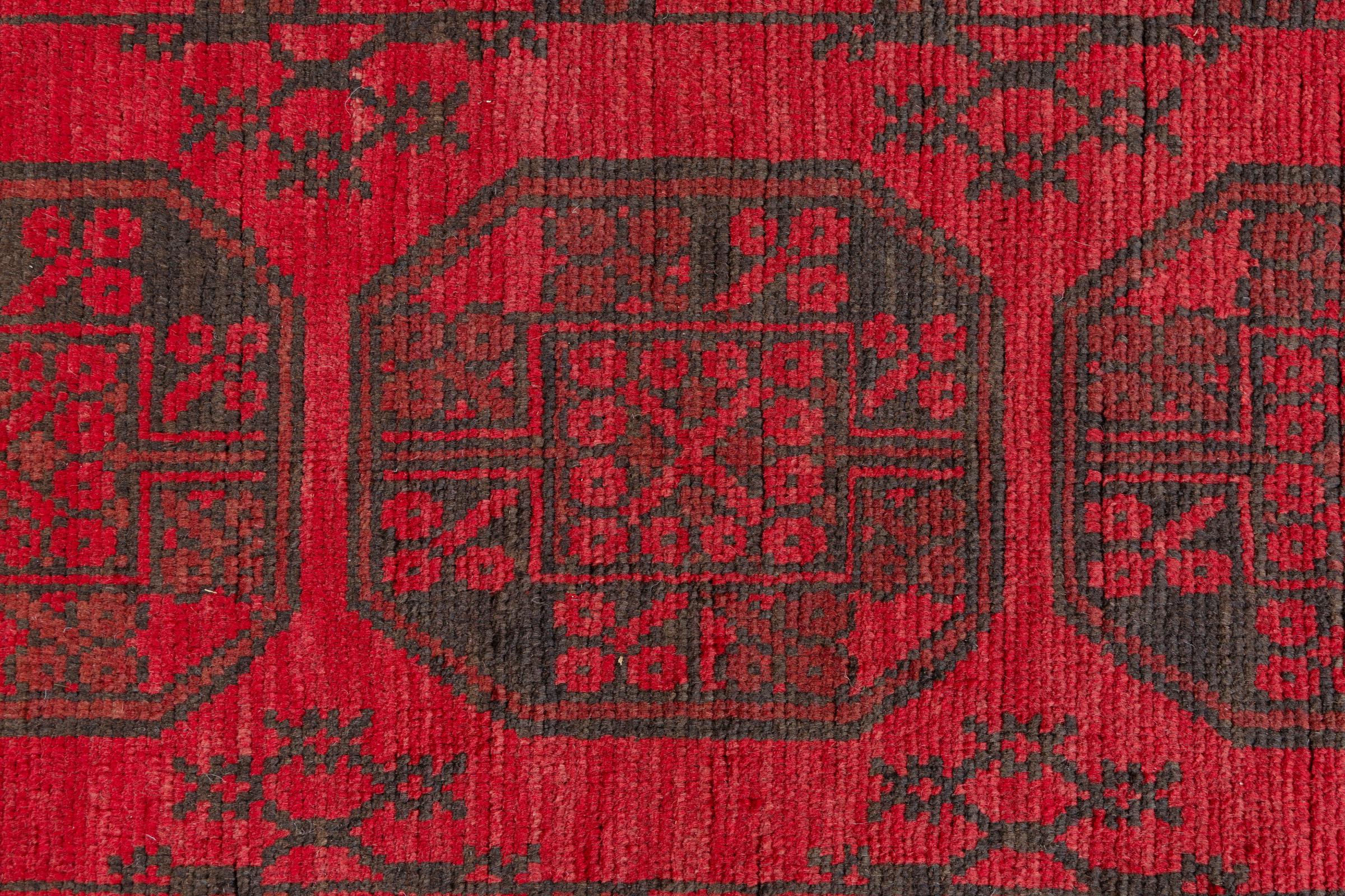 This Afghan-Akhche rug comes in beautiful warm shades of red. It has been knotted by hand in Afghanistan from fine sheep wool. The typical design of this rug is highly popular due to the warm color and the calm pattern.