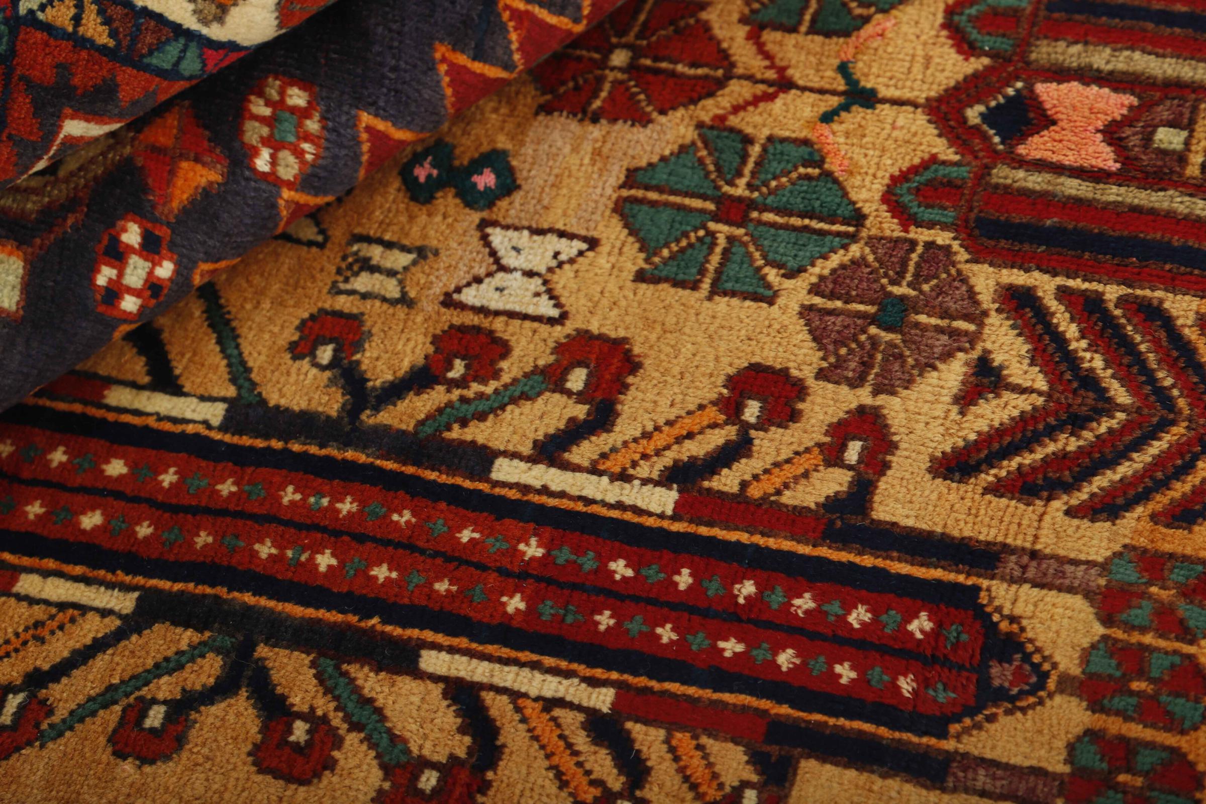 This rug has been knotted by Persian Afshar nomads. It possesses beautiful shades of red, dyed from natural colors. Nomad rugs are well-known for their geometric patterns, which are highly trending nowadays.