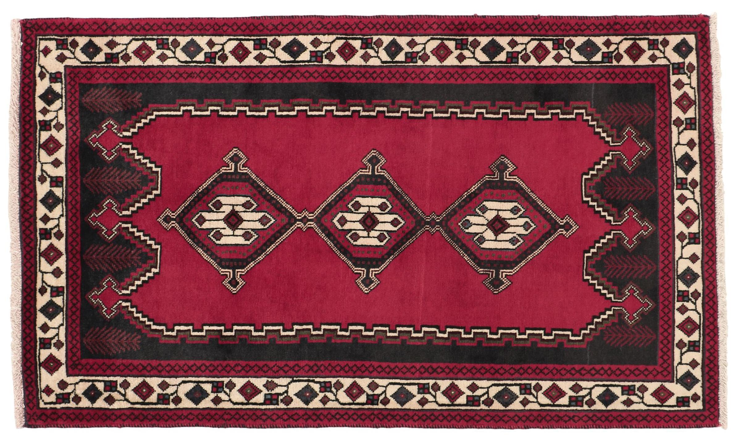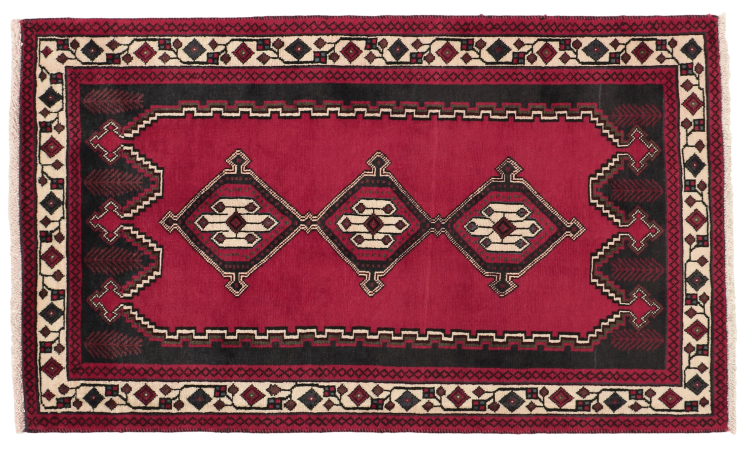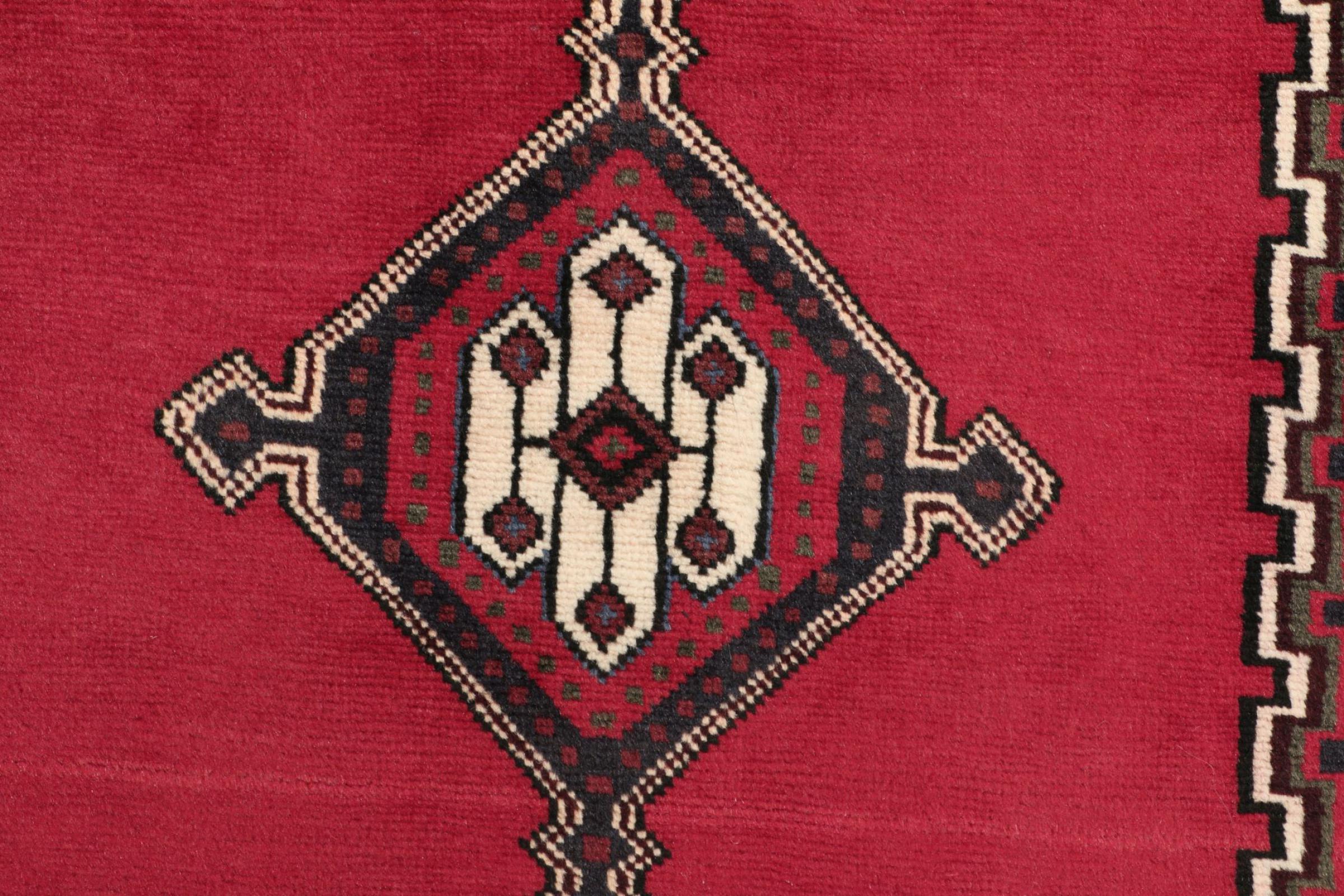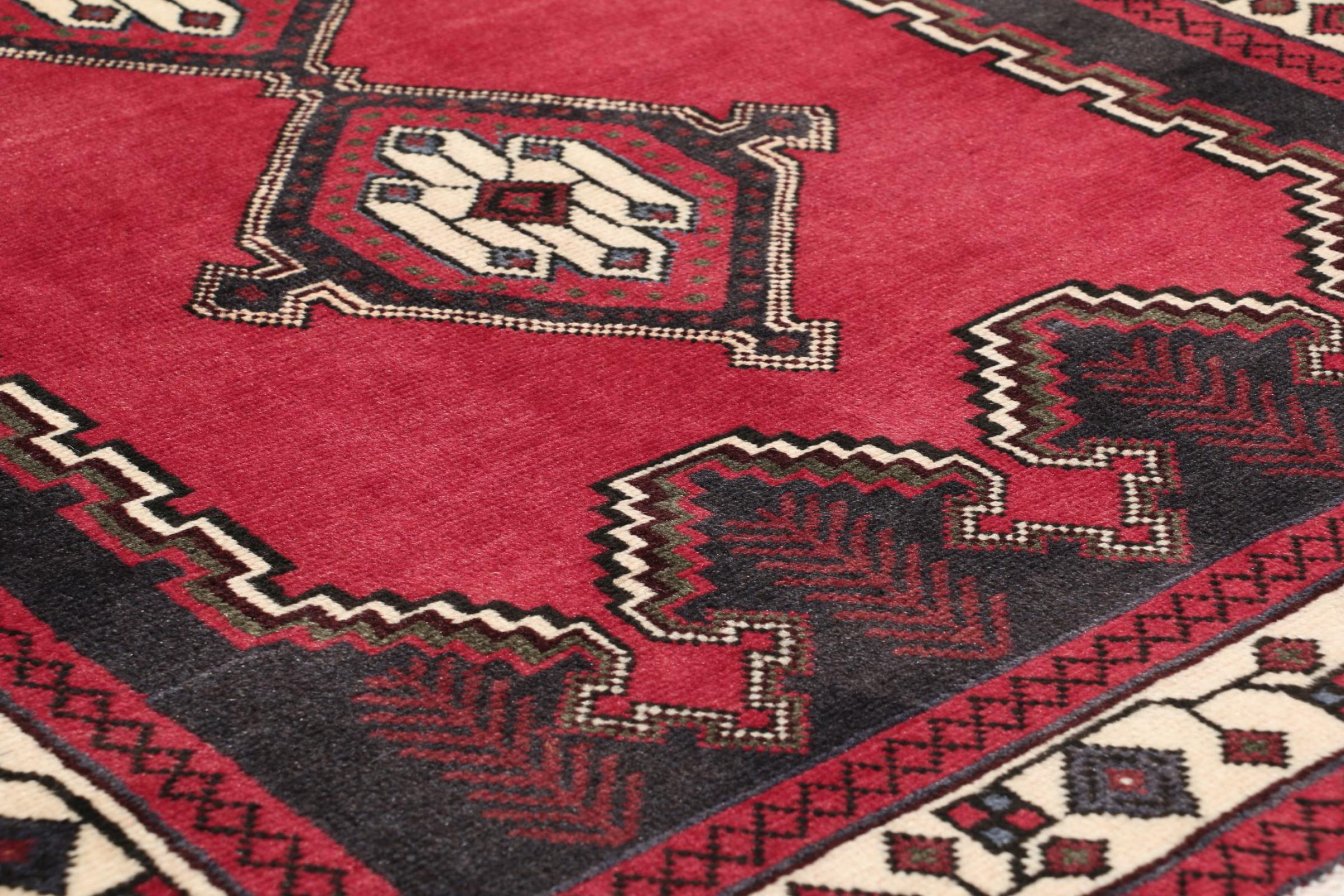 This rug has been knotted by Persian Afshar nomads. It possesses beautiful shades of red, dyed from natural colors. Nomad rugs are well-known for their geometric patterns, which are highly trending nowadays.