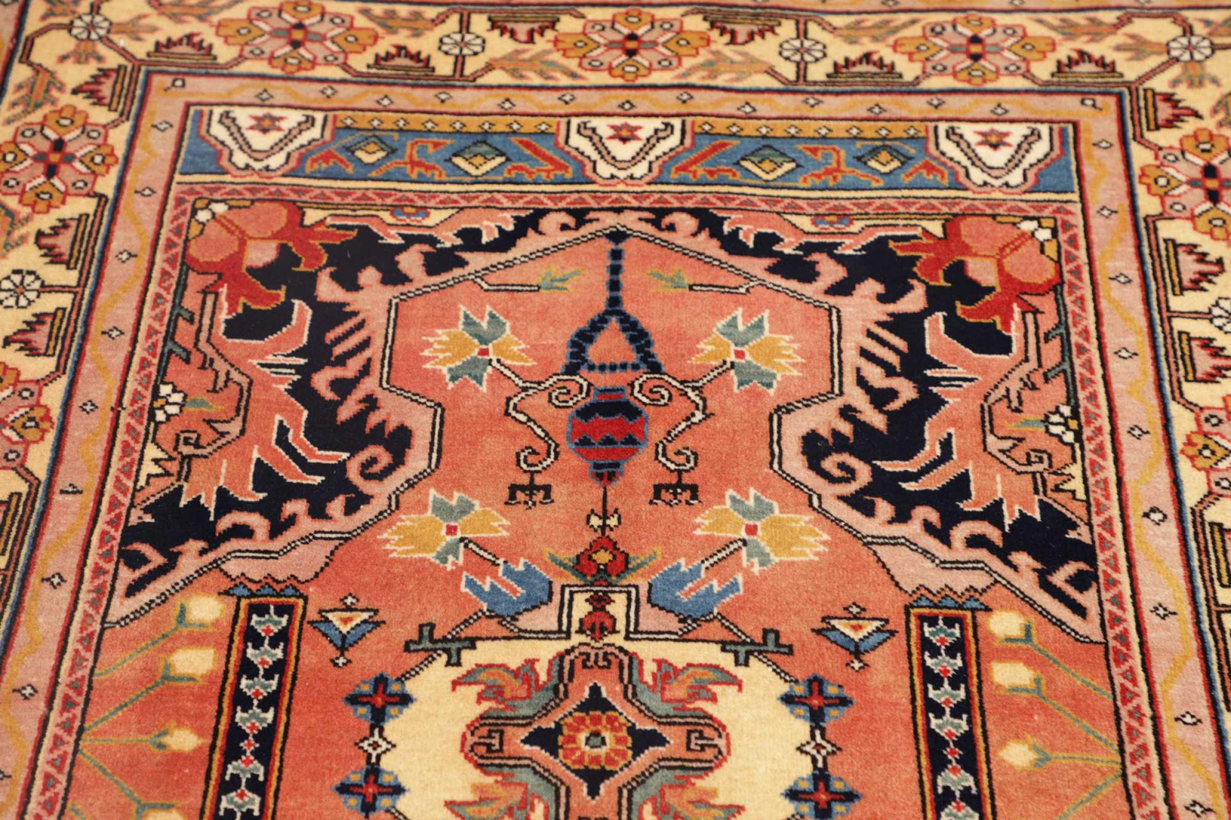 This carpet belongs to the village and nomadic carpets from Iran, the former Persia. This kind of carpets is hand knotted in smaller towns and villages in ancient tradition. Even nomads still knot Persian carpets in the open air. The carpets are knotted without a draft and entirely from memory. They are characterized by classical ornaments arranged in linear and geometric patterns. Thanks to their cultural and traditional origins, these rugs possess a unique character that embodies ancient Persia.