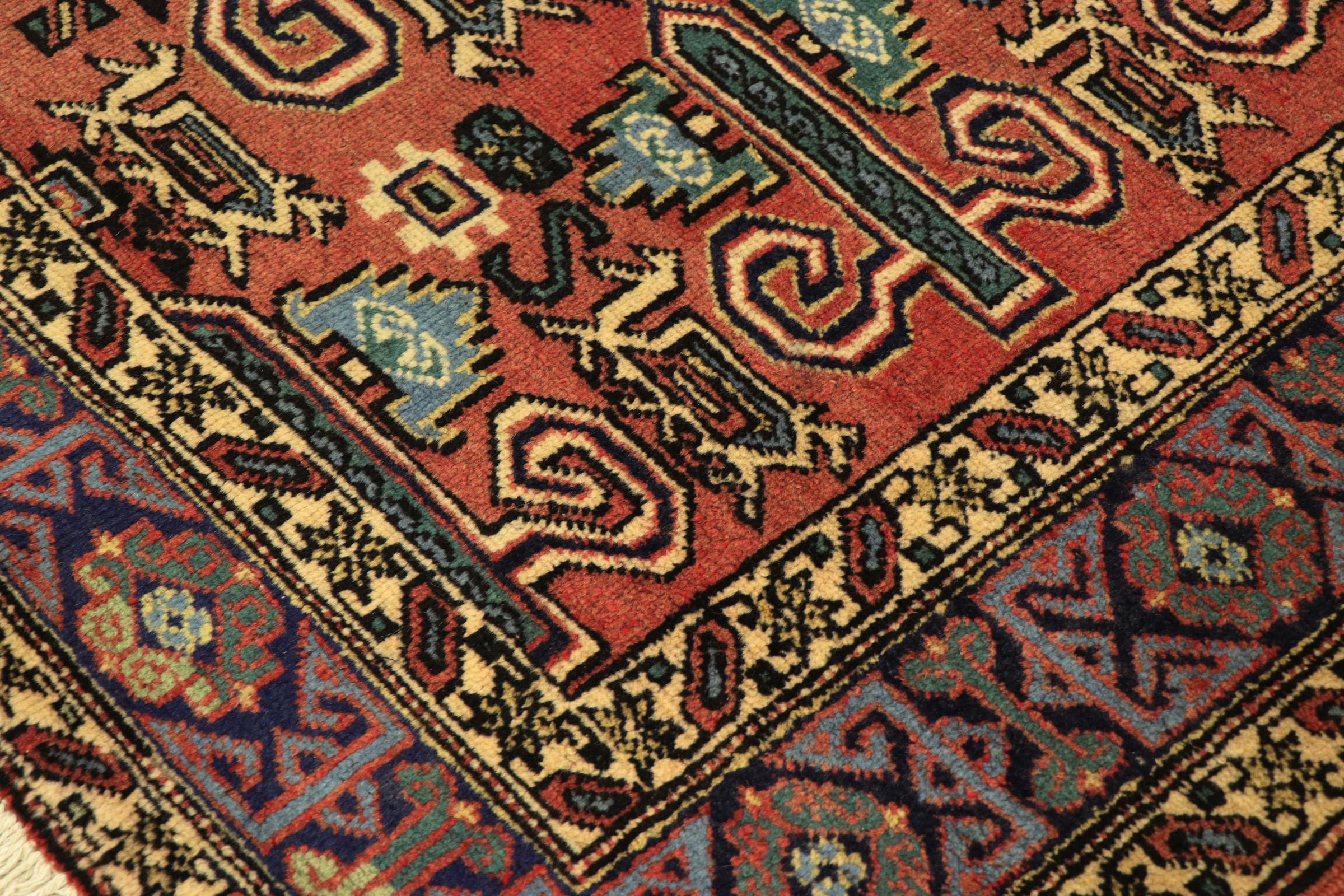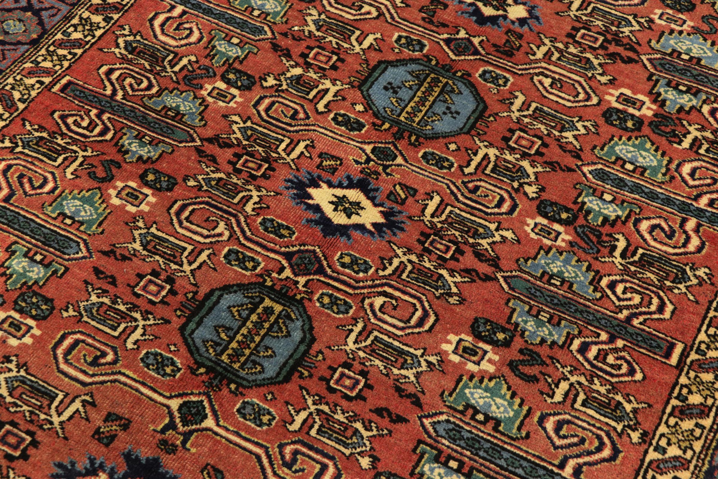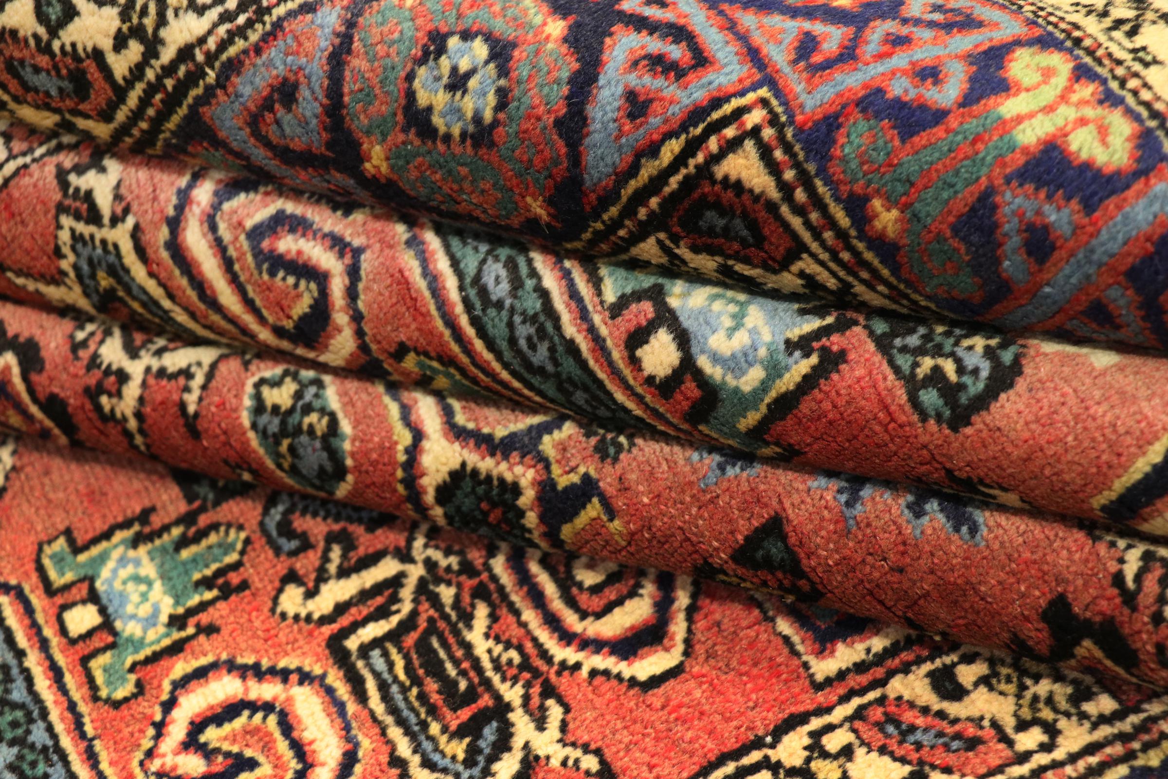 This carpet belongs to the village and nomadic carpets from Iran, the former Persia. This kind of carpets is hand knotted in smaller towns and villages in ancient tradition. Even nomads still knot Persian carpets in the open air. The carpets are knotted without a draft and entirely from memory. They are characterized by classical ornaments arranged in linear and geometric patterns. Thanks to their cultural and traditional origins, these rugs possess a unique character that embodies ancient Persia.
