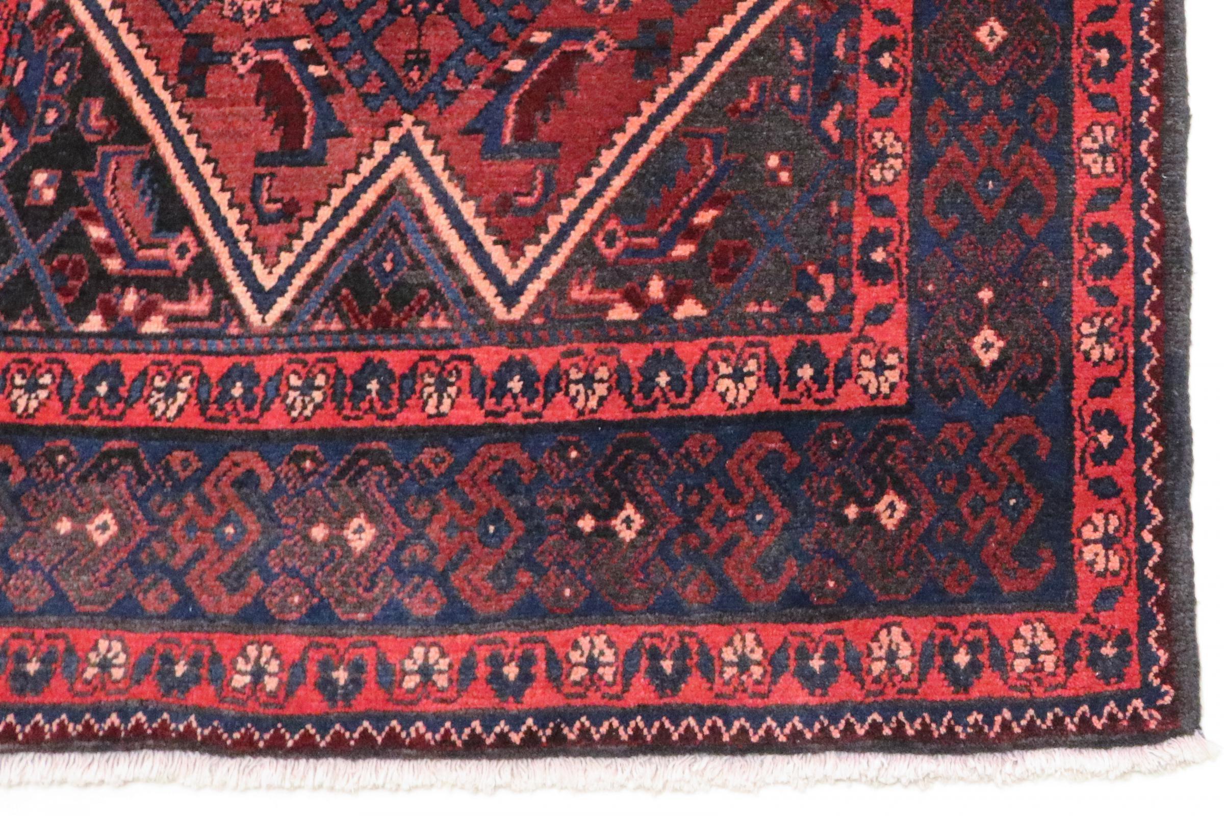 This rug from Heriz (Heris) has been made in old traditional Persian handicraft. Heriz is located in northwestern Iran. This rug has been knotted by hand from fine sheep wool. It has a beautiful medallion in its center, which is typical for this type of rug.
