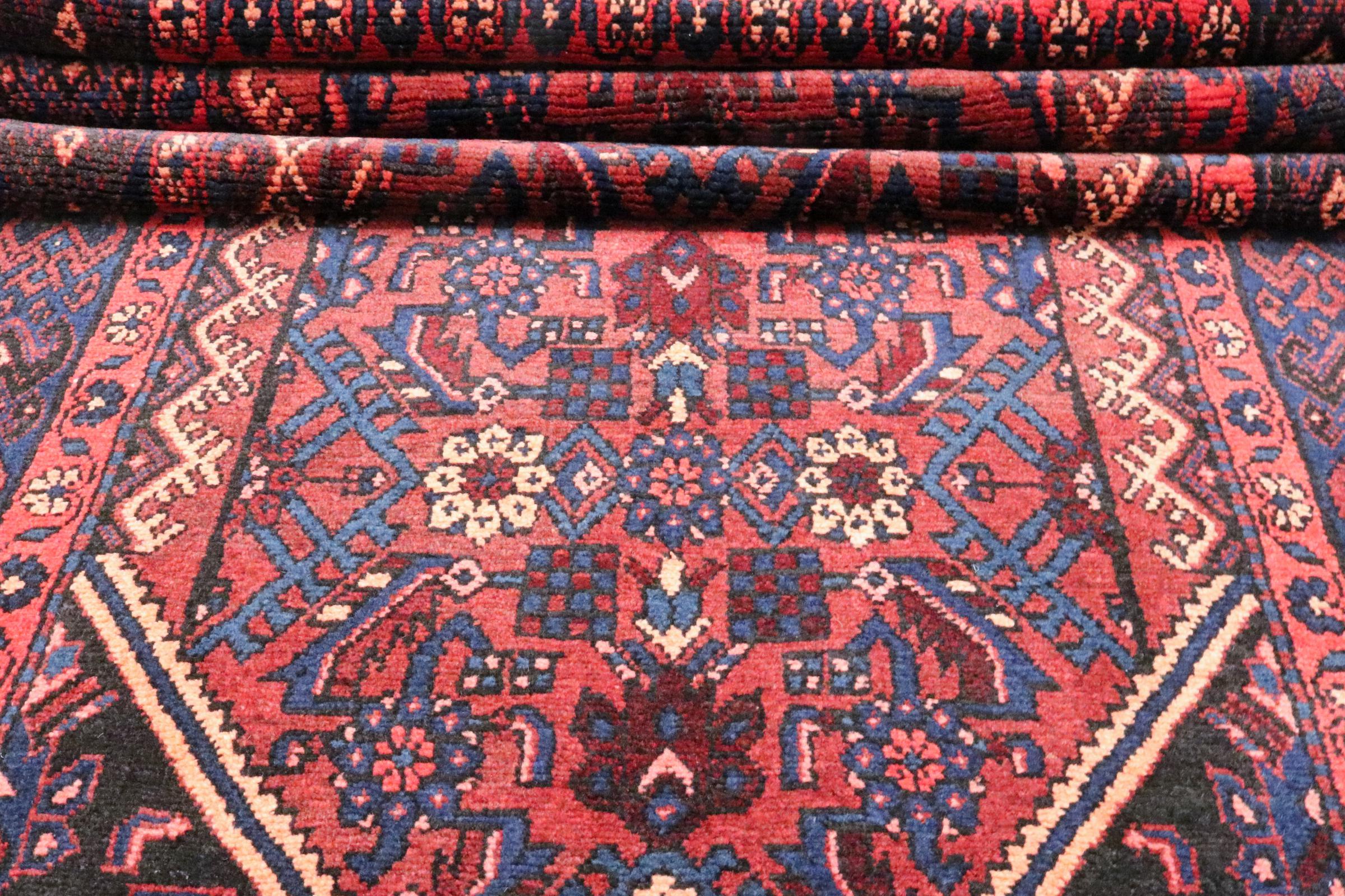 This carpet belongs to the village and nomadic carpets from Iran, the former Persia. This kind of carpets is hand knotted in smaller towns and villages in ancient tradition. Even nomads still knot Persian carpets in the open air. The carpets are knotted without a draft and entirely from memory. They are characterized by classical ornaments arranged in linear and geometric patterns. Thanks to their cultural and traditional origins, these rugs possess a unique character that embodies ancient Persia.