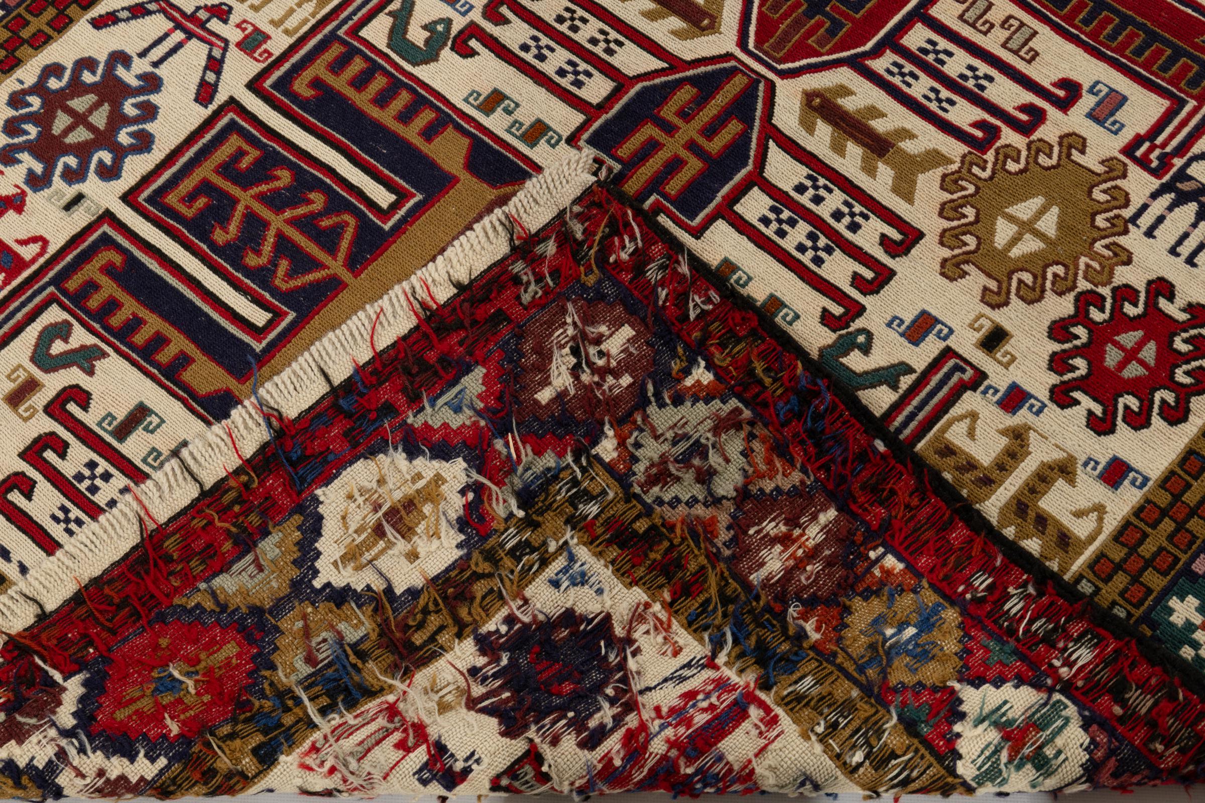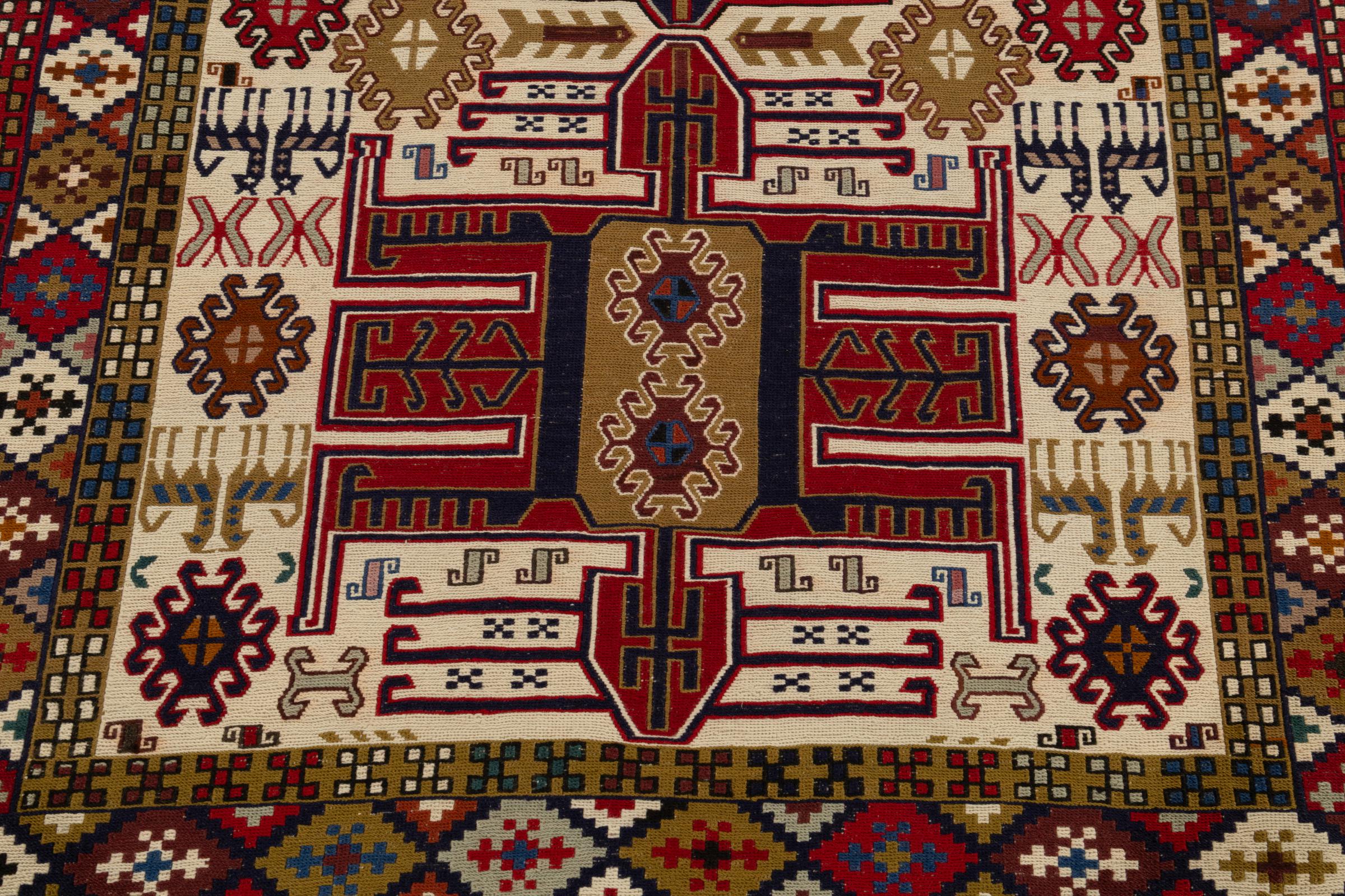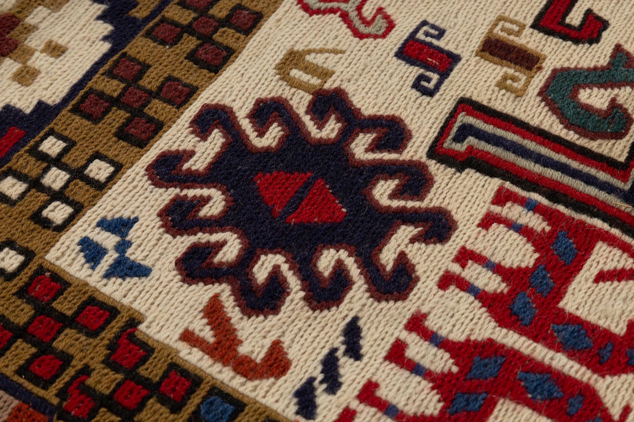 This carpet belongs to the village and nomadic carpets from Iran, the former Persia. This kind of carpets is hand knotted in smaller towns and villages in ancient tradition. Even nomads still knot Persian carpets in the open air. The carpets are knotted without a draft and entirely from memory. They are characterized by classical ornaments arranged in linear and geometric patterns. Thanks to their cultural and traditional origins, these rugs possess a unique character that embodies ancient Persia.