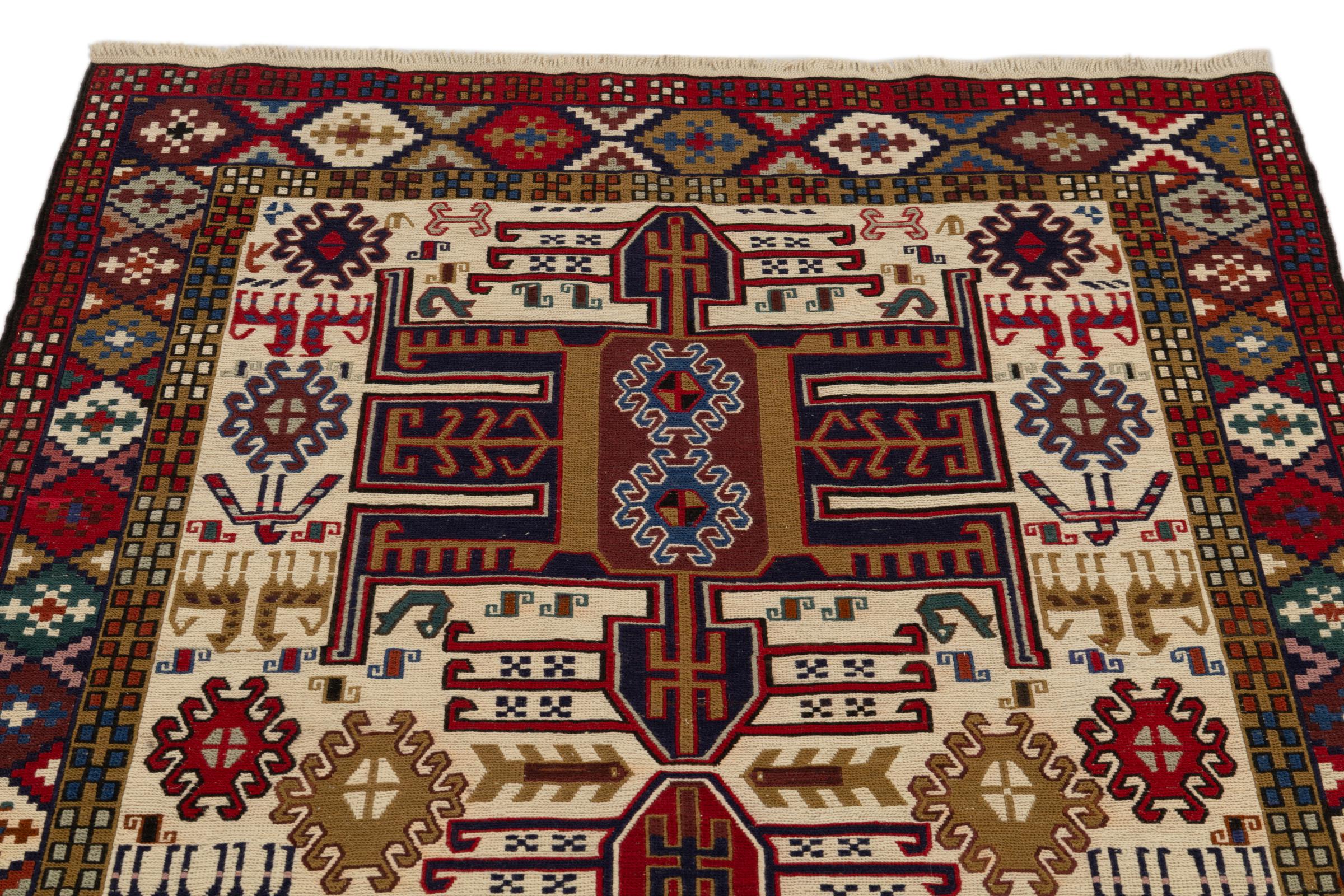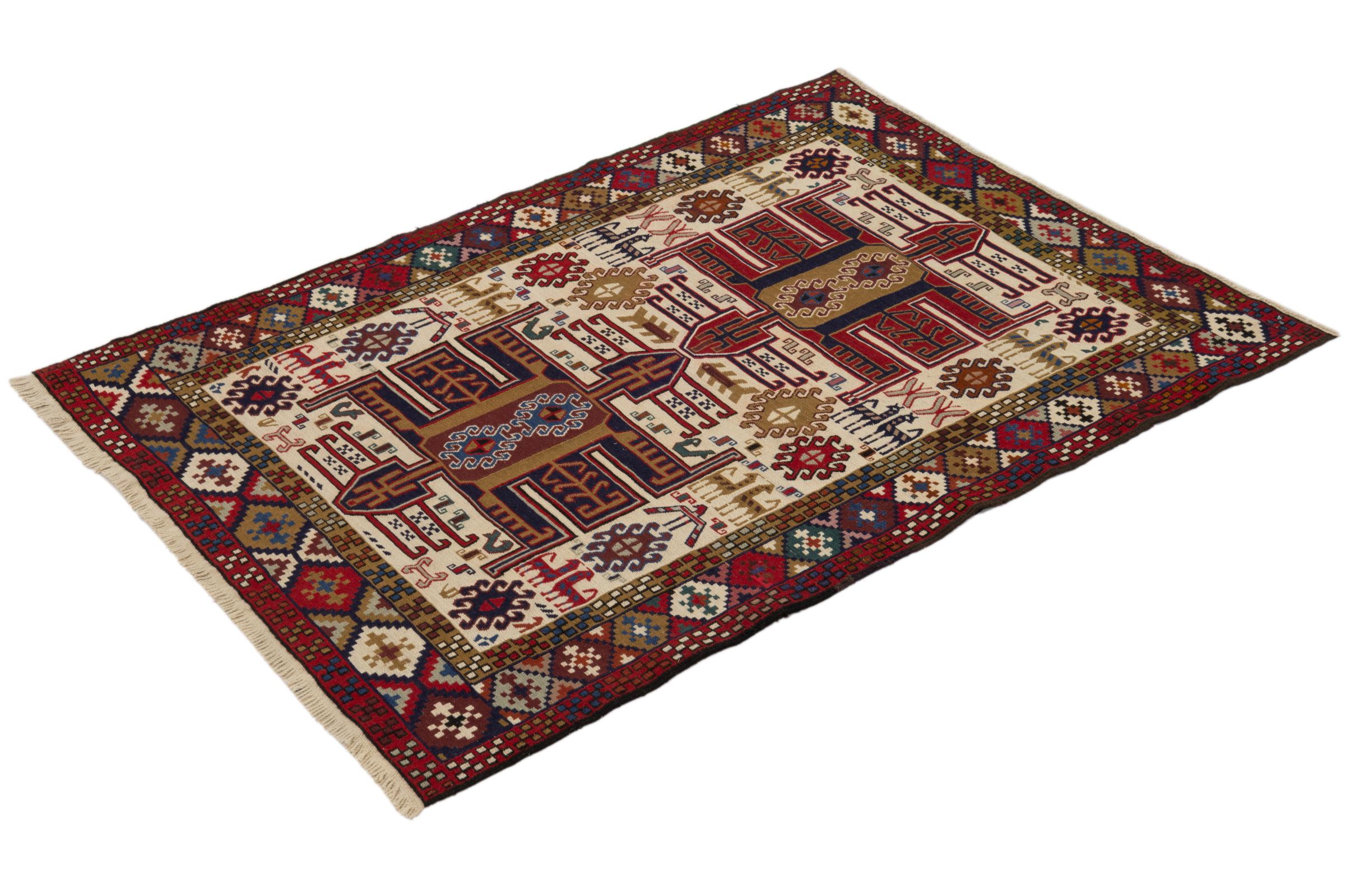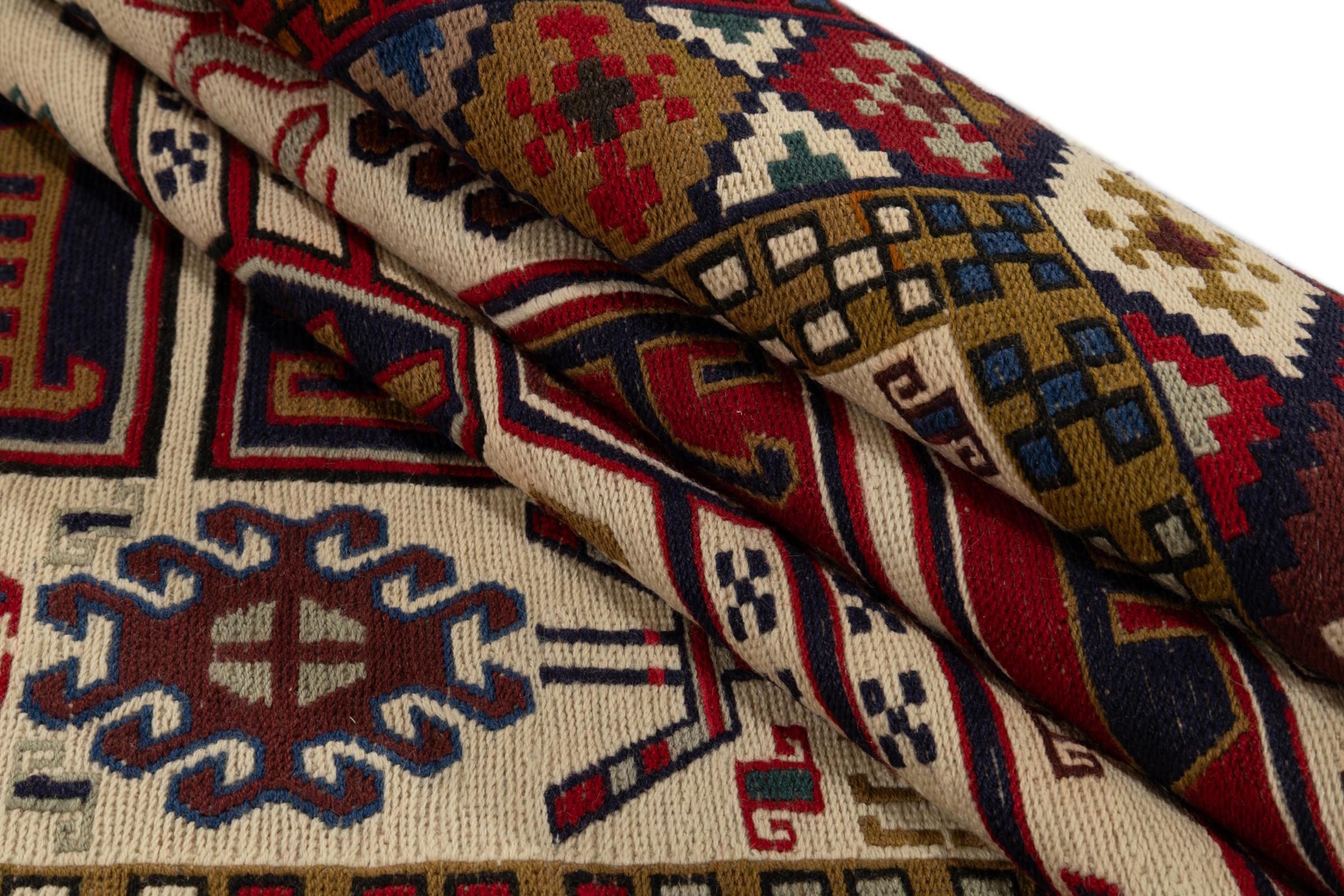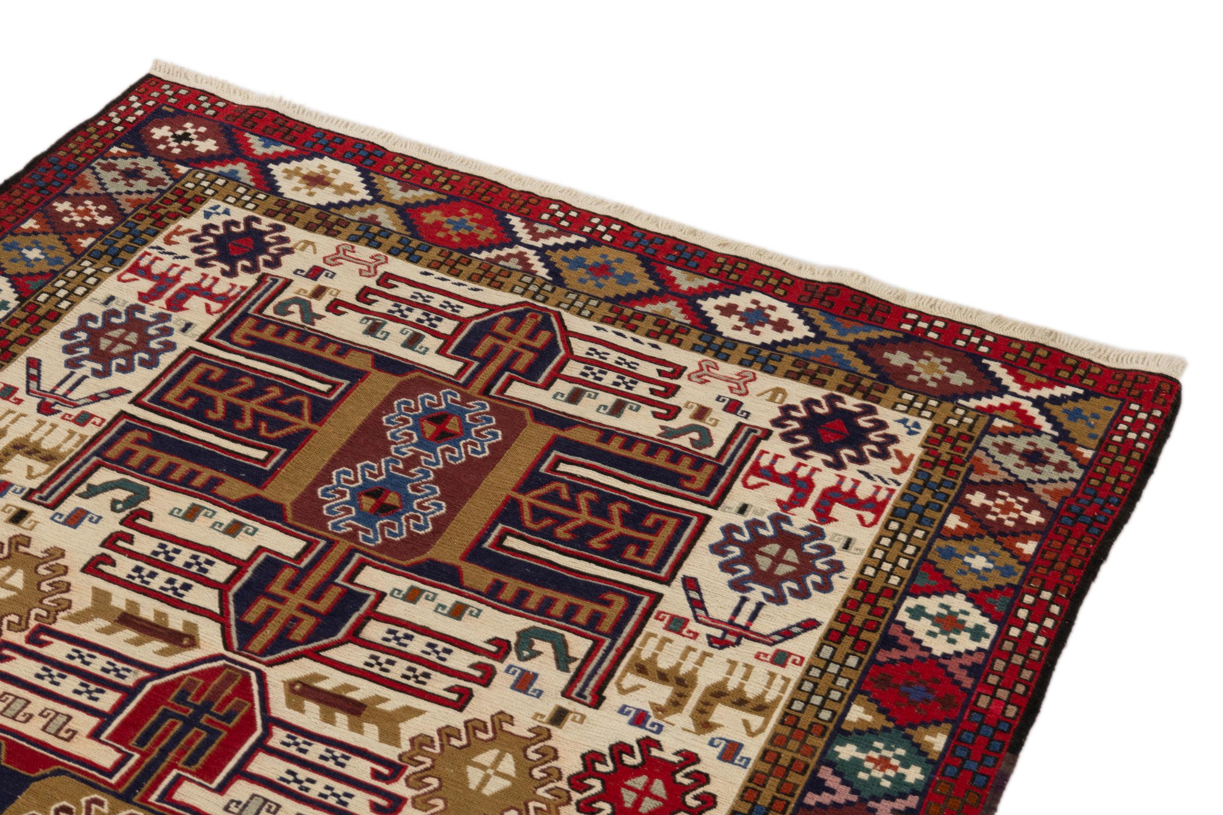 This carpet belongs to the village and nomadic carpets from Iran, the former Persia. This kind of carpets is hand knotted in smaller towns and villages in ancient tradition. Even nomads still knot Persian carpets in the open air. The carpets are knotted without a draft and entirely from memory. They are characterized by classical ornaments arranged in linear and geometric patterns. Thanks to their cultural and traditional origins, these rugs possess a unique character that embodies ancient Persia.