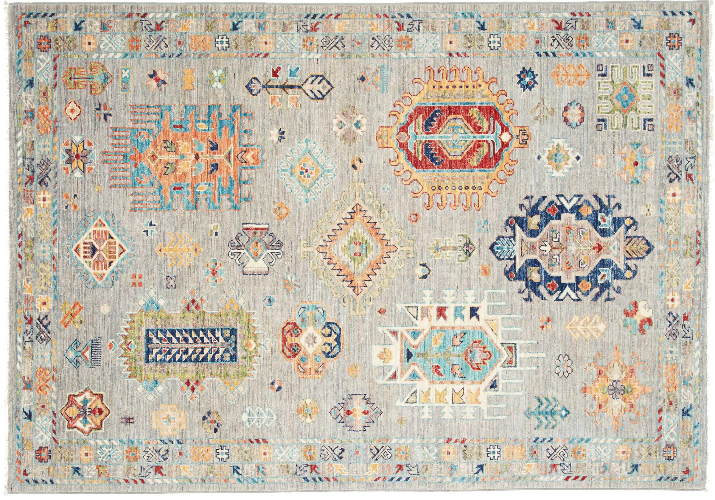 This Arijana rug is a modern oriental rug that combines classic ornaments with modern colors and patterns. This breathtaking rug is the result of a harmonious composition. The rug has been knotted by hand along traditional handicraft. It consists of high-quality sheep's wool.