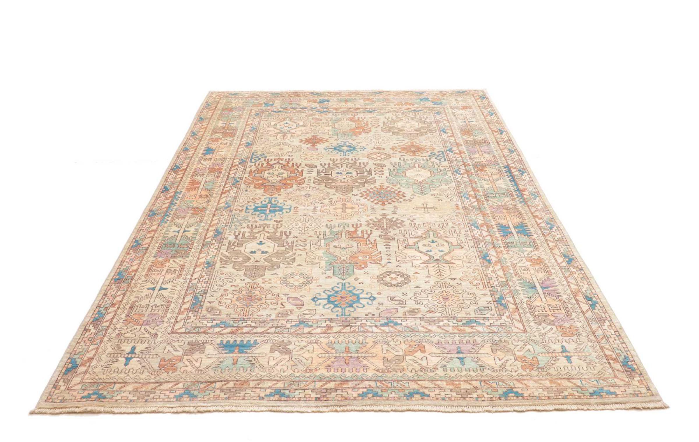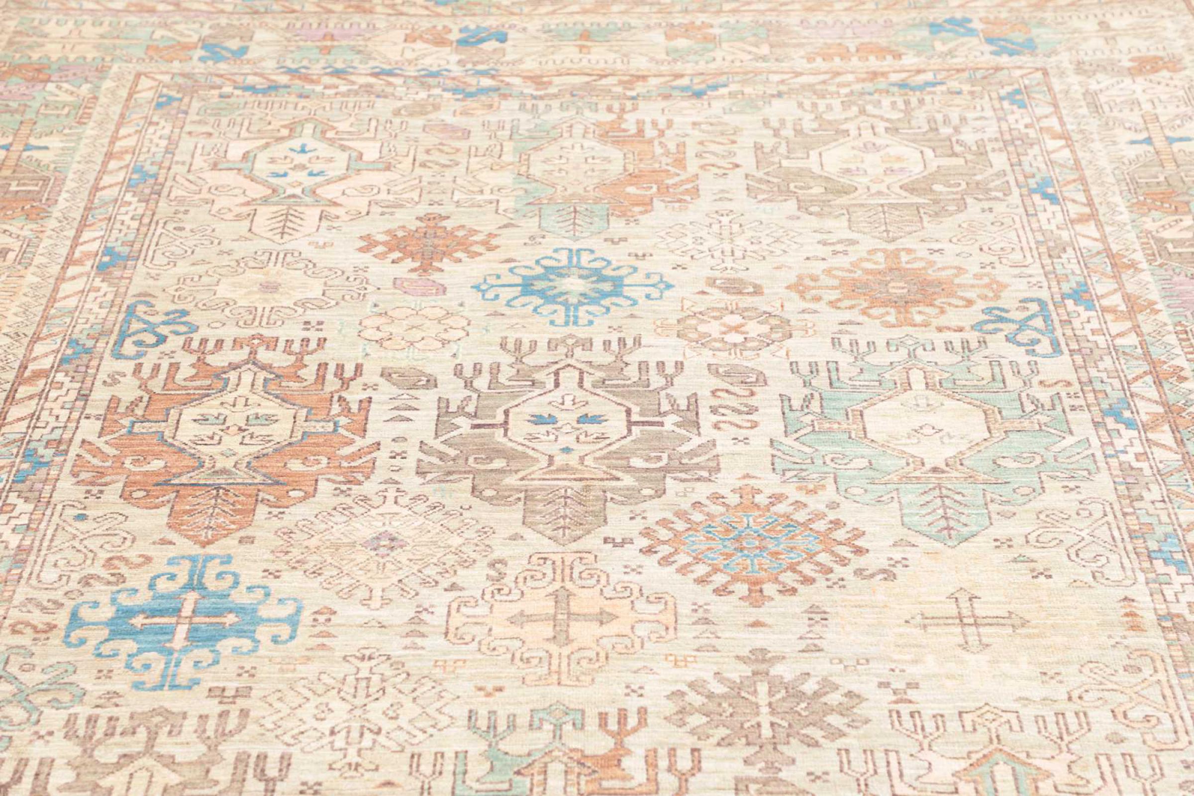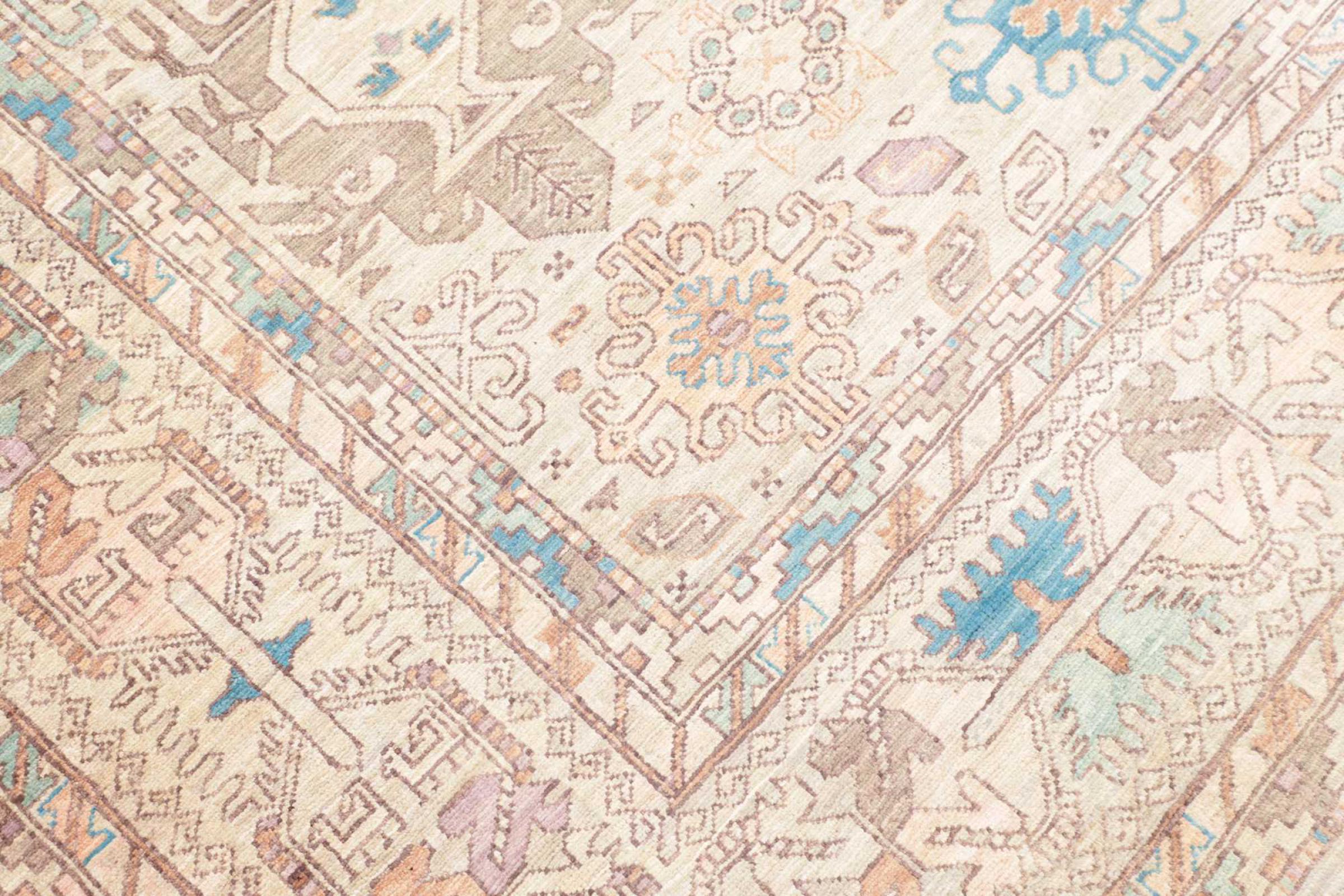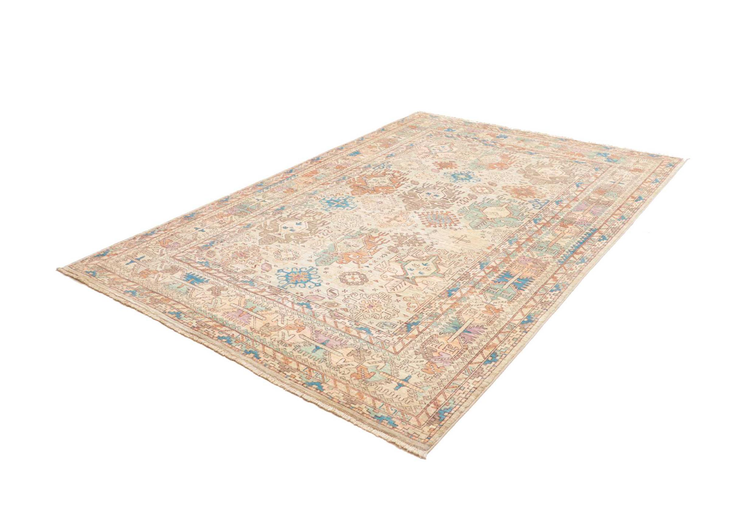 This rug is made of hand spun sheep wool of the highest quality. Especially in Iran (former Persia), Afghanistan and Pakistan wool is still spun by hand before the actual knotting of the rug begins. Wool has proven itself as a natural and extremely hard-wearing material over centuries. Among other things, it has dirt-repellent and heat-insulating properties. At the same time, wool is incomparably soft and has a natural shine.