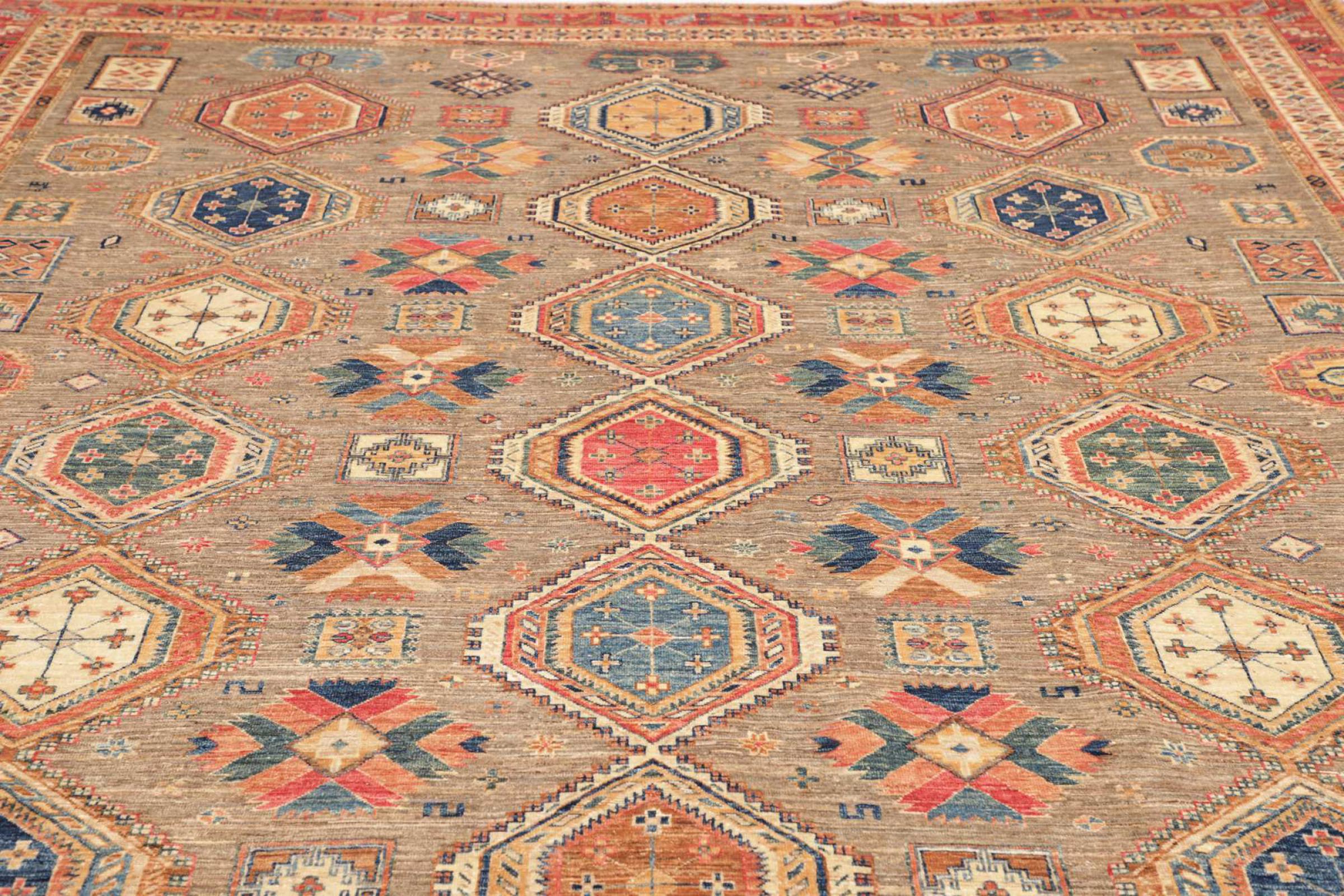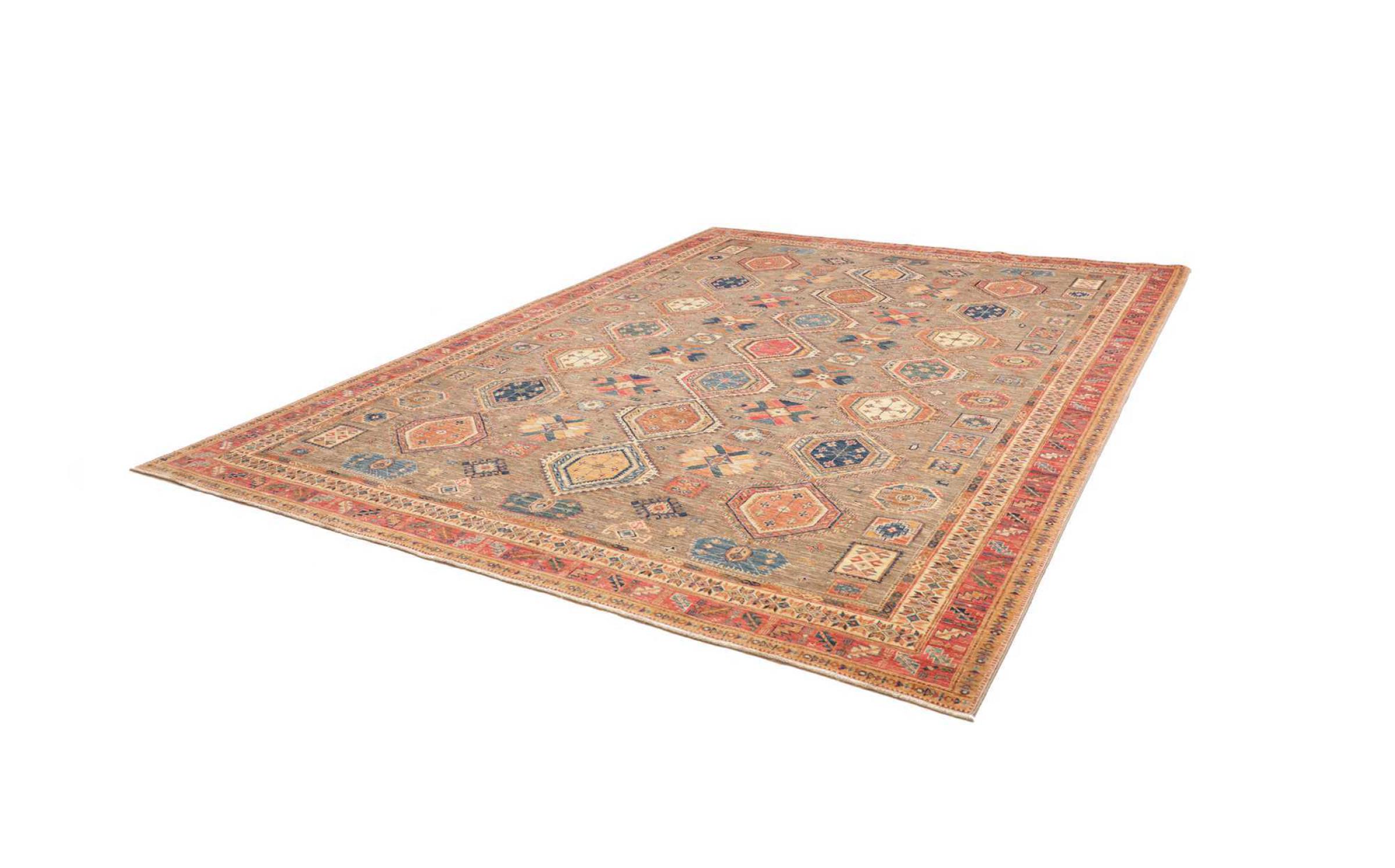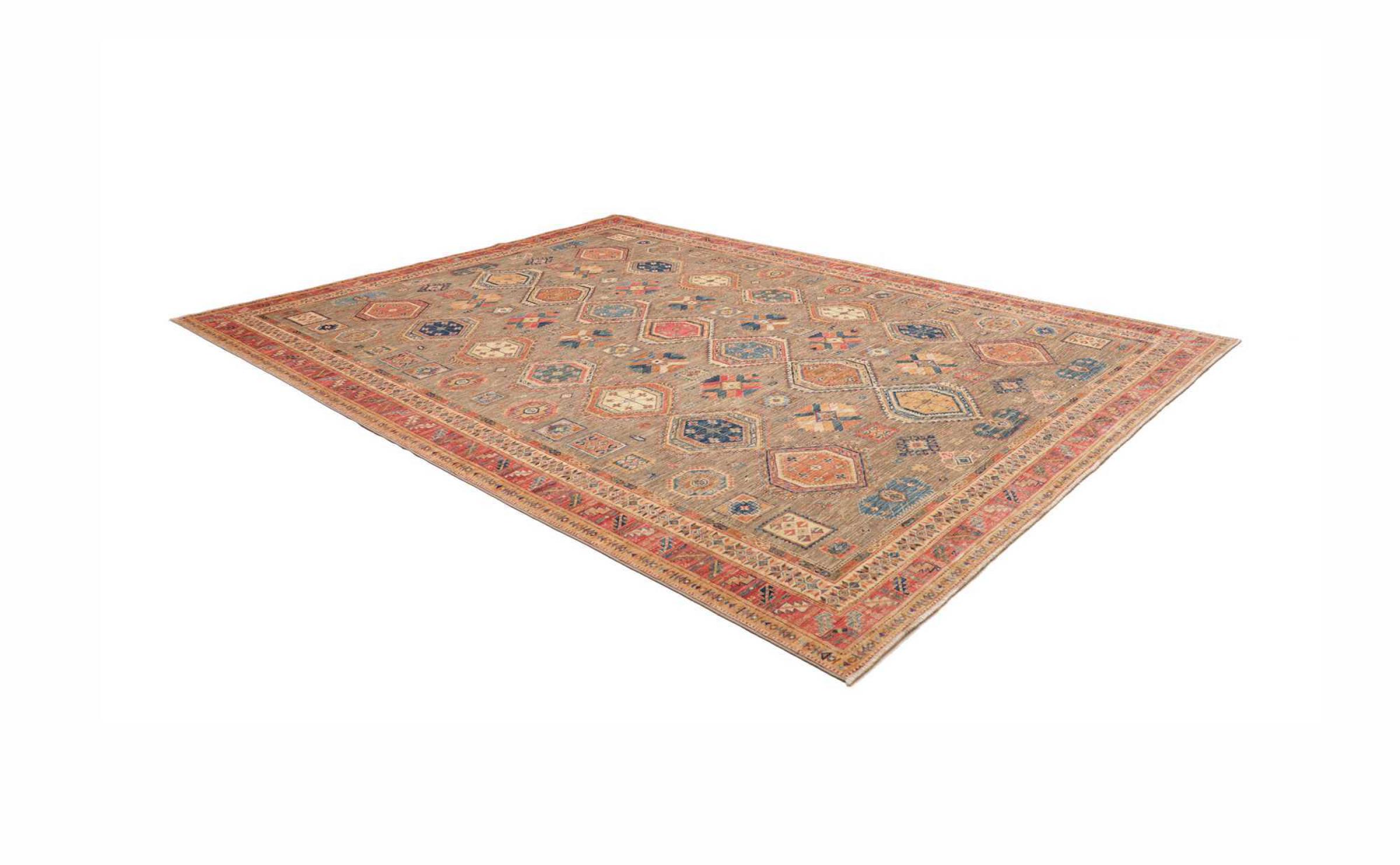 Rug ID: 306375006902995 Size: 12'1"x9'1" ft Thickness: ap. 0.2 in Knot density: 82 - 103 / square inch Manufacturing: Knotted by hand Pile: Handspun wool Warp: Cotton Origin: Pakistan Age: New Weight: ap. 79 lb In stock: Unique - Only 1 in stock