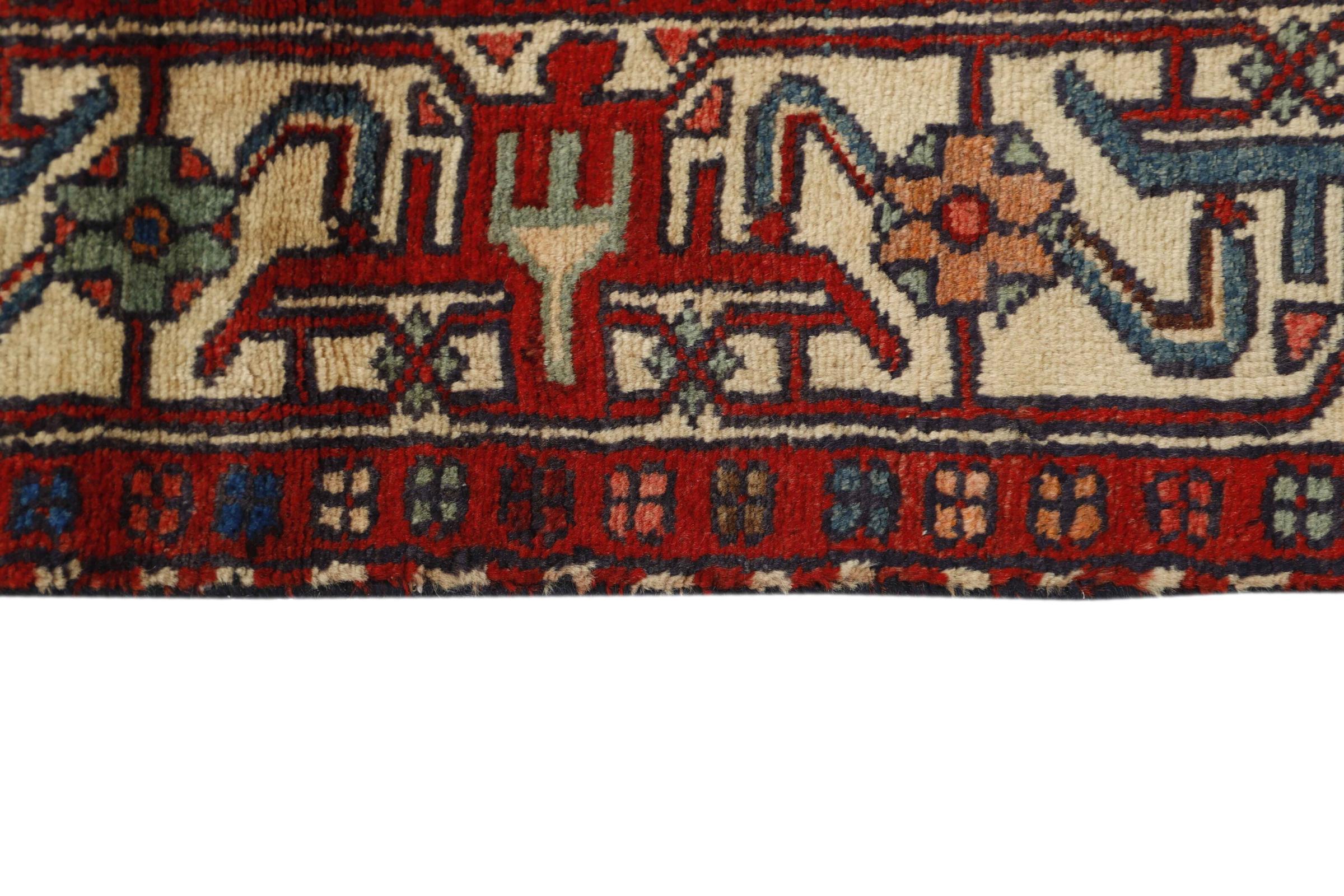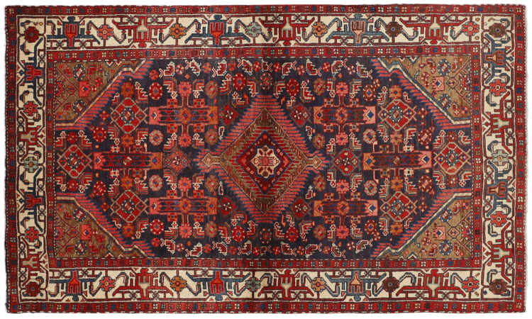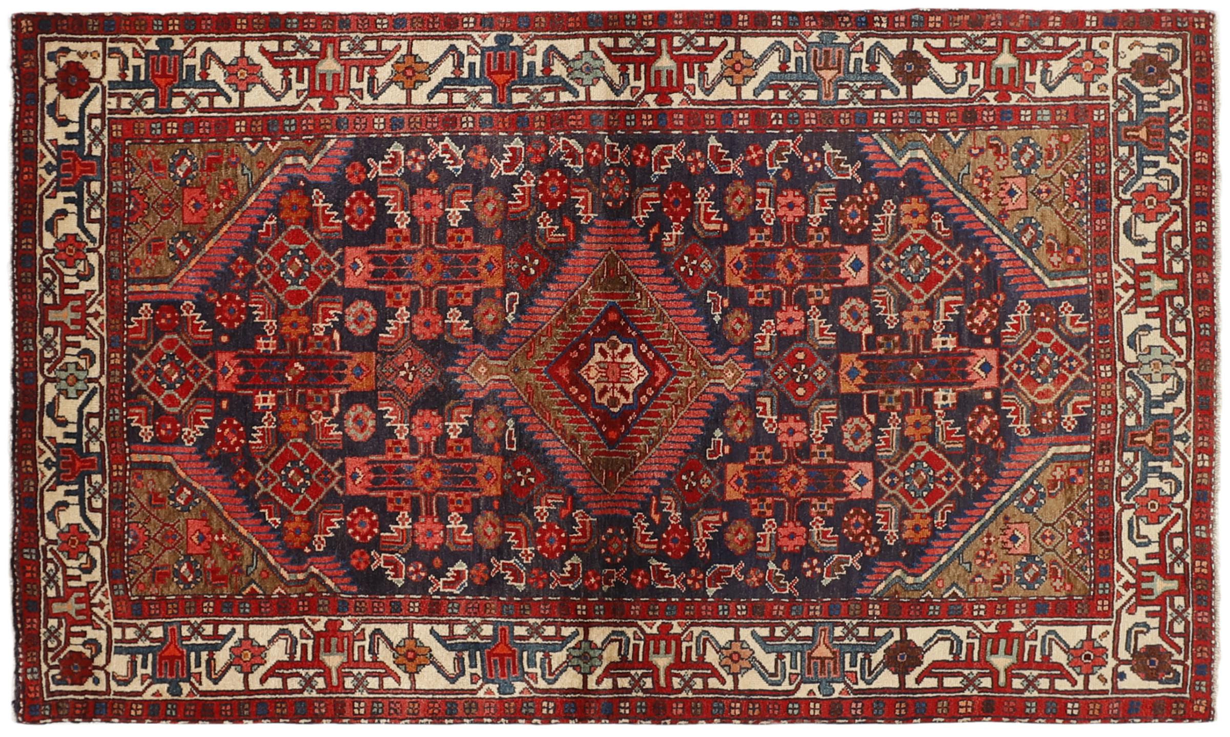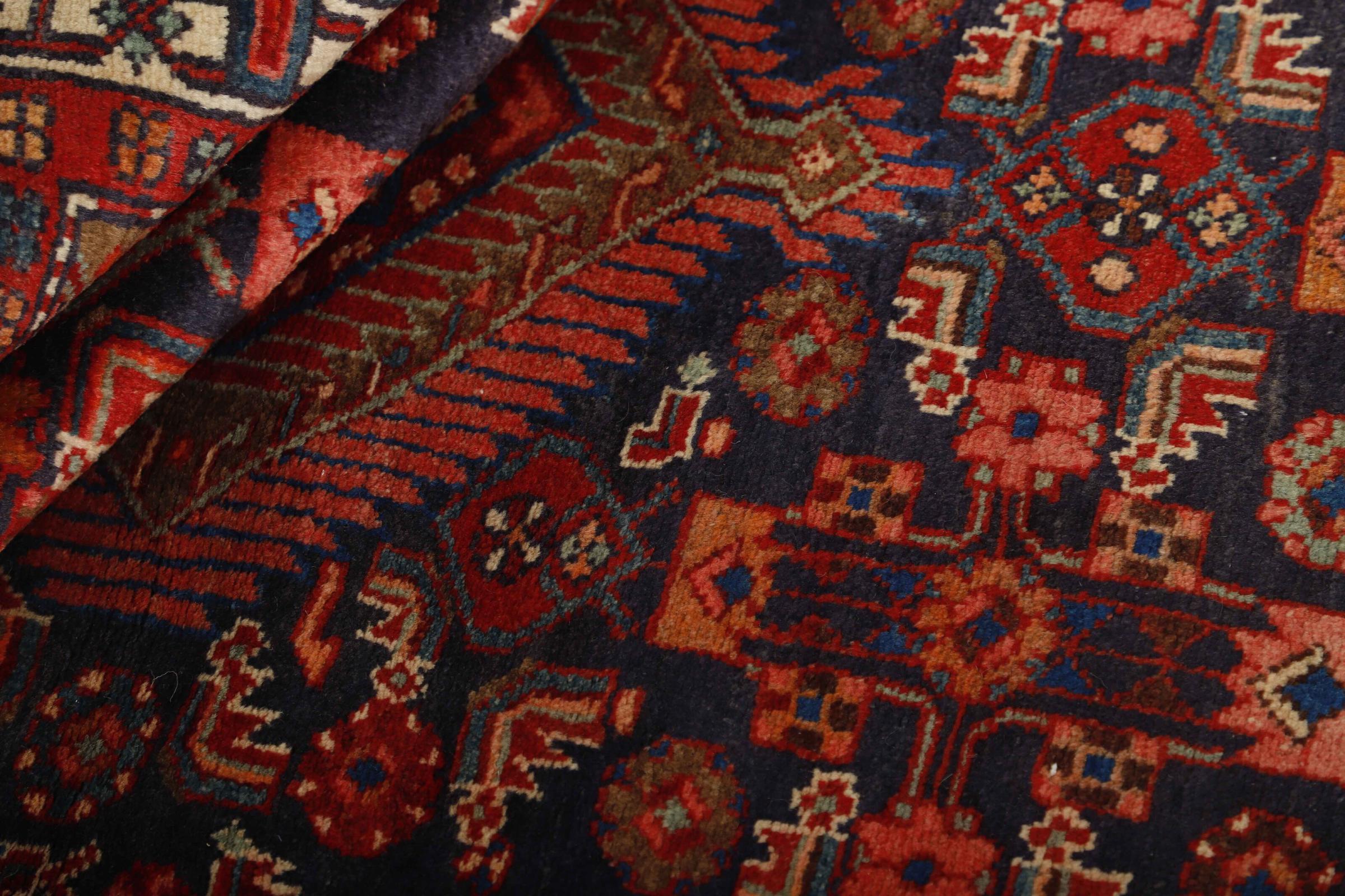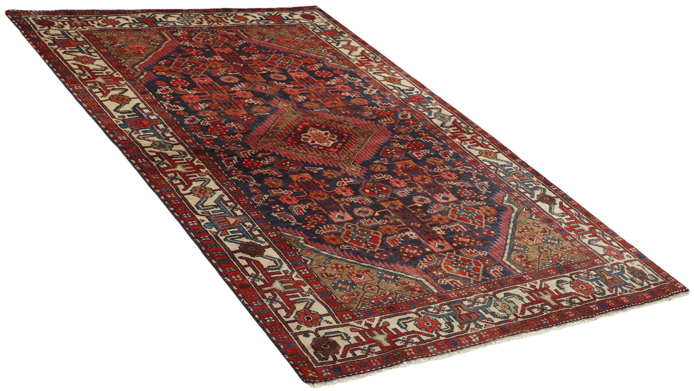 This Persian rug from Hamadan possesses typical geometric patterns with beautiful shades of red, brown and blue. It has been knotted by hand in the small town Hamadan in Persia. This rug is extremely robust and durable.