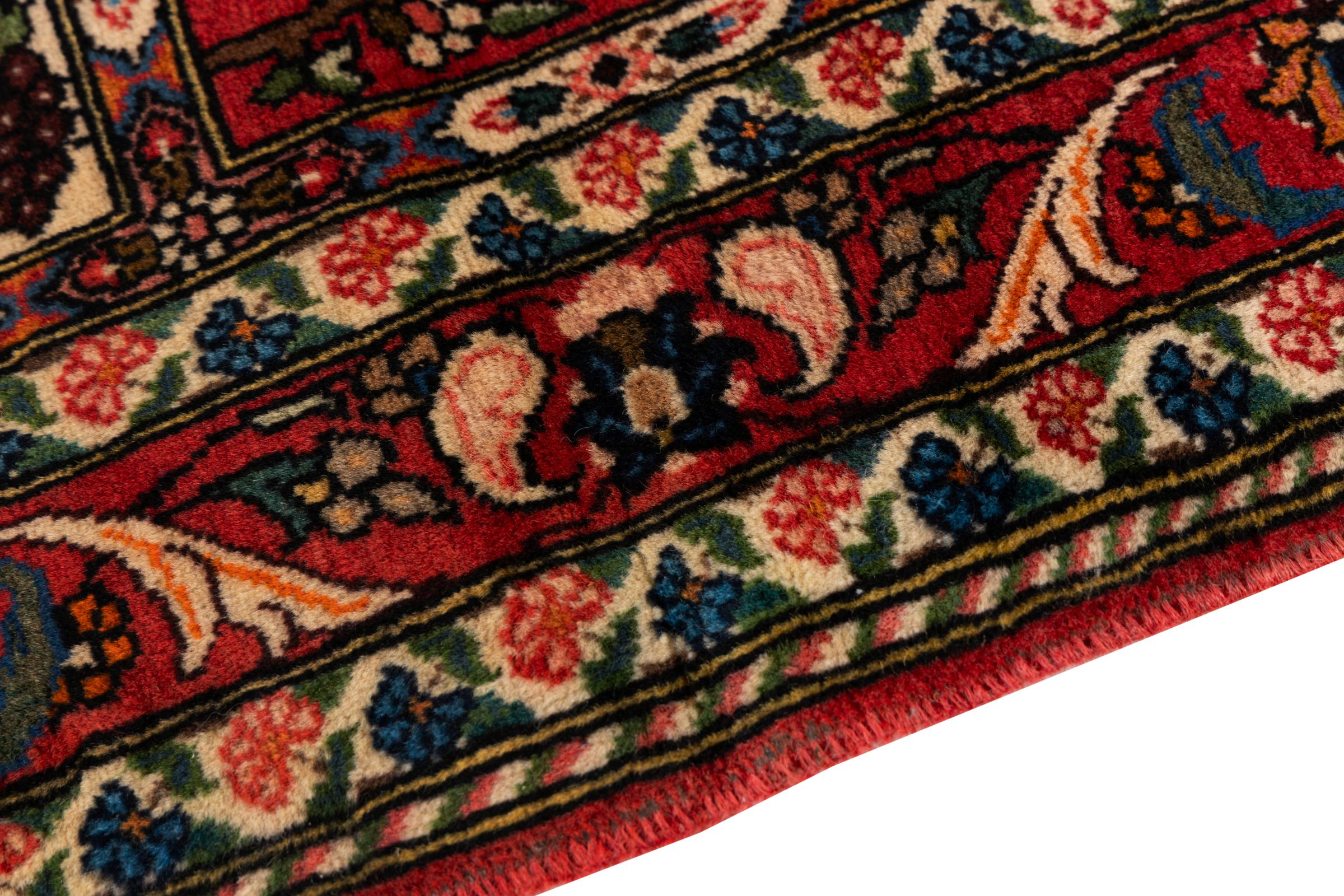 This carpet belongs to the village and nomadic carpets from Iran, the former Persia. This kind of carpets is hand knotted in smaller towns and villages in ancient tradition. Even nomads still knot Persian carpets in the open air. The carpets are knotted without a draft and entirely from memory. They are characterized by classical ornaments arranged in linear and geometric patterns. Thanks to their cultural and traditional origins, these rugs possess a unique character that embodies ancient Persia.
