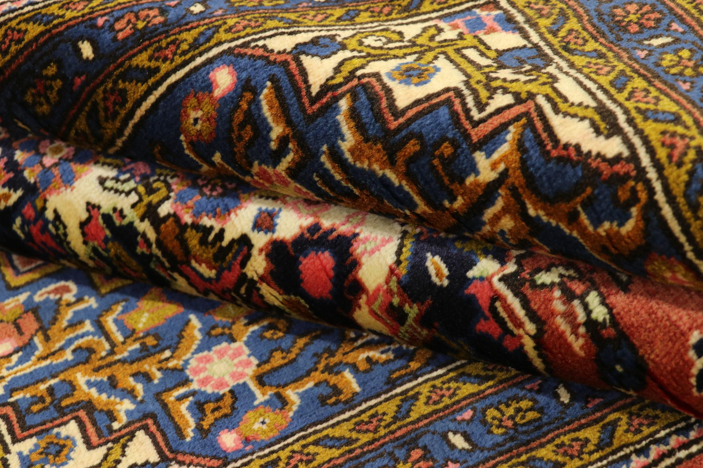 This carpet belongs to the village and nomadic carpets from Iran, the former Persia. This kind of carpets is hand knotted in smaller towns and villages in ancient tradition. Even nomads still knot Persian carpets in the open air. The carpets are knotted without a draft and entirely from memory. They are characterized by classical ornaments arranged in linear and geometric patterns. Thanks to their cultural and traditional origins, these rugs possess a unique character that embodies ancient Persia.