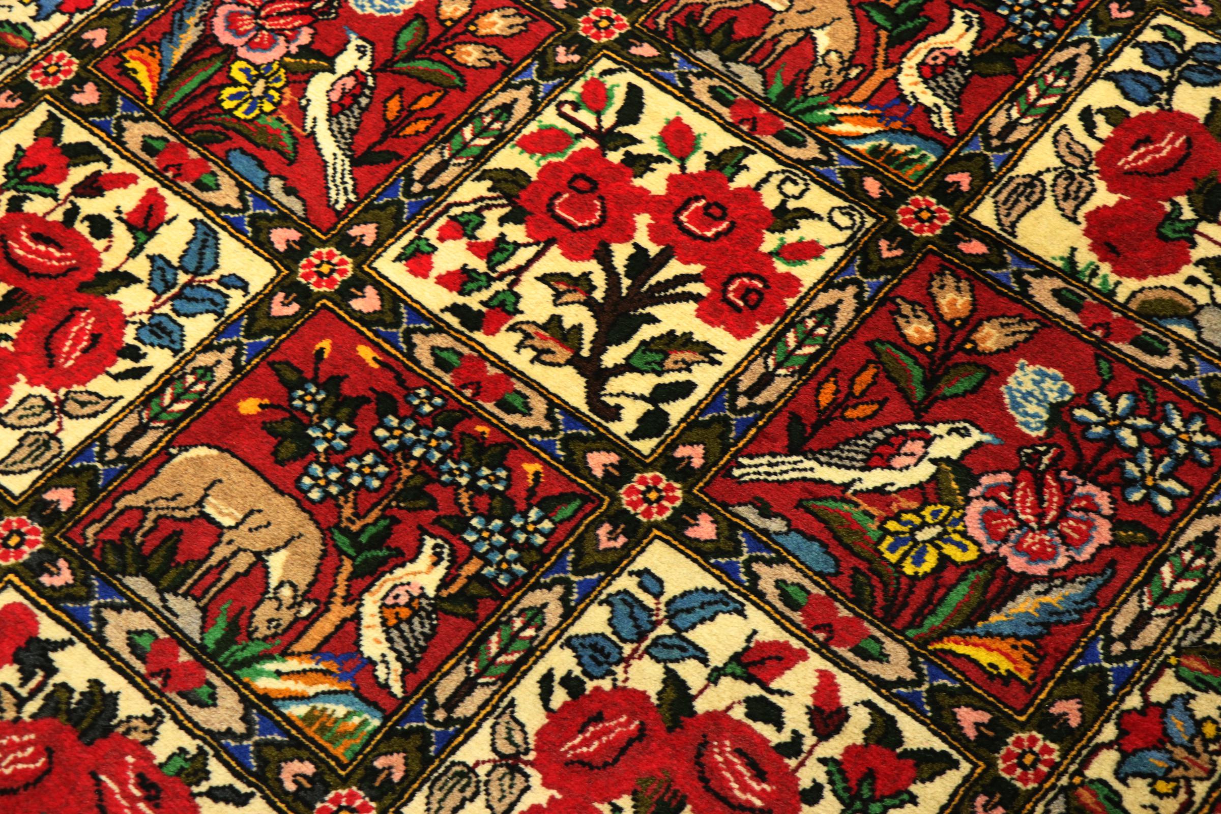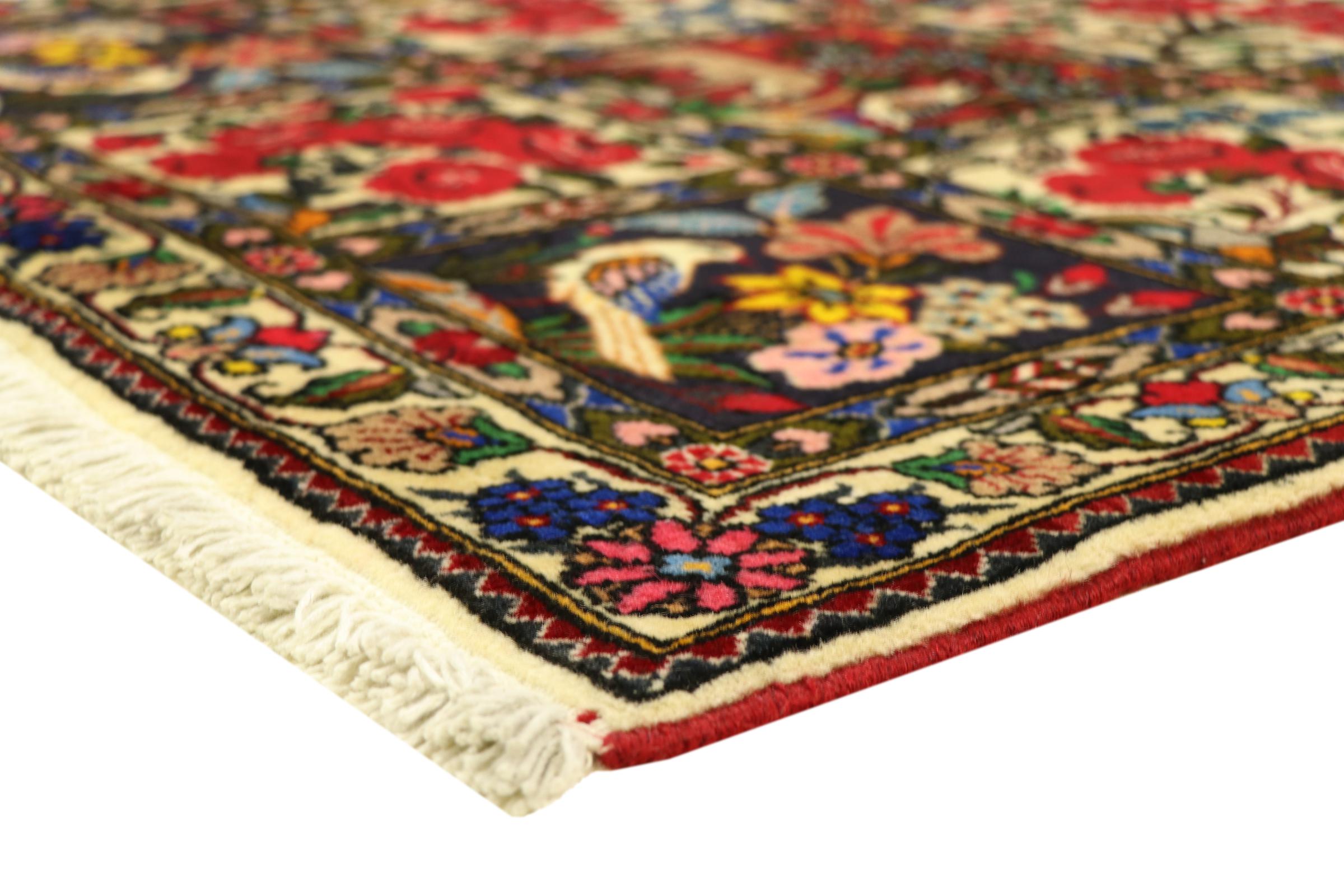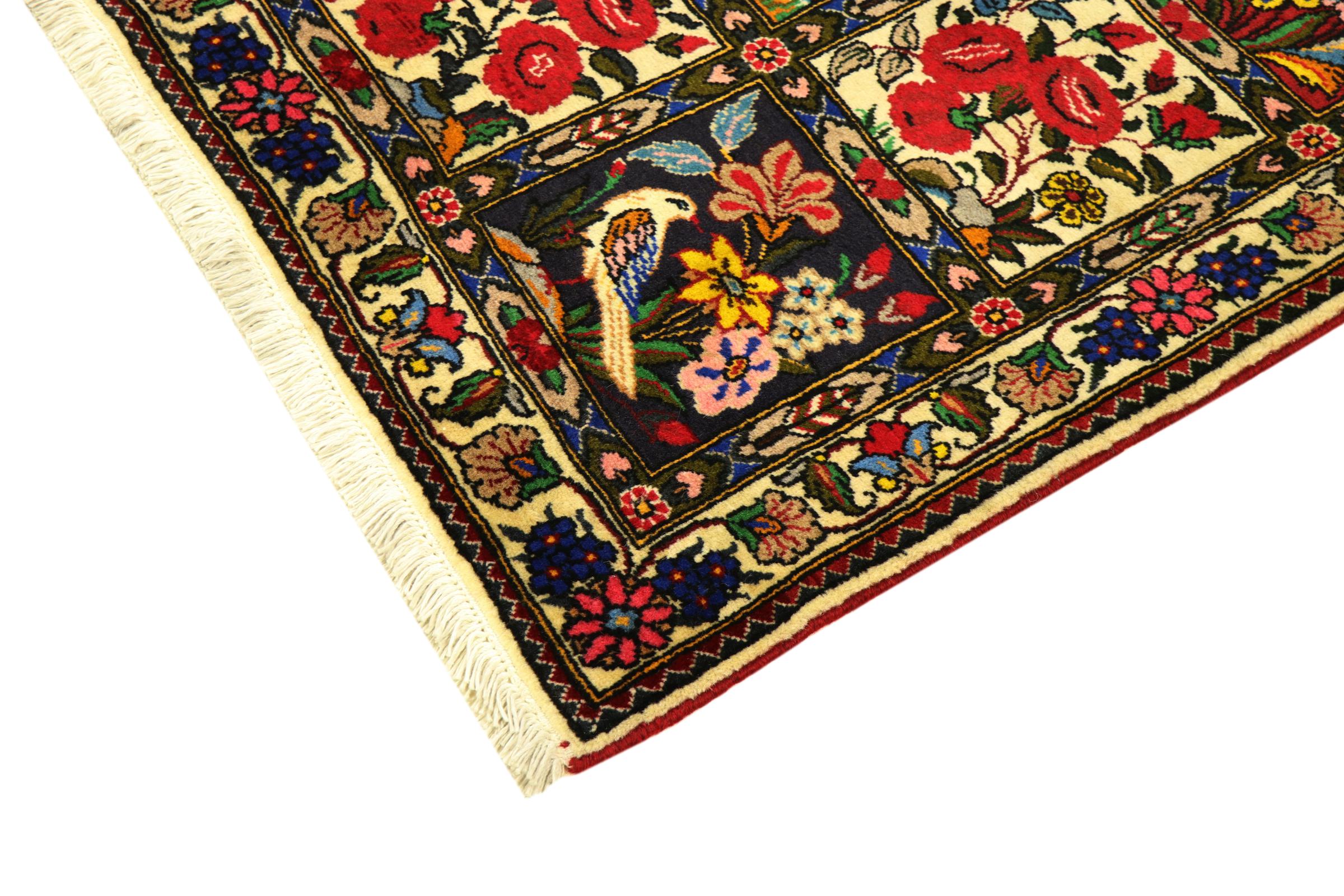 Rug ID: 314302007913094 Size: 5'2"x3'5" ft Thickness: ap. 0.47 in Knot density: 82 - 103 / square inch Manufacturing: Knotted by hand Pile: Handspun wool Warp: Cotton Origin: Persia / Iran Age: New Weight: ap. 15 lb Also know as Baktjar In stock: Unique - Only 1 in stock