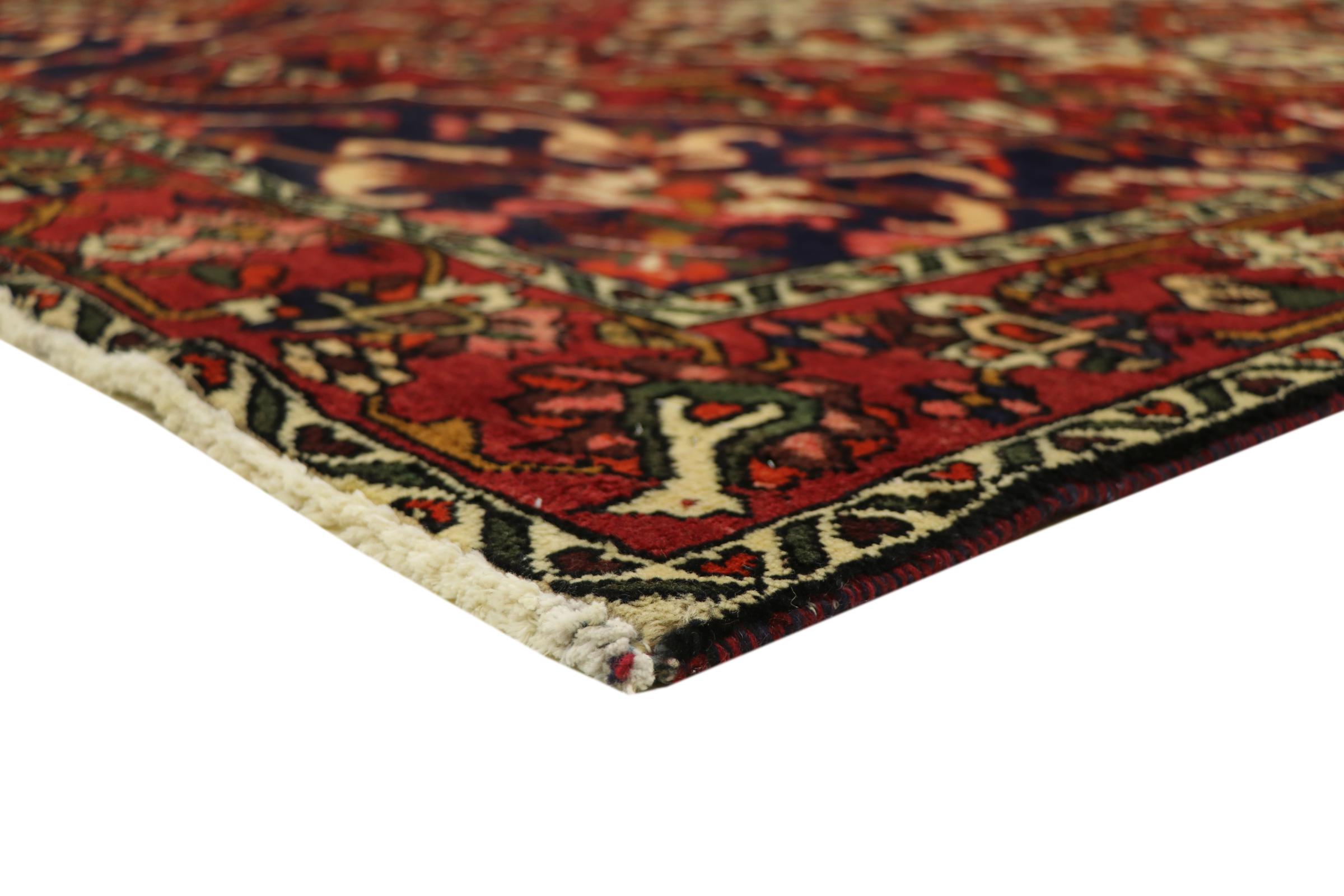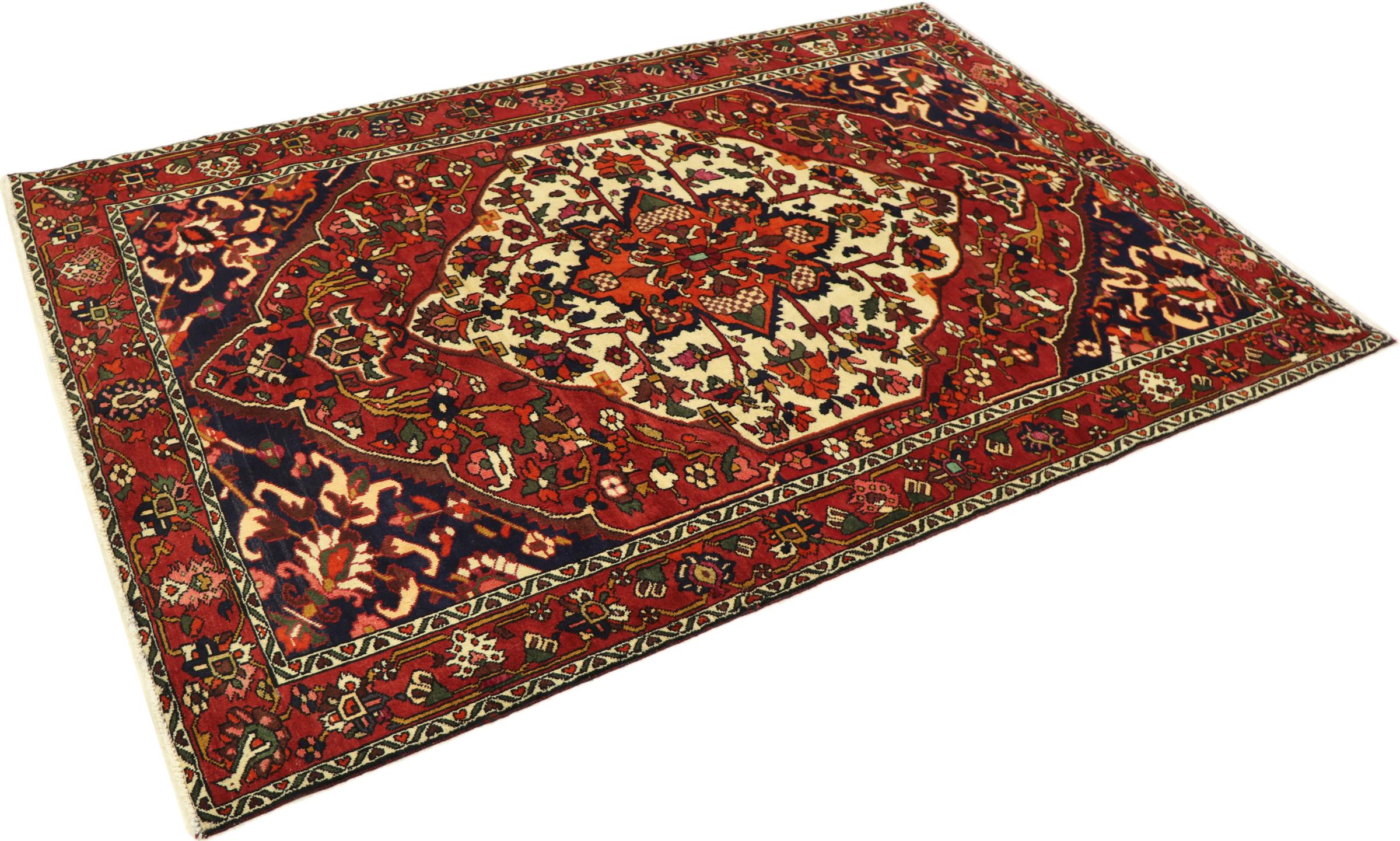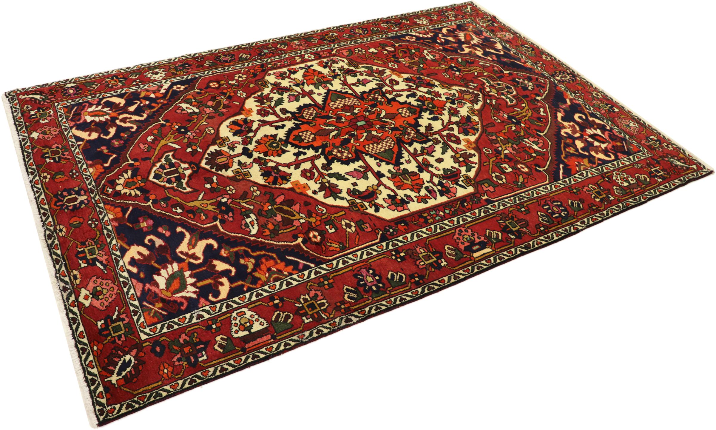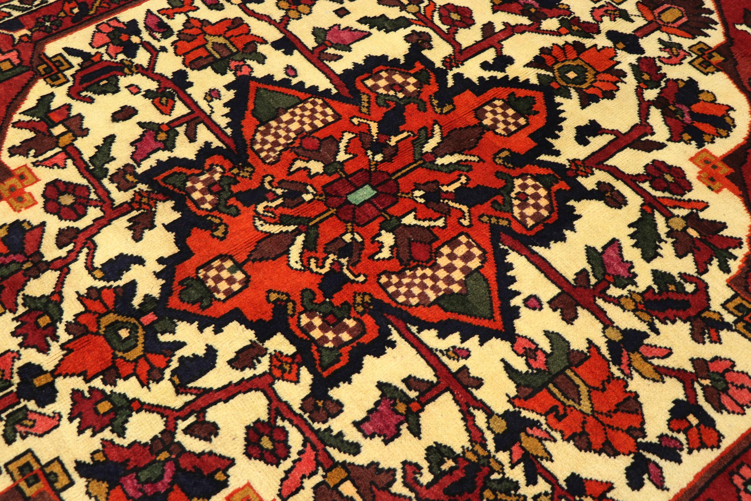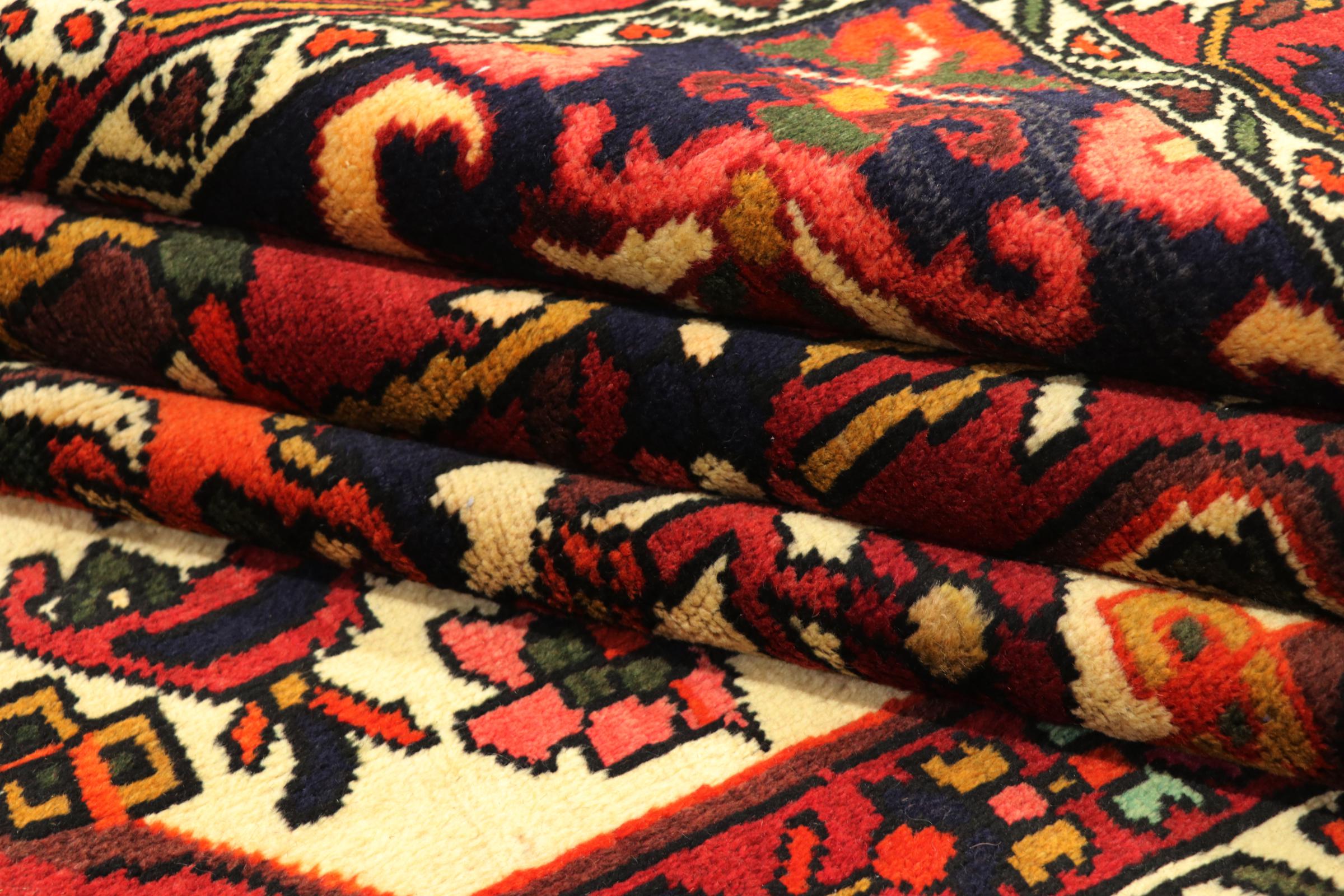 Bakthiari nomads crafted this rug in Persia. They use natural dyes and their own sheep wool for knotting beautifully unique rugs. By nature this kind of rugs is highly robust because nomads intended their rugs for a frequent everyday use.