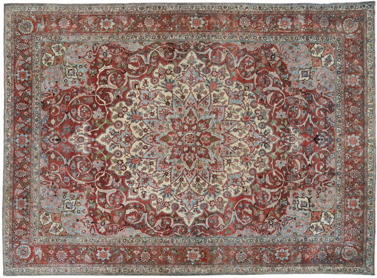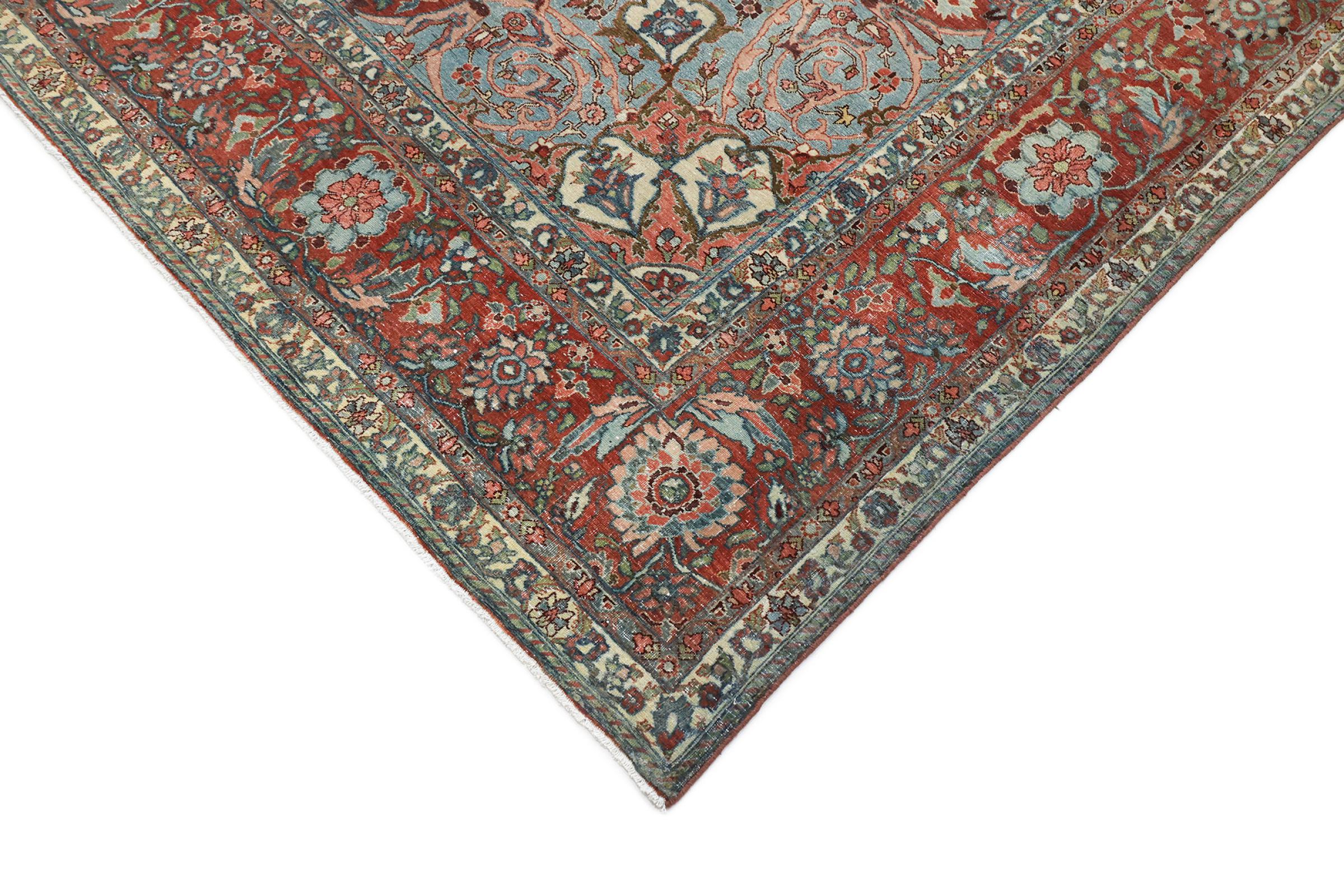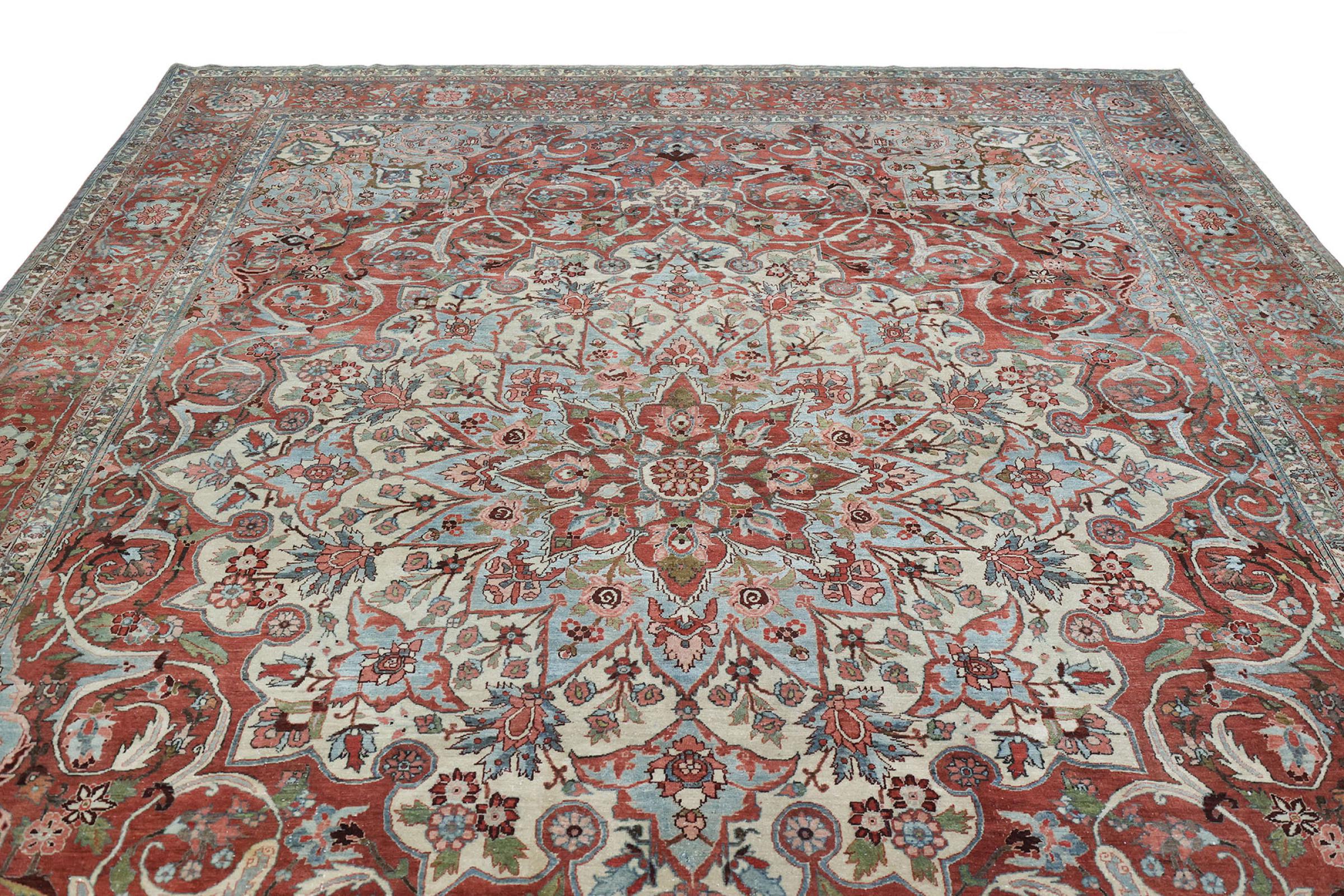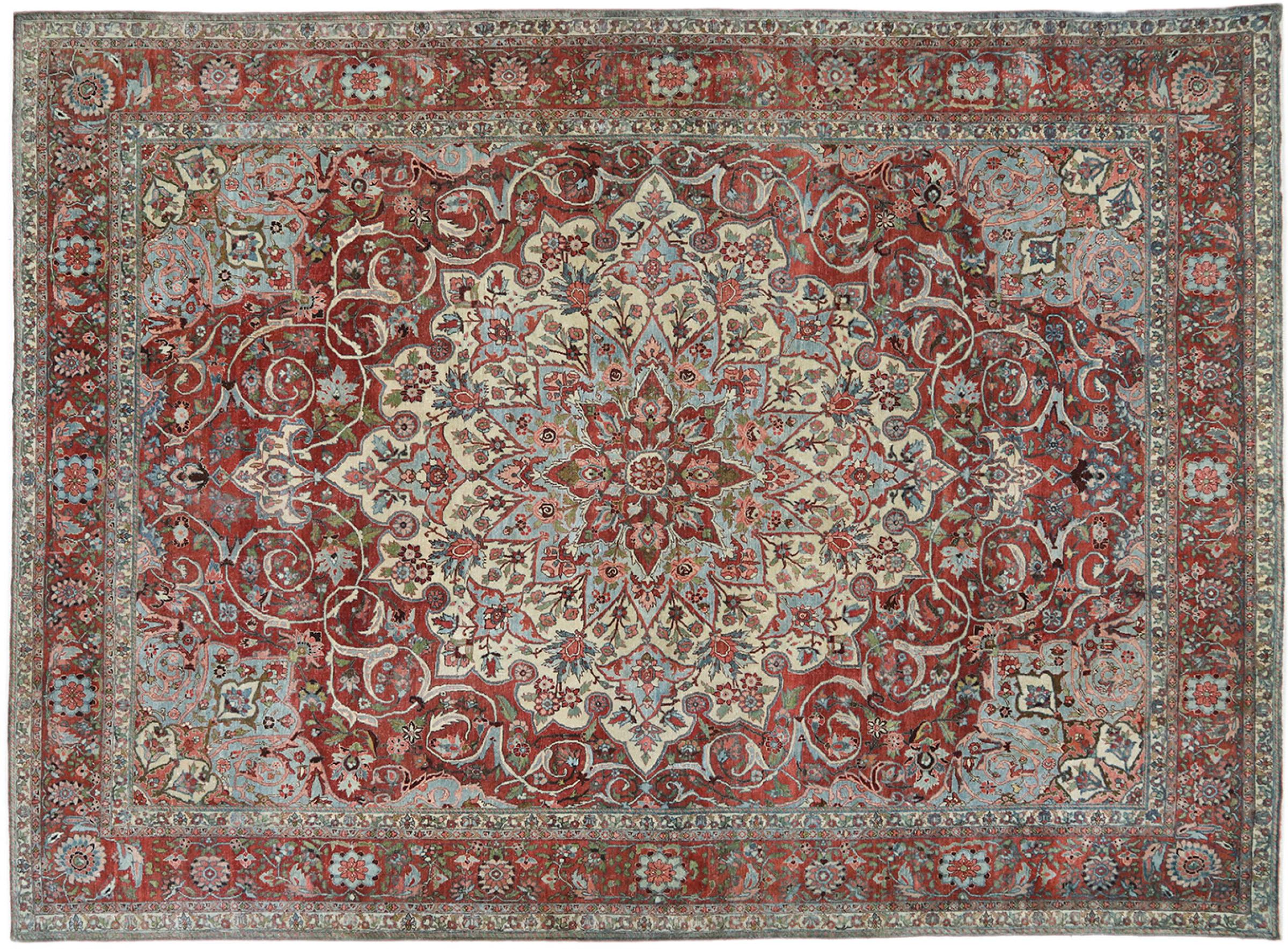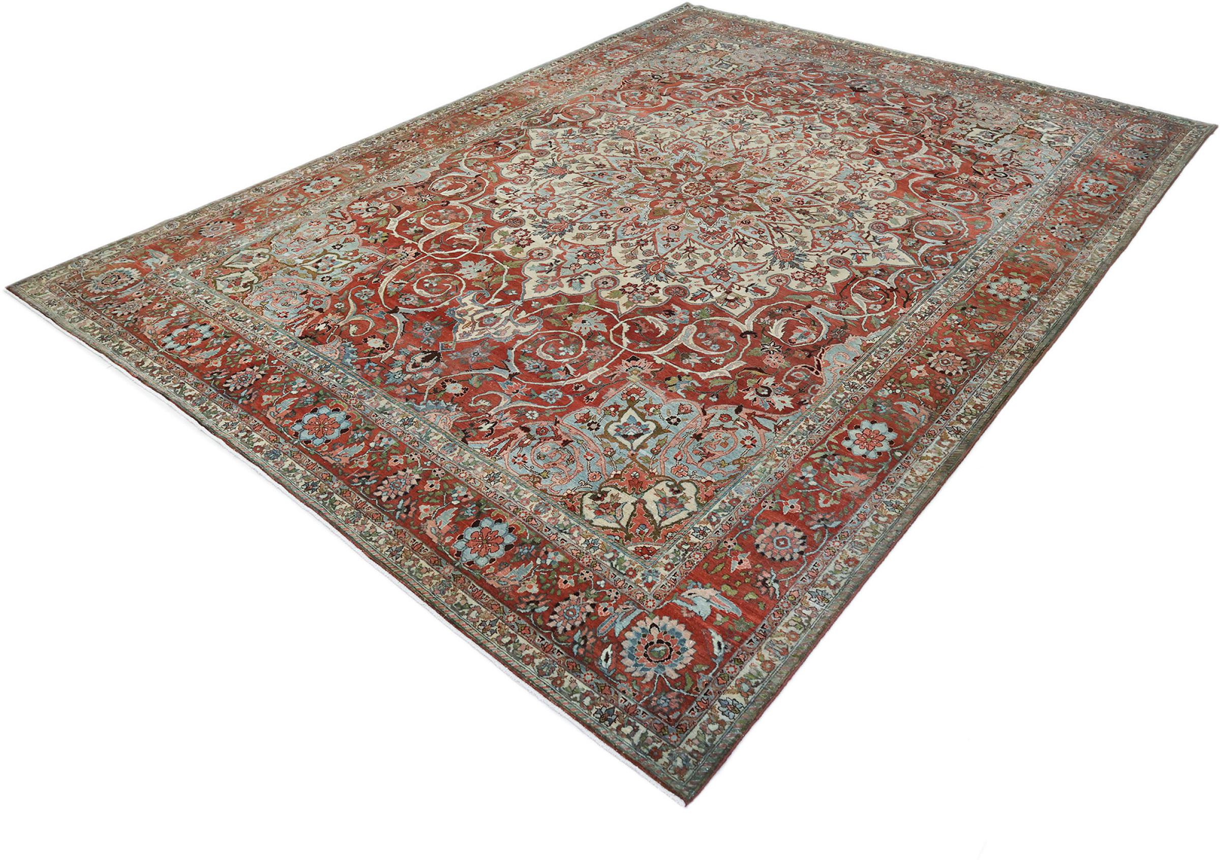 Rug ID: 31635200791270 Size: 14'3"x10'4" ft Thickness: ap. 0.47 in Knot density: 103 - 129 / square inch Manufacturing: Knotted by hand Pile: Handspun wool Warp: Cotton Condition / Conservation: Perfect Origin: Persia / Iran Age: Antique, over 80 years Weight: ap. 121 lb Also know as Baktjar In stock: Unique - Only 1 in stock
