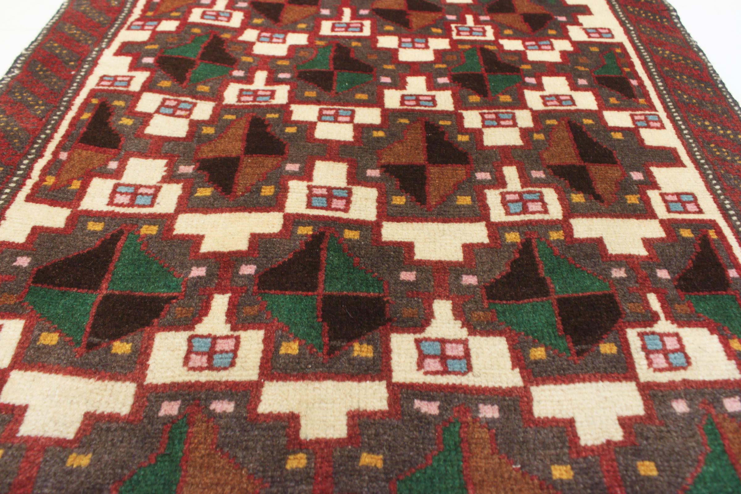 This Persian Baluch (also called Belutch) rug has been knotted by hand near the border of Afghanistan and Iran. It has been made according to traditional Persian craftsmanship with asymmetric knots. Vivid natural colors make this rug to a great highlight at home.