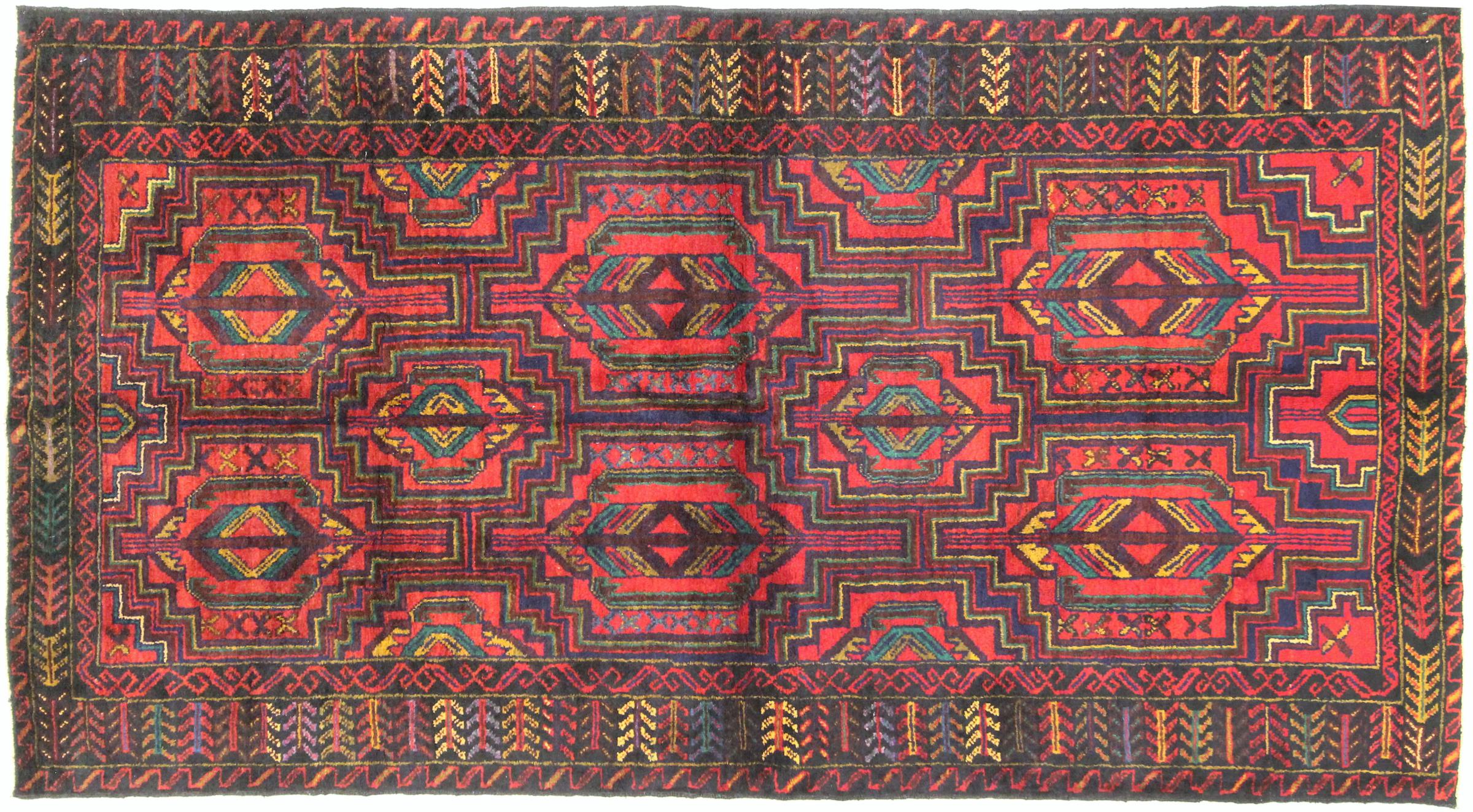 This Persian Baluch (also called Belutch) rug has been knotted by hand near the border of Afghanistan and Iran. It has been made according to traditional Persian craftsmanship with asymmetric knots. Vivid natural colors make this rug to a great highlight at home.