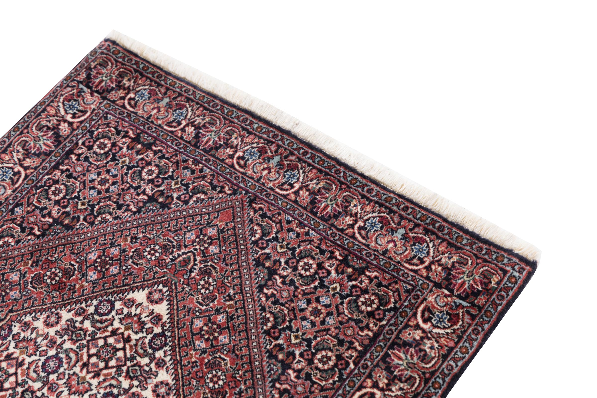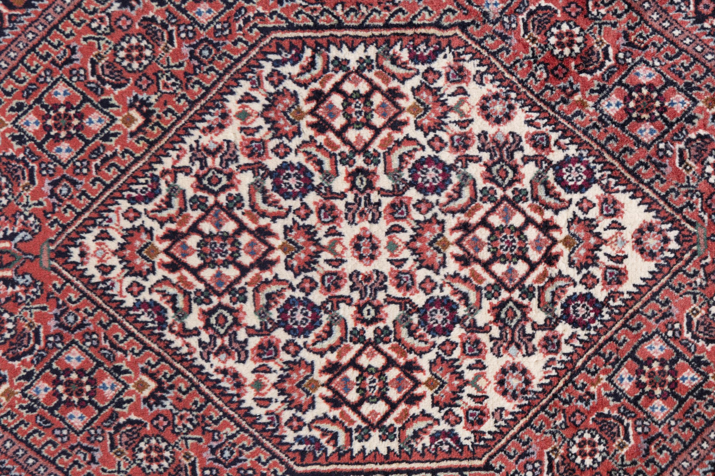 This Bidjar has been crafted in a small Kurdish town in Western Persia. This type of rugs represents a high quality and contemporary patterns. With geometric design elements it is trending again for modern interior concepts. Moreover, the rug's firm pile is extremely robust and dirt resilient. This Persian rug made by a Kurdish minority is an extraordinary piece for almost every room in your home.