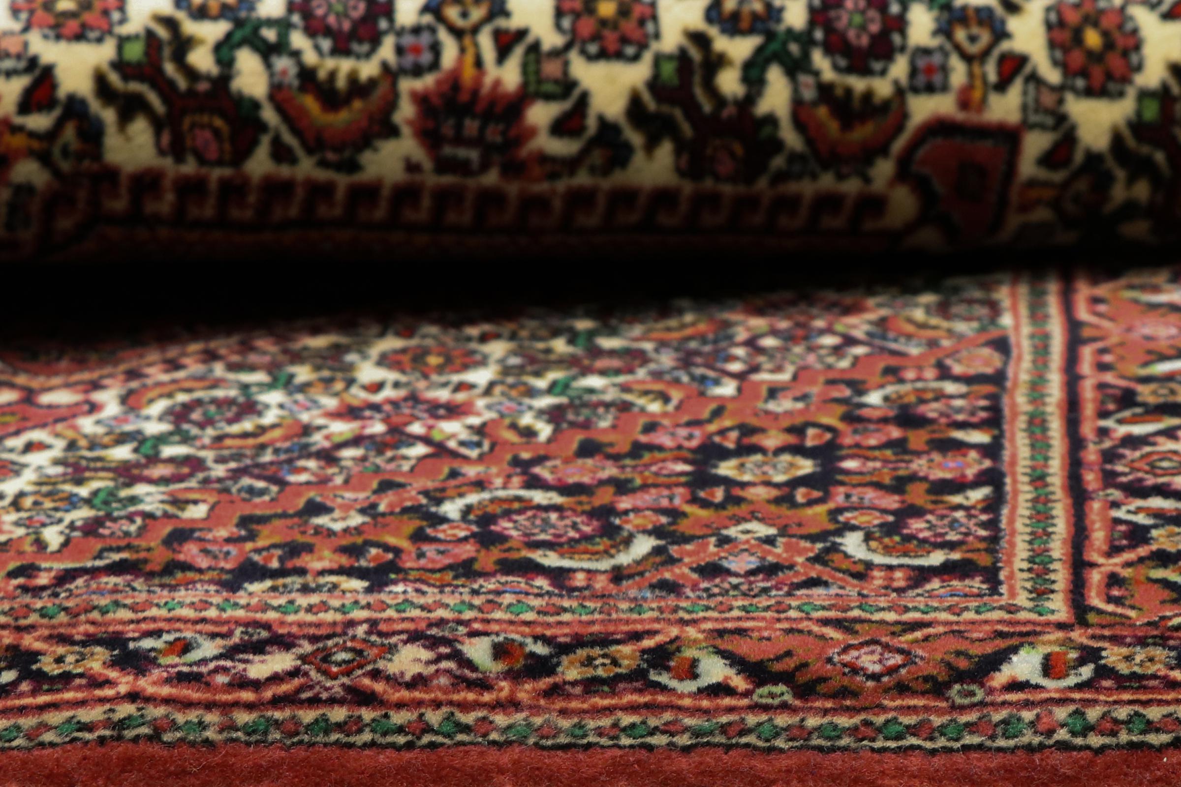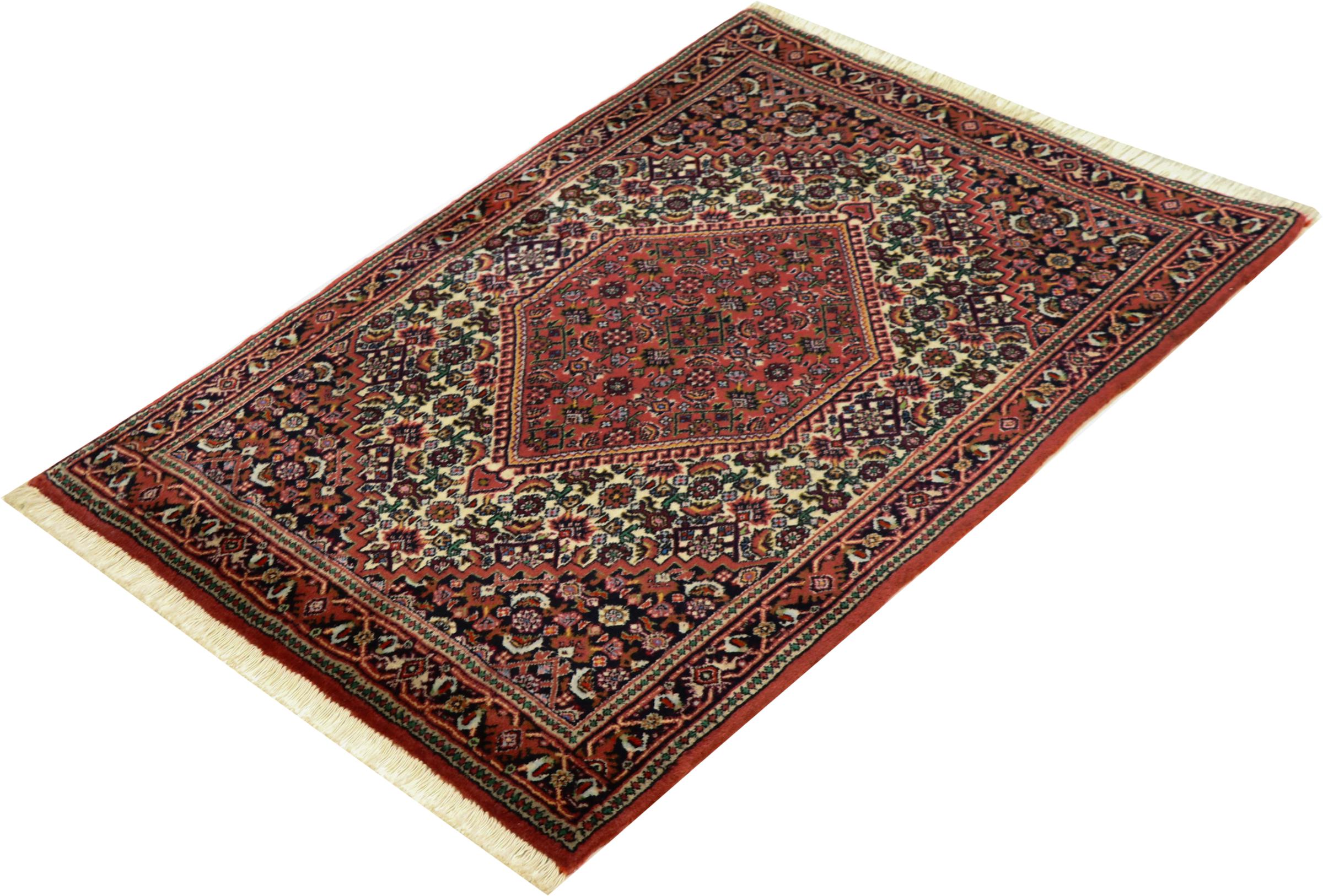 Bijar rugs are made by the Kurdish minority in Iran. The city of Bijar is known for its robust and high-quality Persian rugs. The pile of these carpets is tightly pressed together with a comb when knotting. In this way, dirt particles can hardly penetrate. At the same time, Bijar carpets are heavy and thick when compared to their Persian peers. Bijar rugs usually have a medallion in the middle and are decorated with the so-called Herati pattern. Bidjar carpets usually have a medallion in the middle and are designed with the famous Herati pattern.