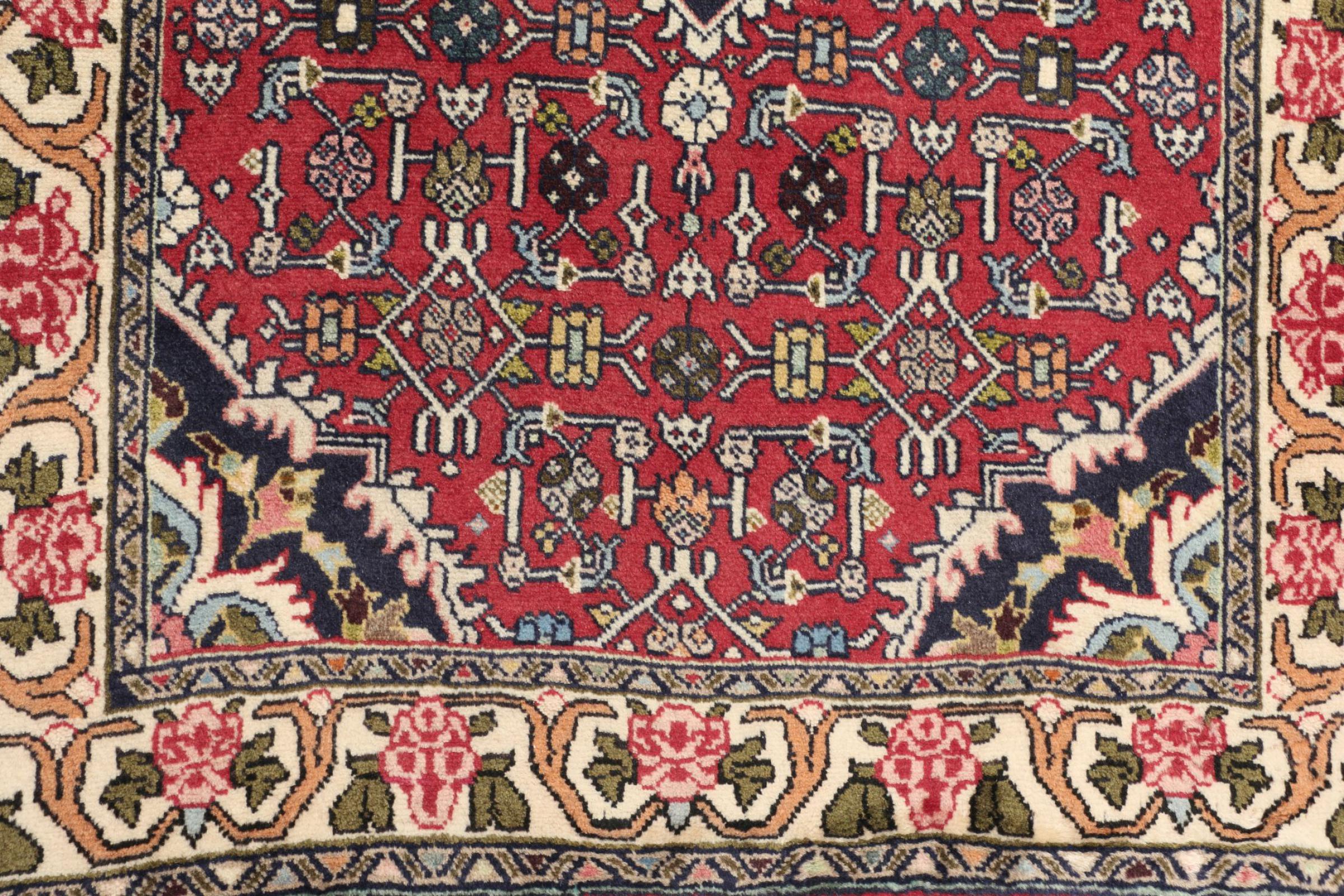 Bijar rugs are made by the Kurdish minority in Iran. The city of Bijar is known for its robust and high-quality Persian rugs. The pile of these carpets is tightly pressed together with a comb when knotting. In this way, dirt particles can hardly penetrate. At the same time, Bijar carpets are heavy and thick when compared to their Persian peers. Bijar rugs usually have a medallion in the middle and are decorated with the so-called Herati pattern. Bidjar carpets usually have a medallion in the middle and are designed with the famous Herati pattern.