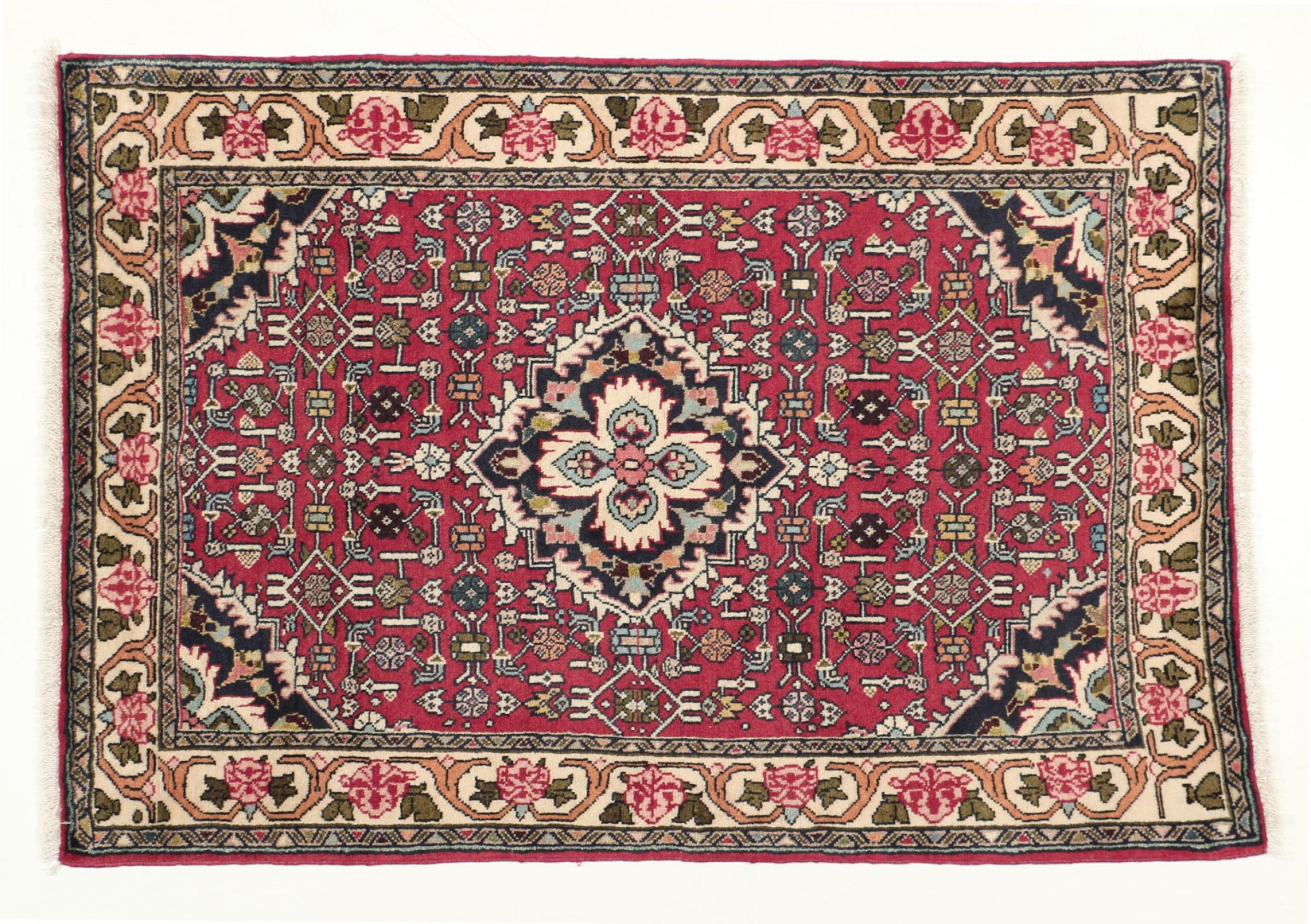 Rug ID: 309413006106285 Size: 3'9"x2'8" ft Thickness: ap. 0.59 in Knot density: 129 - 161 / square inch Manufacturing: Knotted by hand Pile: Handspun wool Warp: Cotton Origin: Persia / Iran Age: New Weight: ap. 11 lb In stock: Unique - Only 1 in stock