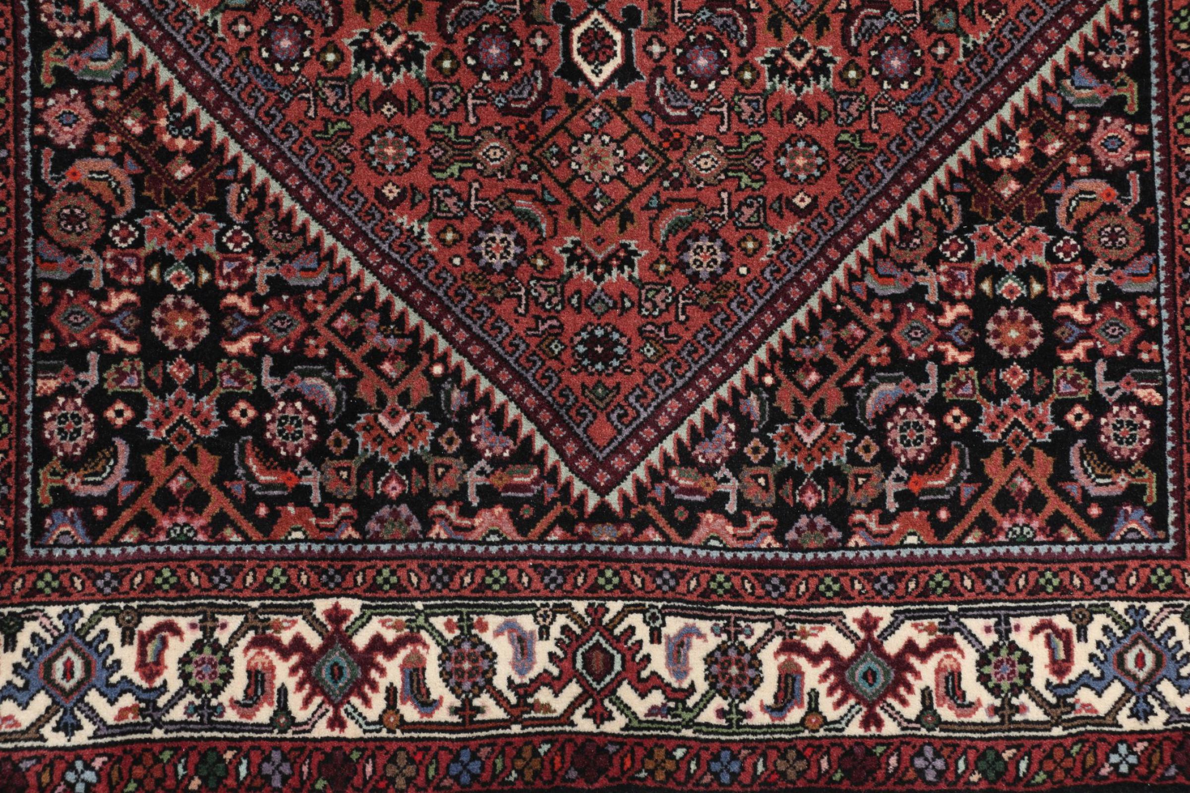This Bidjar has been crafted in a small Kurdish town in Western Persia. This type of rugs represents a high quality and contemporary patterns. With geometric design elements it is trending again for modern interior concepts. Moreover, the rug's firm pile is extremely robust and dirt resilient. This Persian rug made by a Kurdish minority is an extraordinary piece for almost every room in your home.