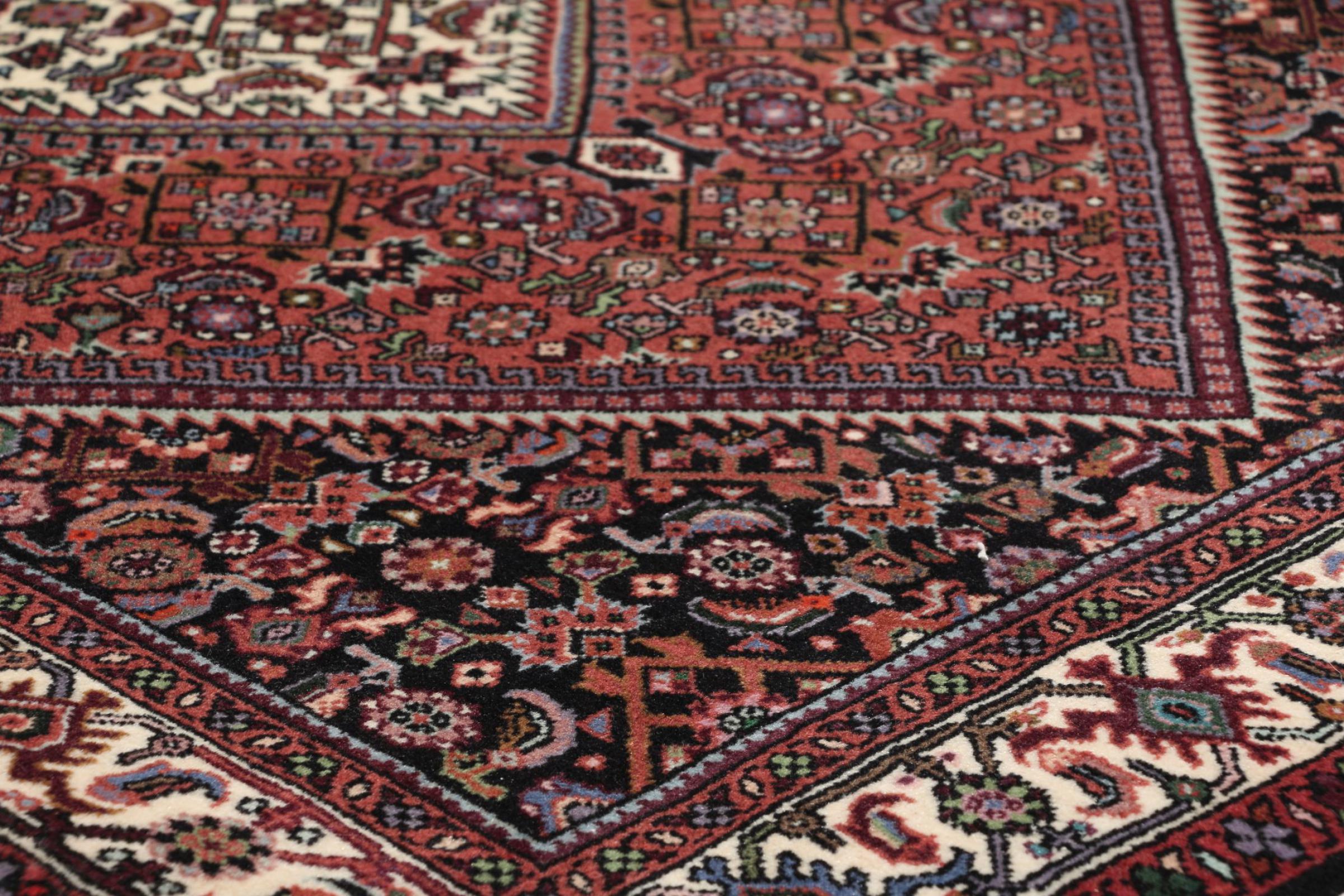 Bijar rugs are made by the Kurdish minority in Iran. The city of Bijar is known for its robust and high-quality Persian rugs. The pile of these carpets is tightly pressed together with a comb when knotting. In this way, dirt particles can hardly penetrate. At the same time, Bijar carpets are heavy and thick when compared to their Persian peers. Bijar rugs usually have a medallion in the middle and are decorated with the so-called Herati pattern. Bidjar carpets usually have a medallion in the middle and are designed with the famous Herati pattern.