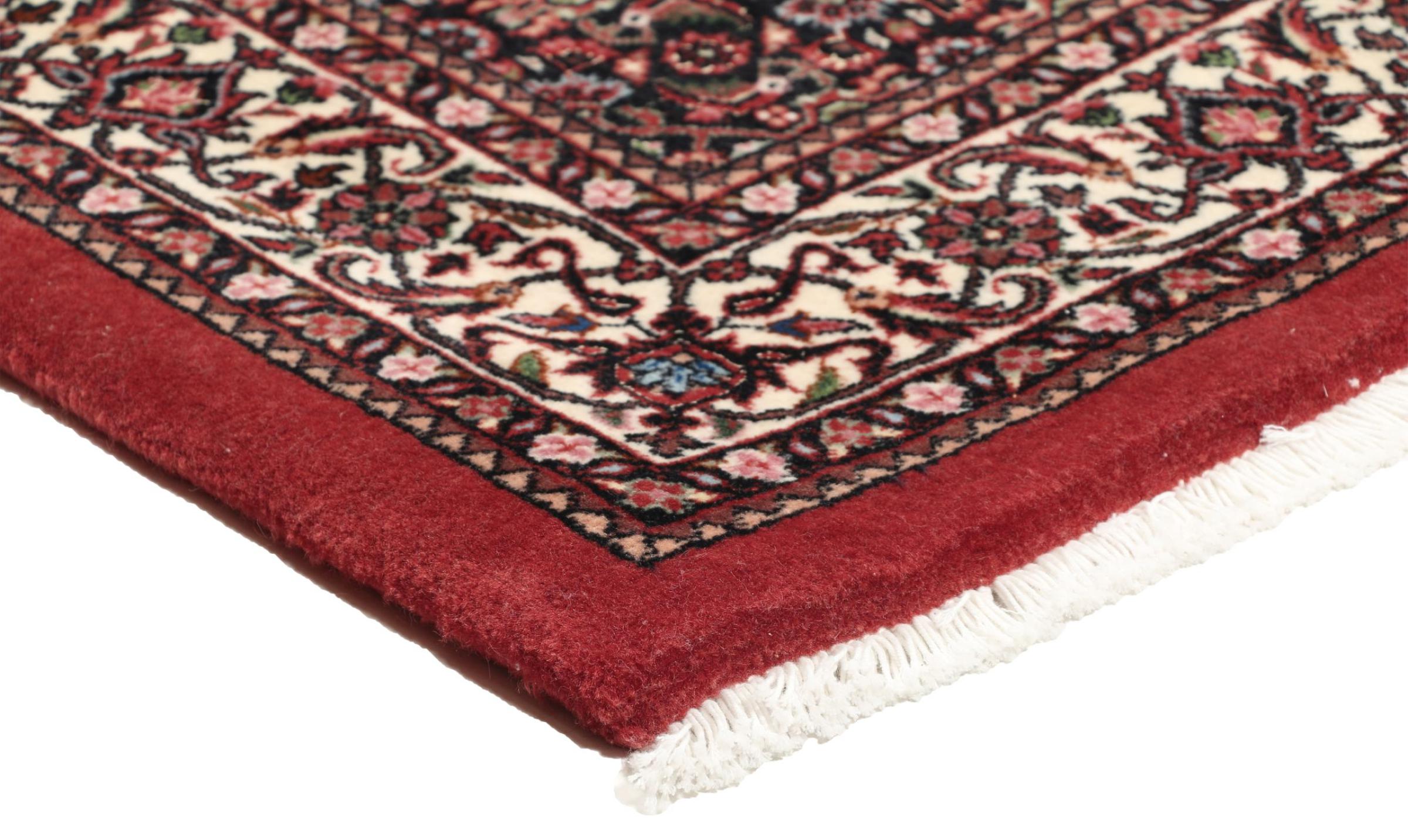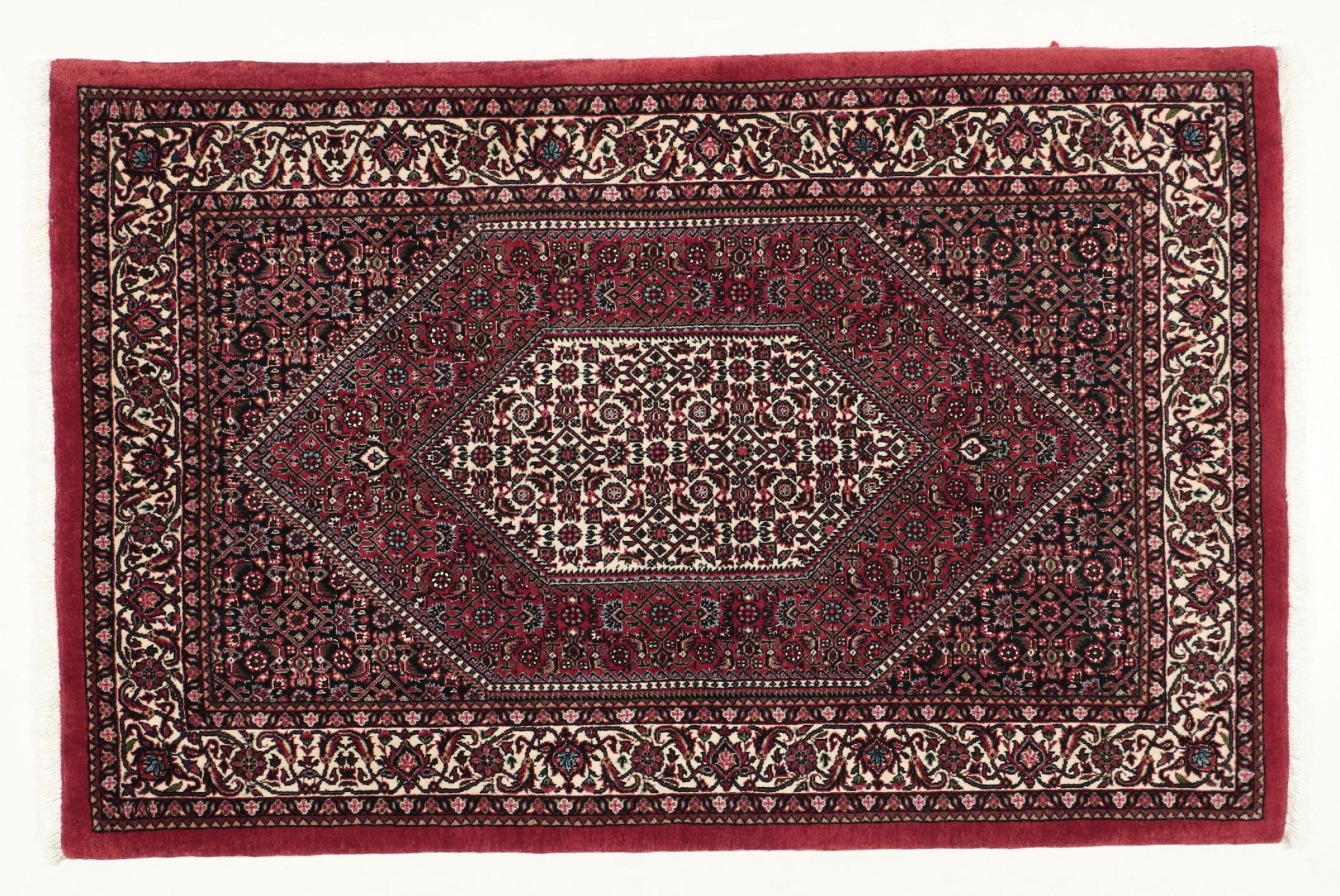 Bijar rugs are made by the Kurdish minority in Iran. The city of Bijar is known for its robust and high-quality Persian rugs. The pile of these carpets is tightly pressed together with a comb when knotting. In this way, dirt particles can hardly penetrate. At the same time, Bijar carpets are heavy and thick when compared to their Persian peers. Bijar rugs usually have a medallion in the middle and are decorated with the so-called Herati pattern. Bidjar carpets usually have a medallion in the middle and are designed with the famous Herati pattern.