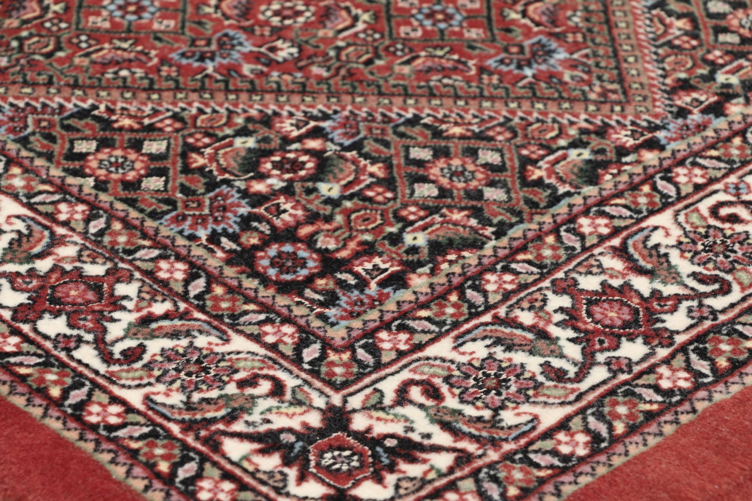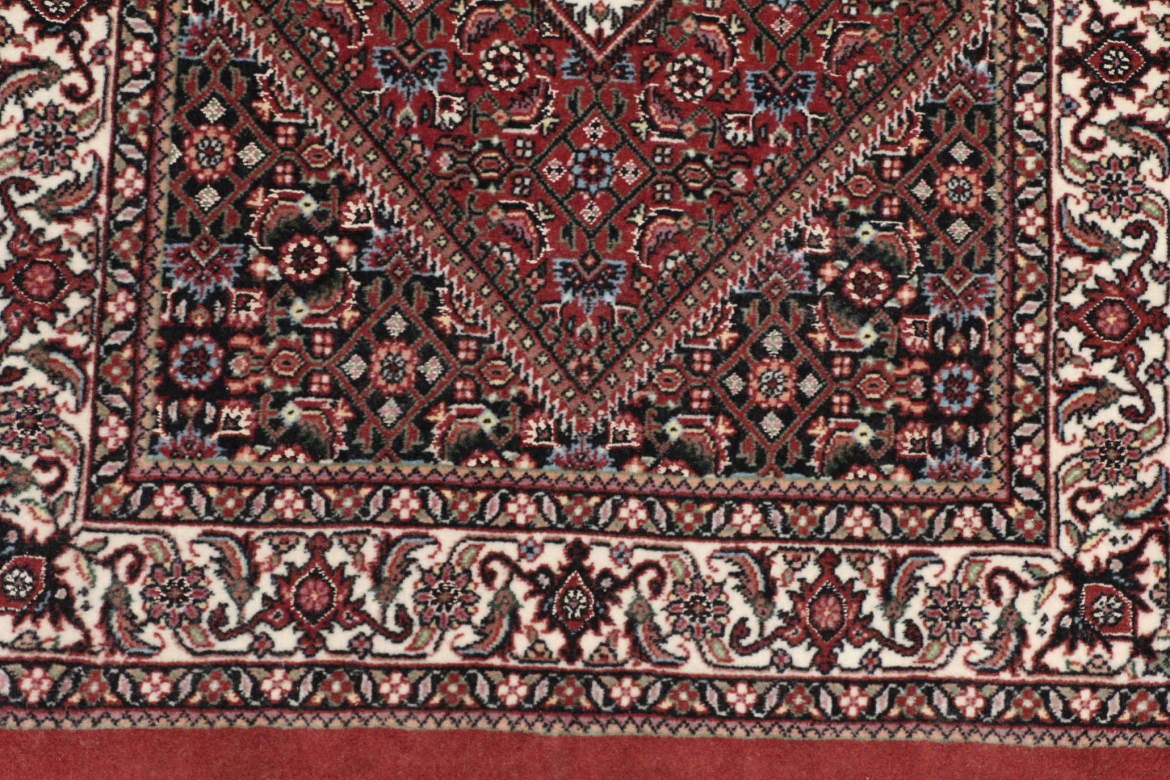 Bijar rugs are made by the Kurdish minority in Iran. The city of Bijar is known for its robust and high-quality Persian rugs. The pile of these carpets is tightly pressed together with a comb when knotting. In this way, dirt particles can hardly penetrate. At the same time, Bijar carpets are heavy and thick when compared to their Persian peers. Bijar rugs usually have a medallion in the middle and are decorated with the so-called Herati pattern. Bidjar carpets usually have a medallion in the middle and are designed with the famous Herati pattern.