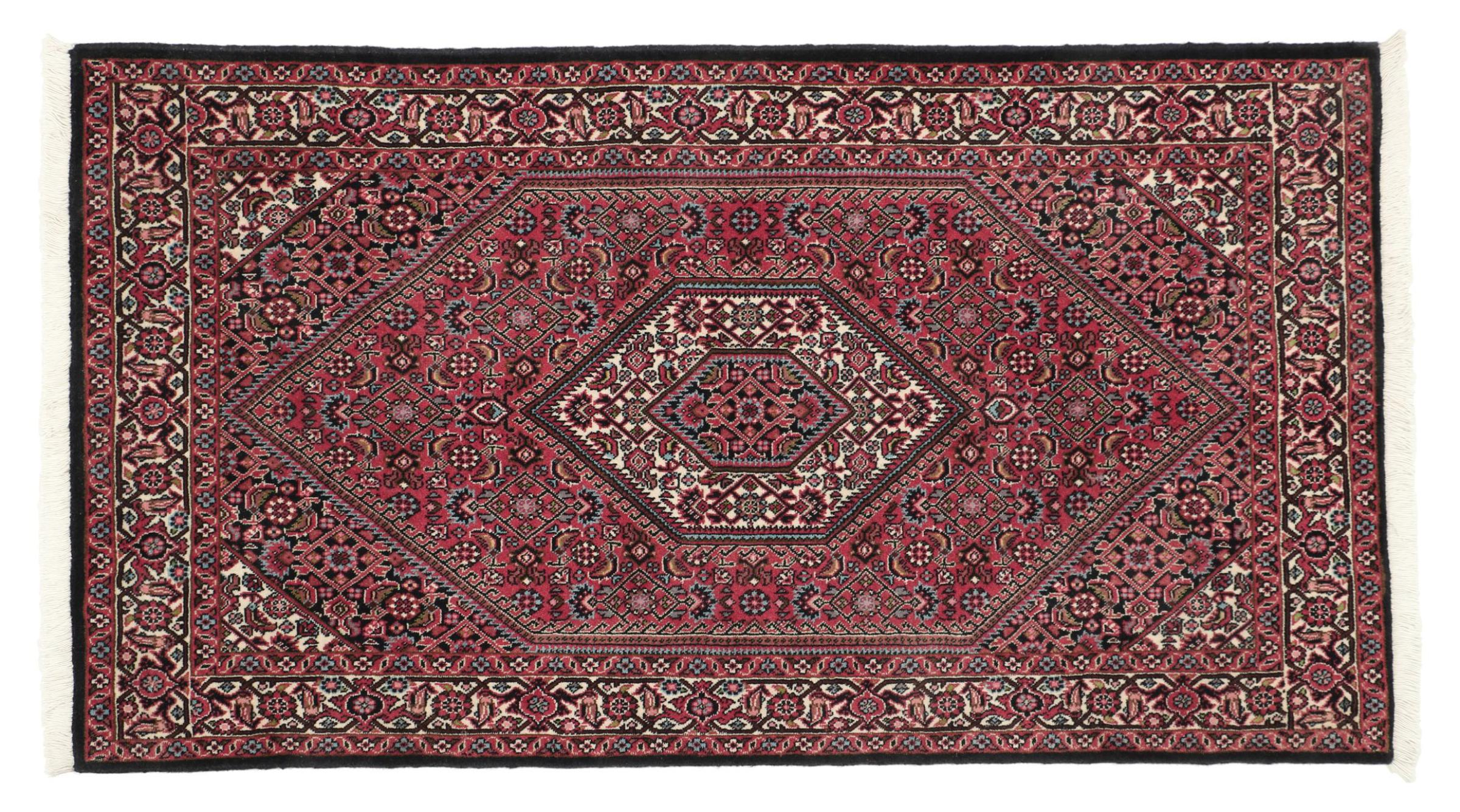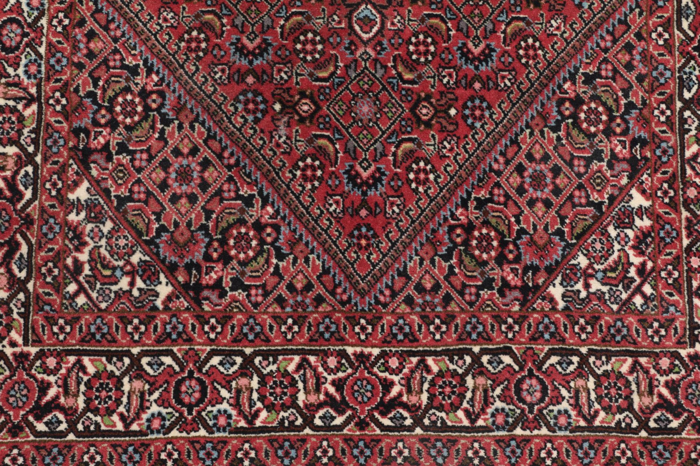 This Bidjar has been crafted in a small Kurdish town in Western Persia. This type of rugs represents a high quality and contemporary patterns. With geometric design elements it is trending again for modern interior concepts. Moreover, the rug's firm pile is extremely robust and dirt resilient. This Persian rug made by a Kurdish minority is an extraordinary piece for almost every room in your home.