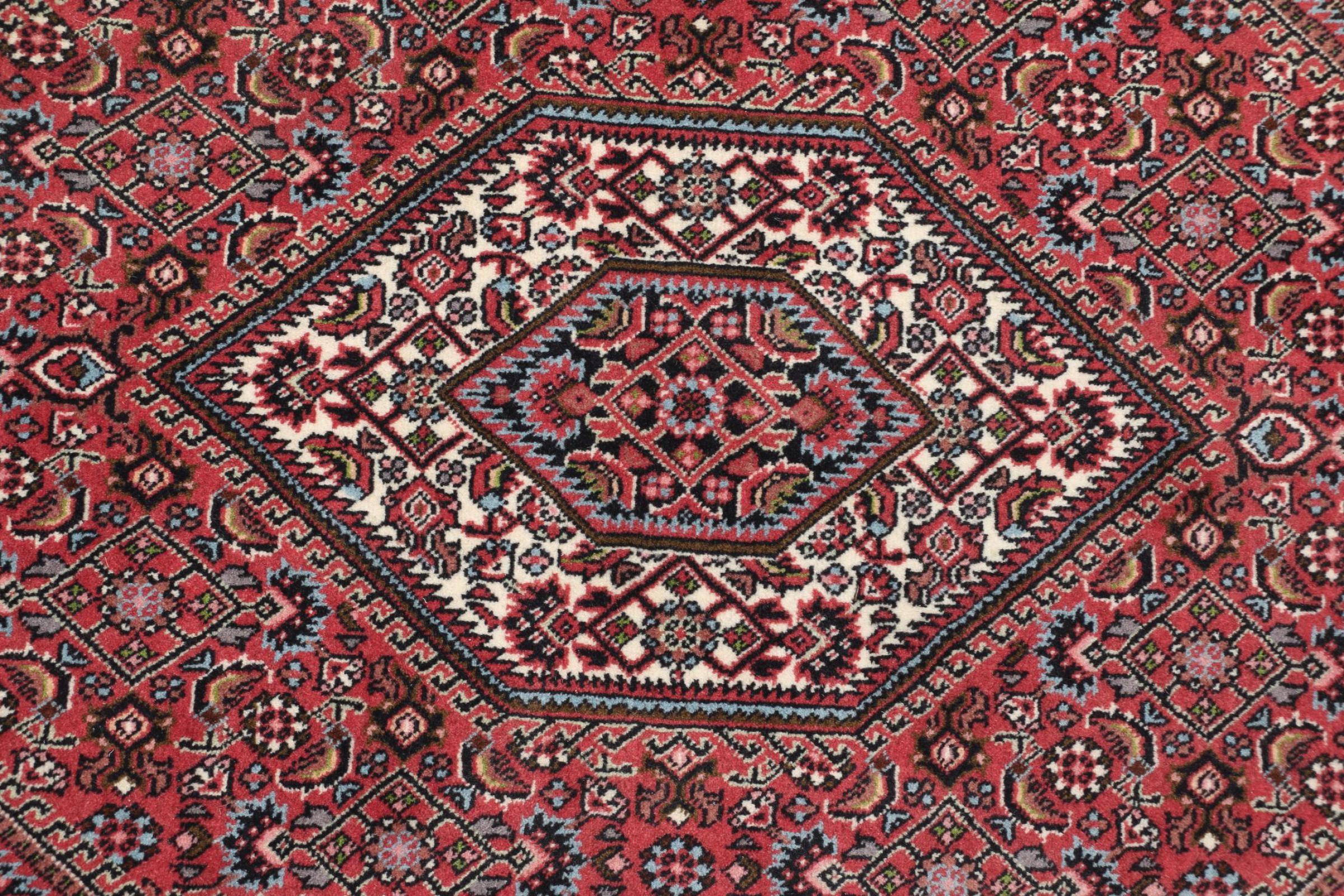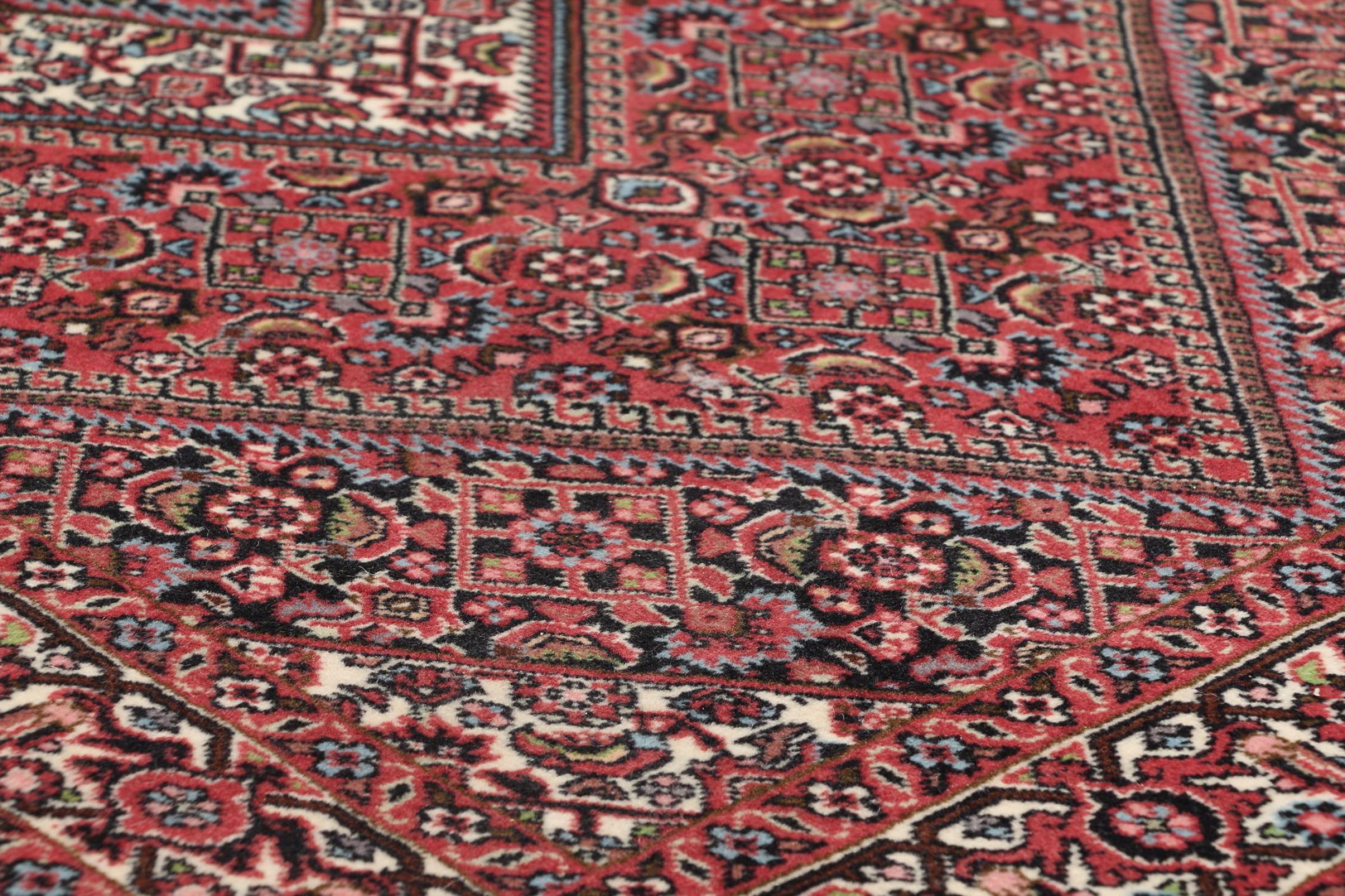 Bijar rugs are made by the Kurdish minority in Iran. The city of Bijar is known for its robust and high-quality Persian rugs. The pile of these carpets is tightly pressed together with a comb when knotting. In this way, dirt particles can hardly penetrate. At the same time, Bijar carpets are heavy and thick when compared to their Persian peers. Bijar rugs usually have a medallion in the middle and are decorated with the so-called Herati pattern. Bidjar carpets usually have a medallion in the middle and are designed with the famous Herati pattern.