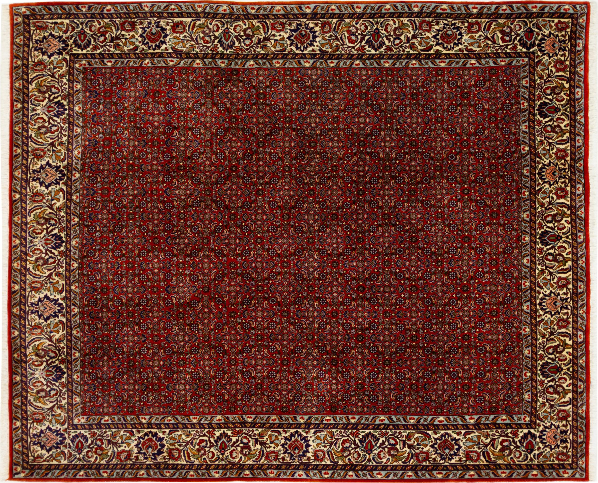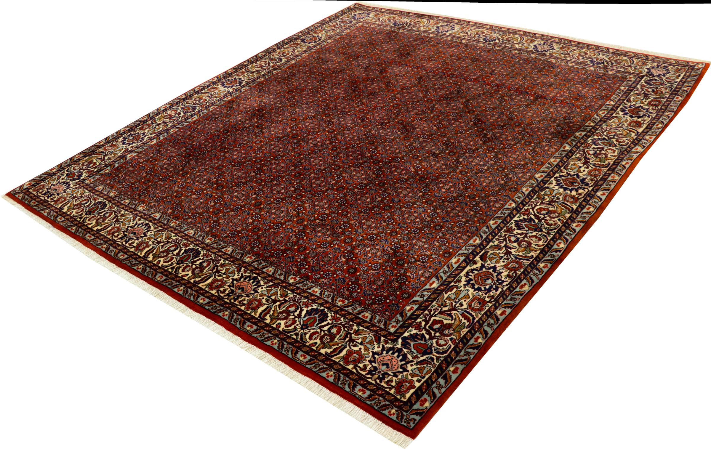 Bijar rugs are made by the Kurdish minority in Iran. The city of Bijar is known for its robust and high-quality Persian rugs. The pile of these carpets is tightly pressed together with a comb when knotting. In this way, dirt particles can hardly penetrate. At the same time, Bijar carpets are heavy and thick when compared to their Persian peers. Bijar rugs usually have a medallion in the middle and are decorated with the so-called Herati pattern. Bidjar carpets usually have a medallion in the middle and are designed with the famous Herati pattern.