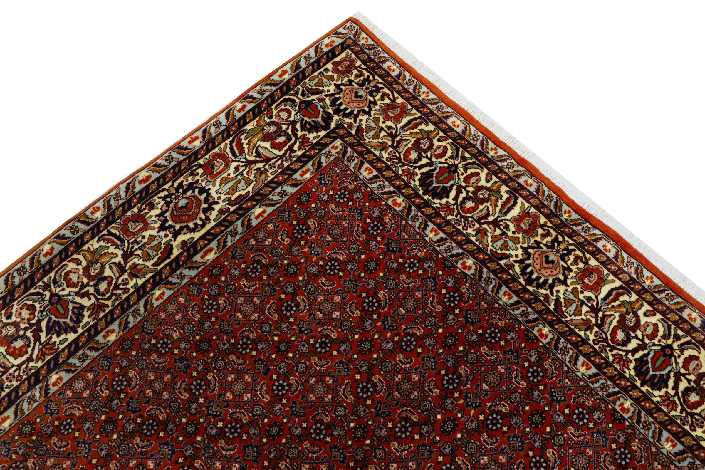This Bidjar has been crafted in a small Kurdish town in Western Persia. This type of rugs represents a high quality and contemporary patterns. With geometric design elements it is trending again for modern interior concepts. Moreover, the rug's firm pile is extremely robust and dirt resilient. This Persian rug made by a Kurdish minority is an extraordinary piece for almost every room in your home.