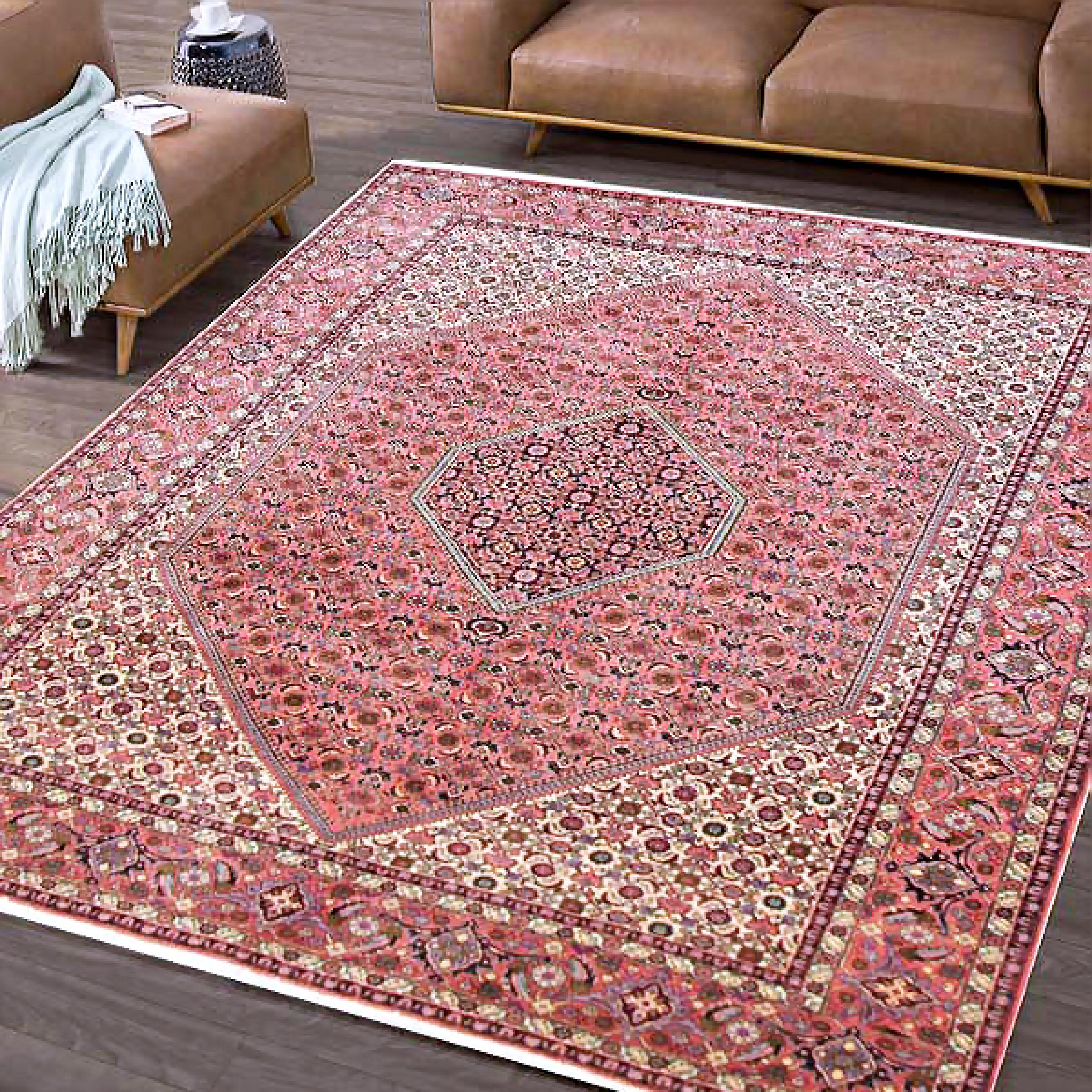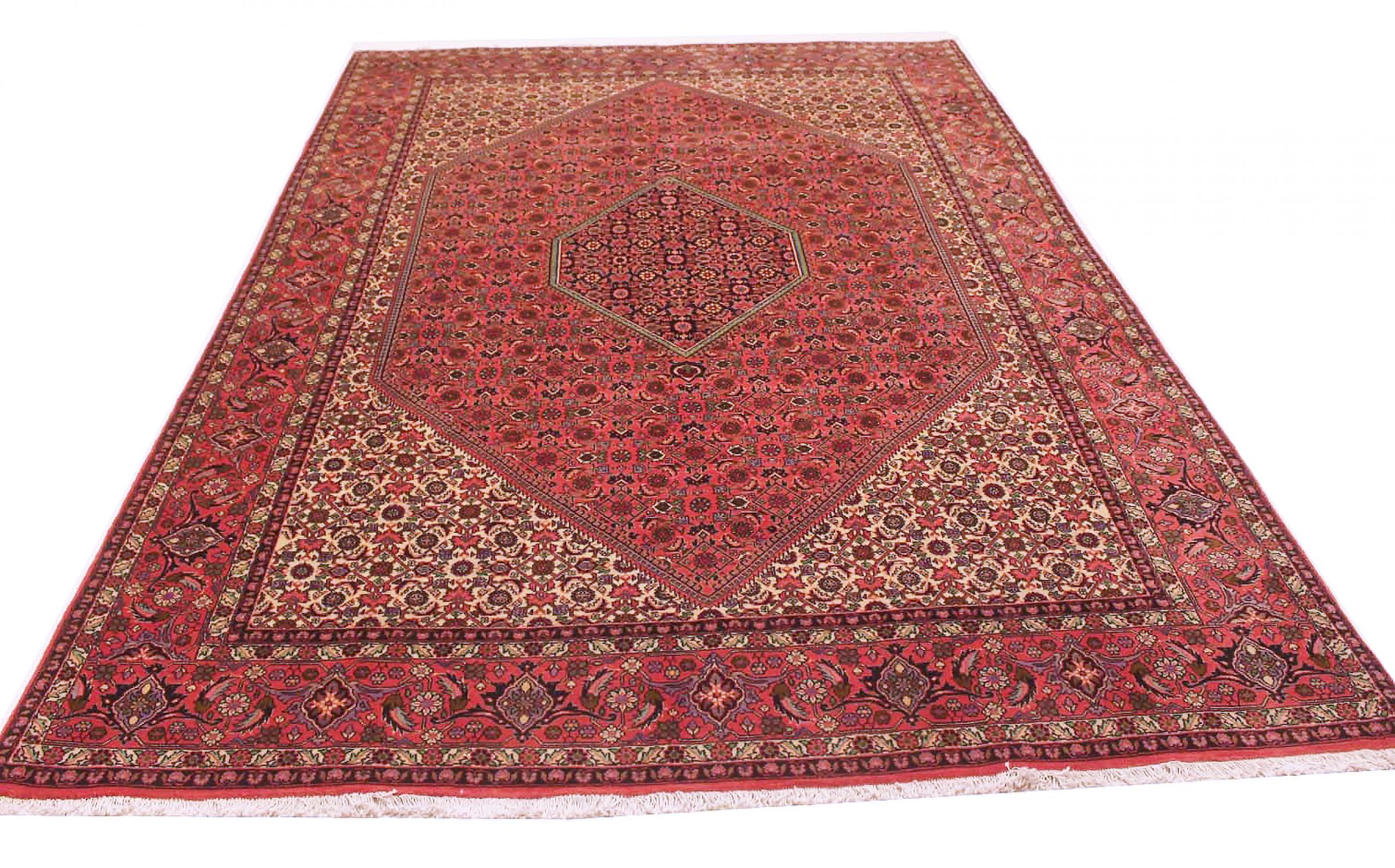 Bijar rugs are made by the Kurdish minority in Iran. The city of Bijar is known for its robust and high-quality Persian rugs. The pile of these carpets is tightly pressed together with a comb when knotting. In this way, dirt particles can hardly penetrate. At the same time, Bijar carpets are heavy and thick when compared to their Persian peers. Bijar rugs usually have a medallion in the middle and are decorated with the so-called Herati pattern. Bidjar carpets usually have a medallion in the middle and are designed with the famous Herati pattern.
