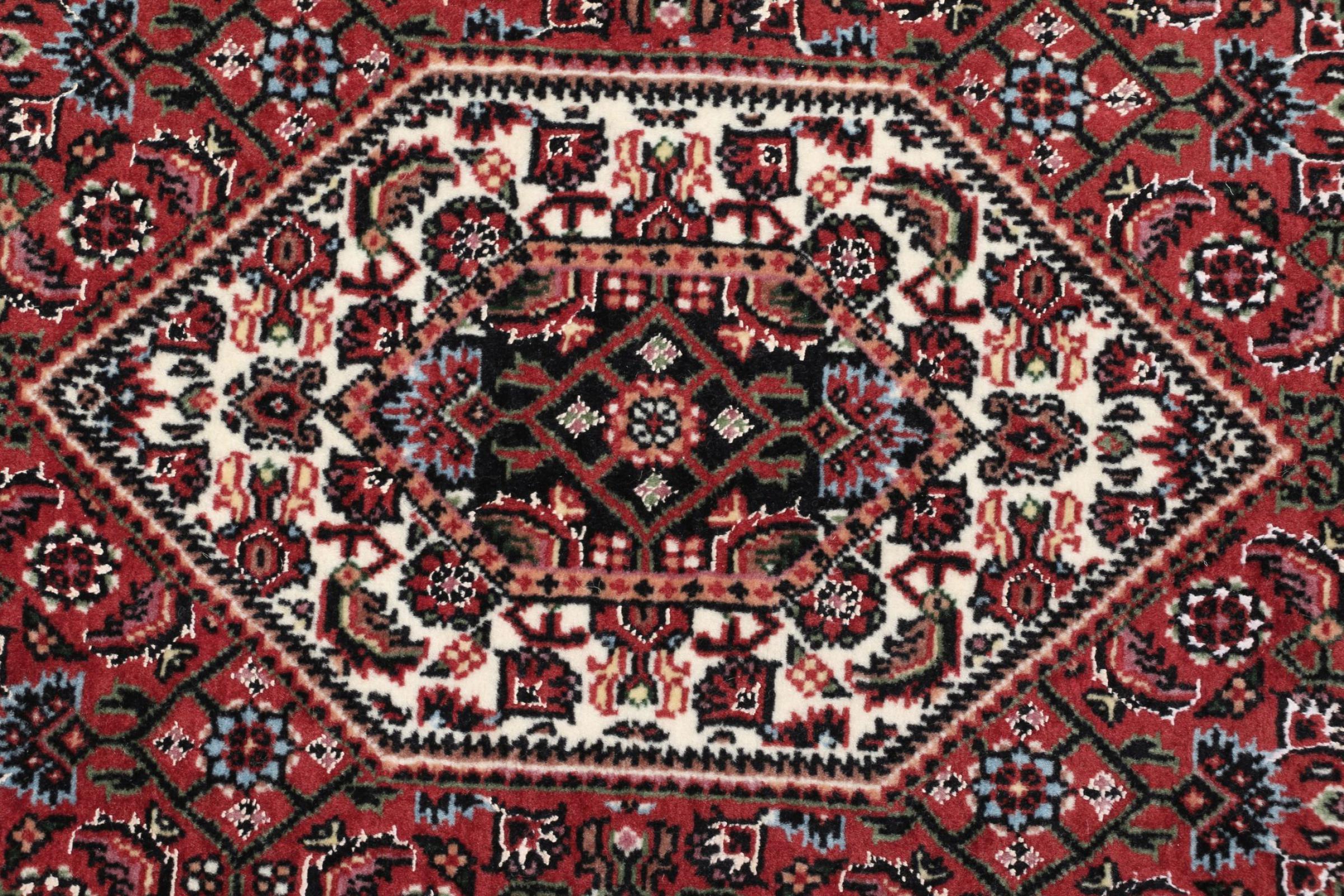 Bijar rugs are made by the Kurdish minority in Iran. The city of Bijar is known for its robust and high-quality Persian rugs. The pile of these carpets is tightly pressed together with a comb when knotting. In this way, dirt particles can hardly penetrate. At the same time, Bijar carpets are heavy and thick when compared to their Persian peers. Bijar rugs usually have a medallion in the middle and are decorated with the so-called Herati pattern. Bidjar carpets usually have a medallion in the middle and are designed with the famous Herati pattern.