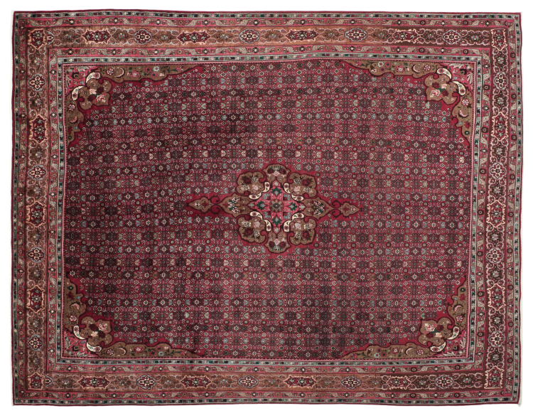 Bijar rugs are made by the Kurdish minority in Iran. The city of Bijar is known for its robust and high-quality Persian rugs. The pile of these carpets is tightly pressed together with a comb when knotting. In this way, dirt particles can hardly penetrate. At the same time, Bijar carpets are heavy and thick when compared to their Persian peers. Bijar rugs usually have a medallion in the middle and are decorated with the so-called Herati pattern. Bidjar carpets usually have a medallion in the middle and are designed with the famous Herati pattern.