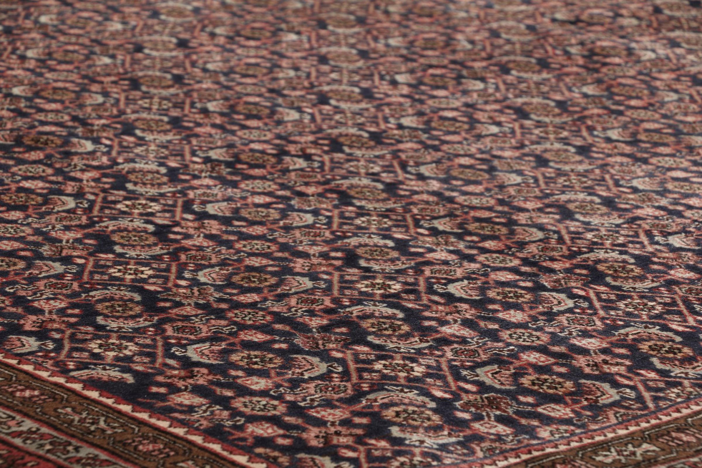 This Bidjar has been crafted in a small Kurdish town in Western Persia. This type of rugs represents a high quality and contemporary patterns. With geometric design elements it is trending again for modern interior concepts. Moreover, the rug's firm pile is extremely robust and dirt resilient. This Persian rug made by a Kurdish minority is an extraordinary piece for almost every room in your home.