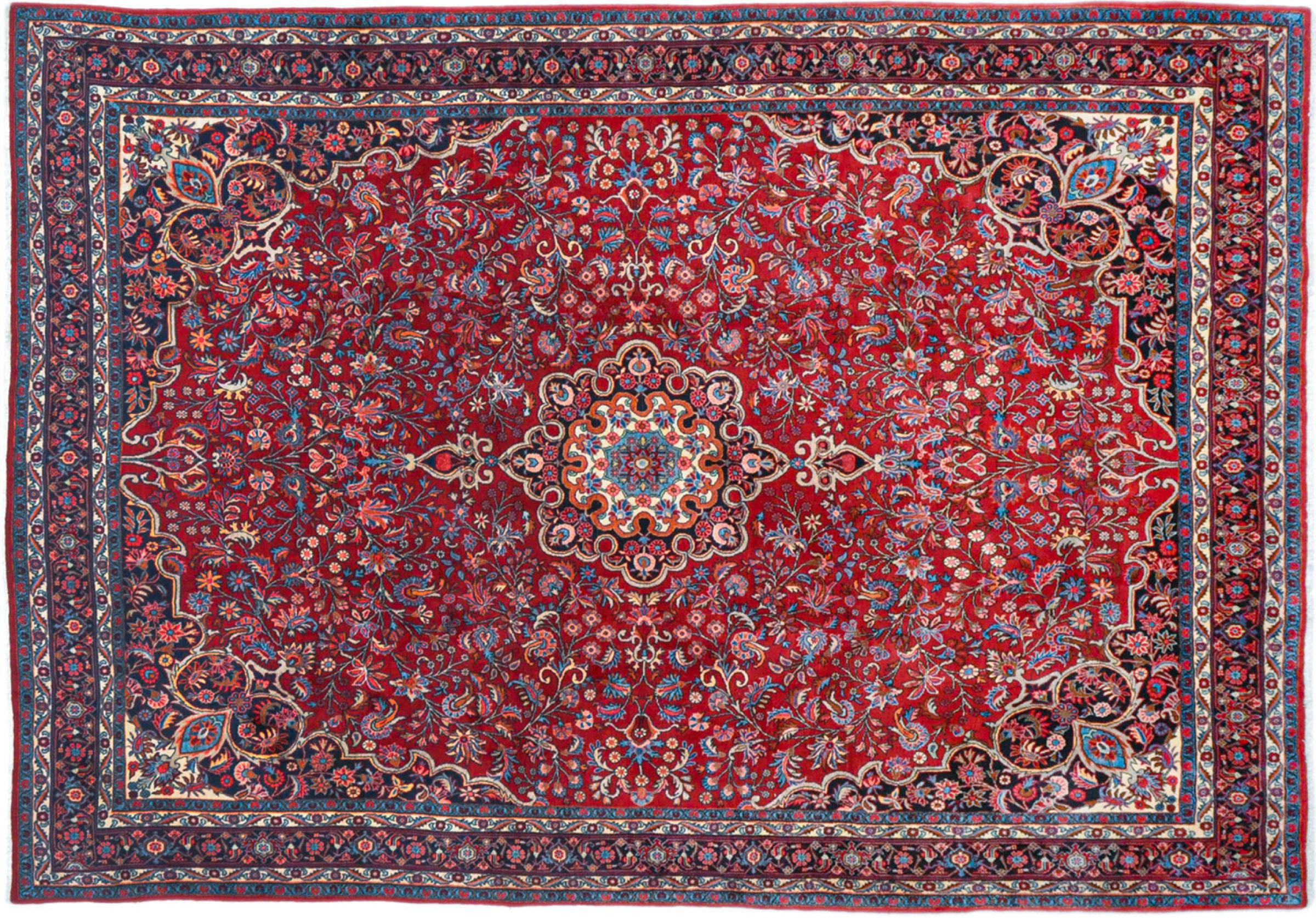 Bijar rugs are made by the Kurdish minority in Iran. The city of Bijar is known for its robust and high-quality Persian rugs. The pile of these carpets is tightly pressed together with a comb when knotting. In this way, dirt particles can hardly penetrate. At the same time, Bijar carpets are heavy and thick when compared to their Persian peers. Bijar rugs usually have a medallion in the middle and are decorated with the so-called Herati pattern. Bidjar carpets usually have a medallion in the middle and are designed with the famous Herati pattern.