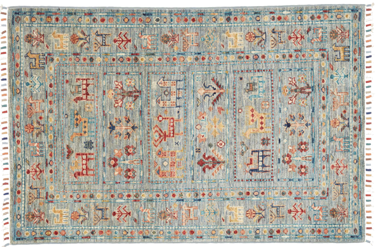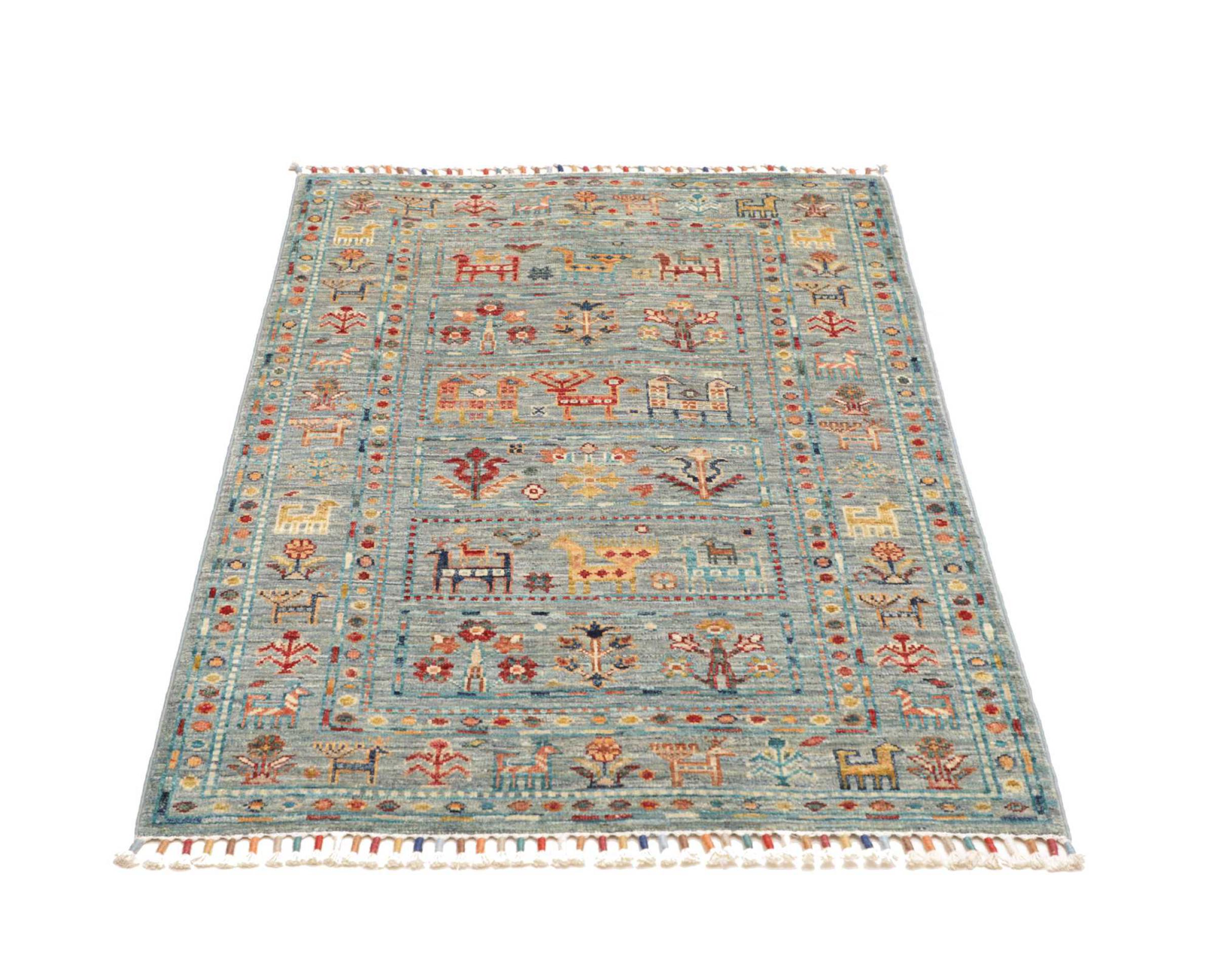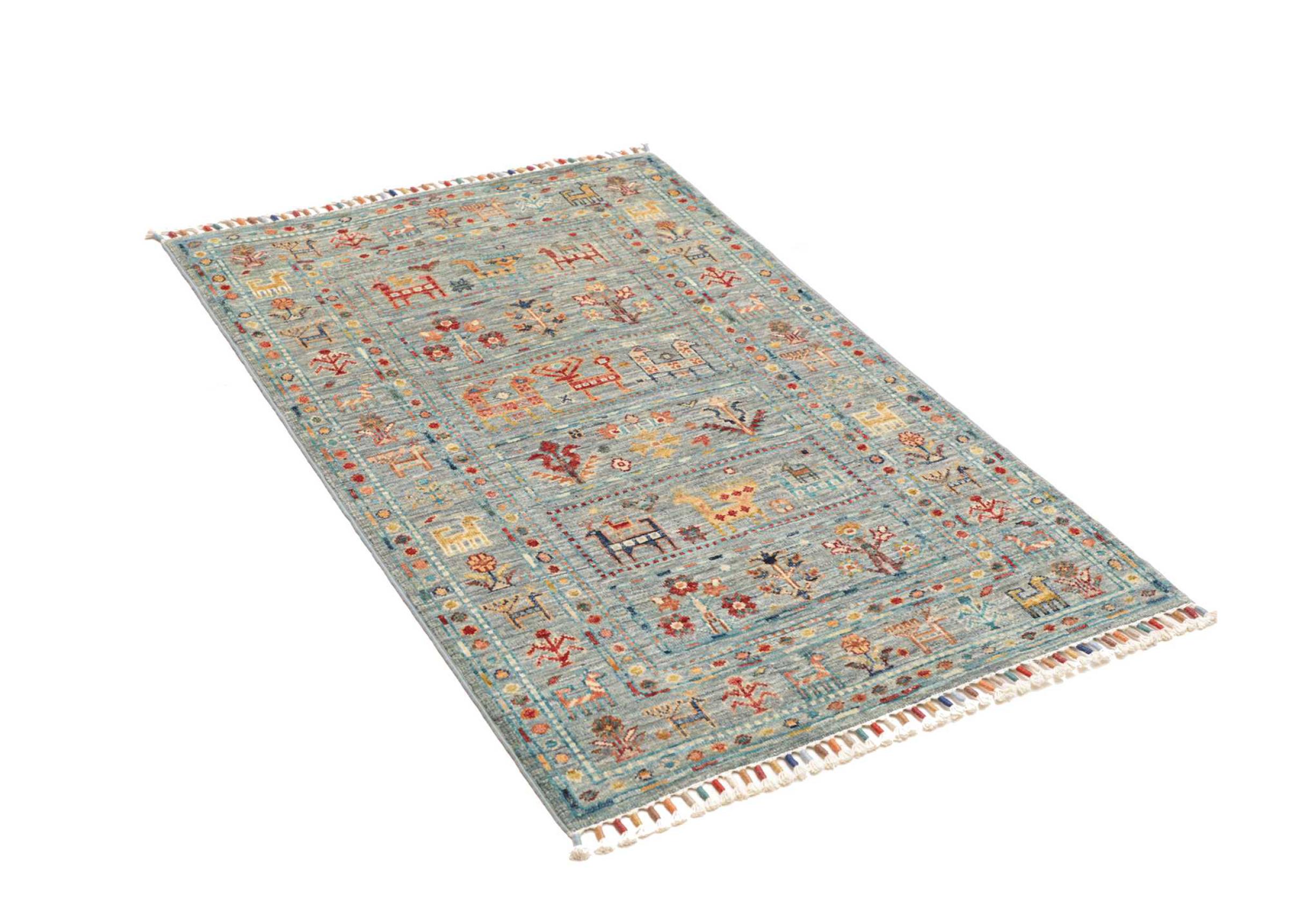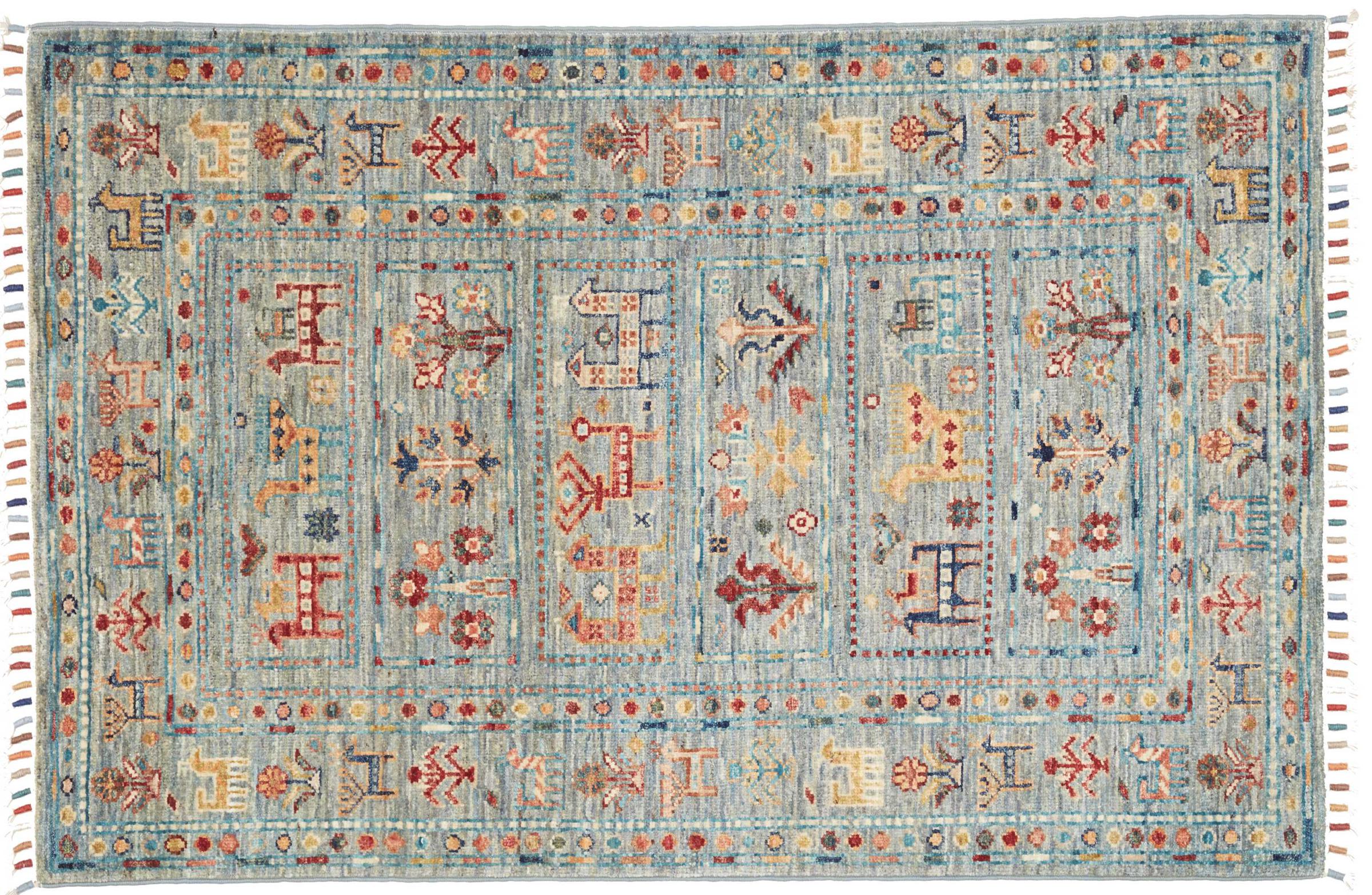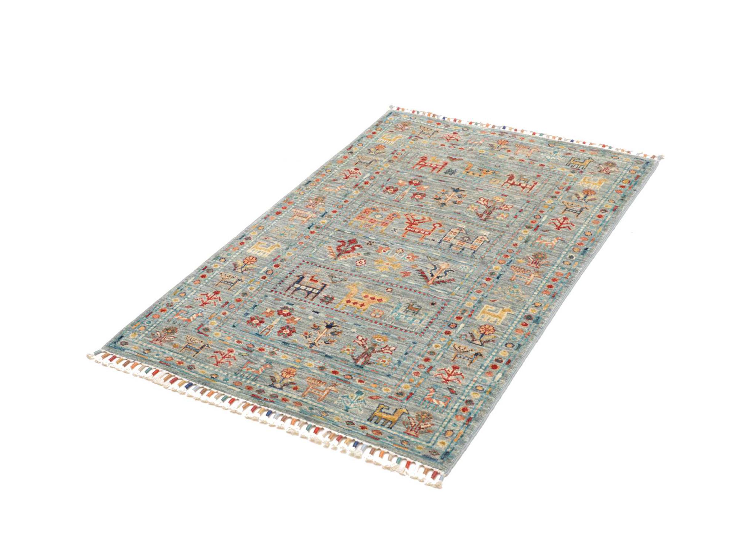 Rug ID: 306839001722514 Size: 3'11"x2'7" ft Thickness: ap. 0.2 in Knot density: 82 - 103 / square inch Manufacturing: Knotted by hand Pile: Handspun wool Warp: Cotton Origin: Pakistan Age: New Weight: ap. 7 lb In stock: Unique - Only 1 in stock