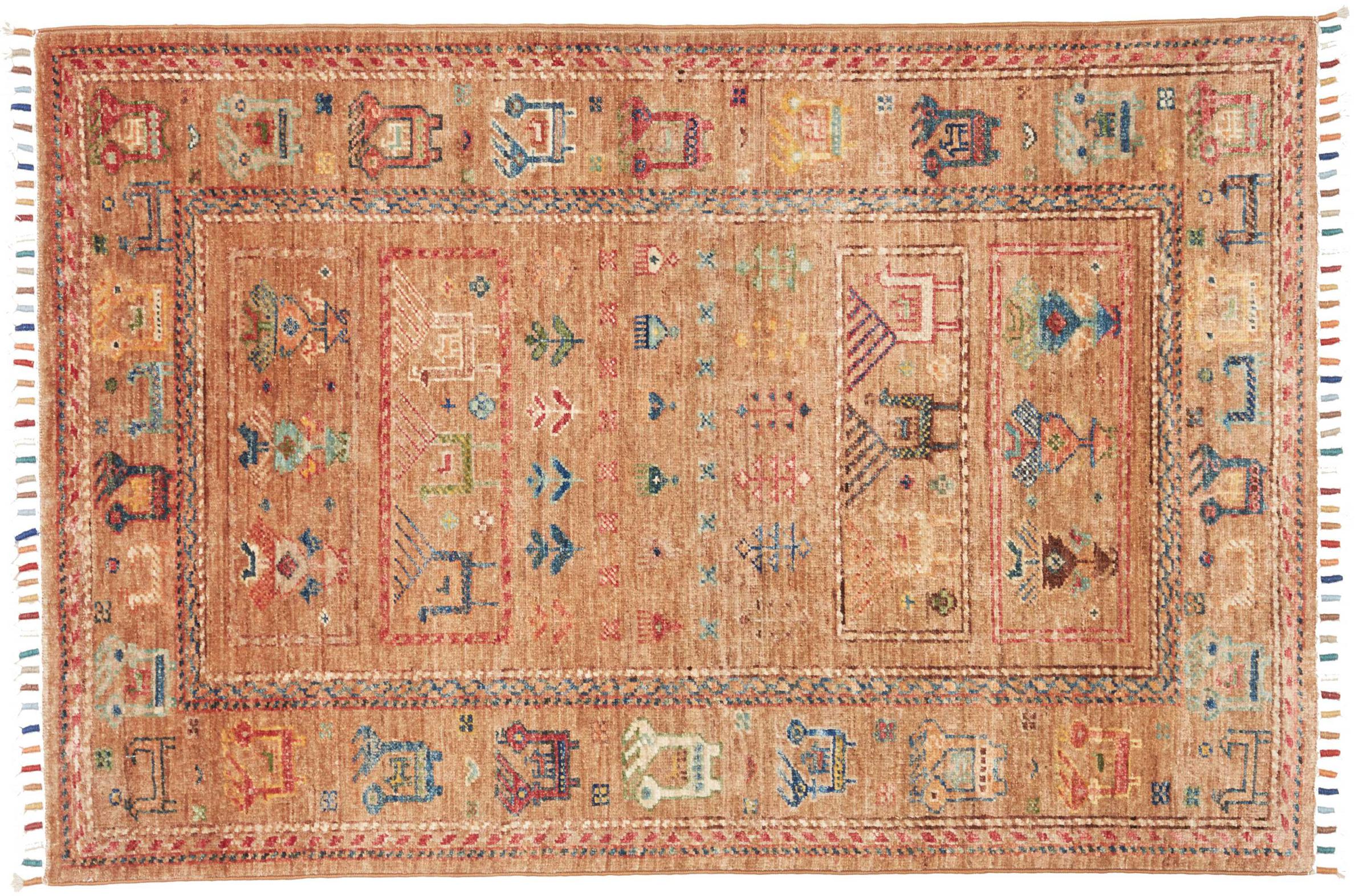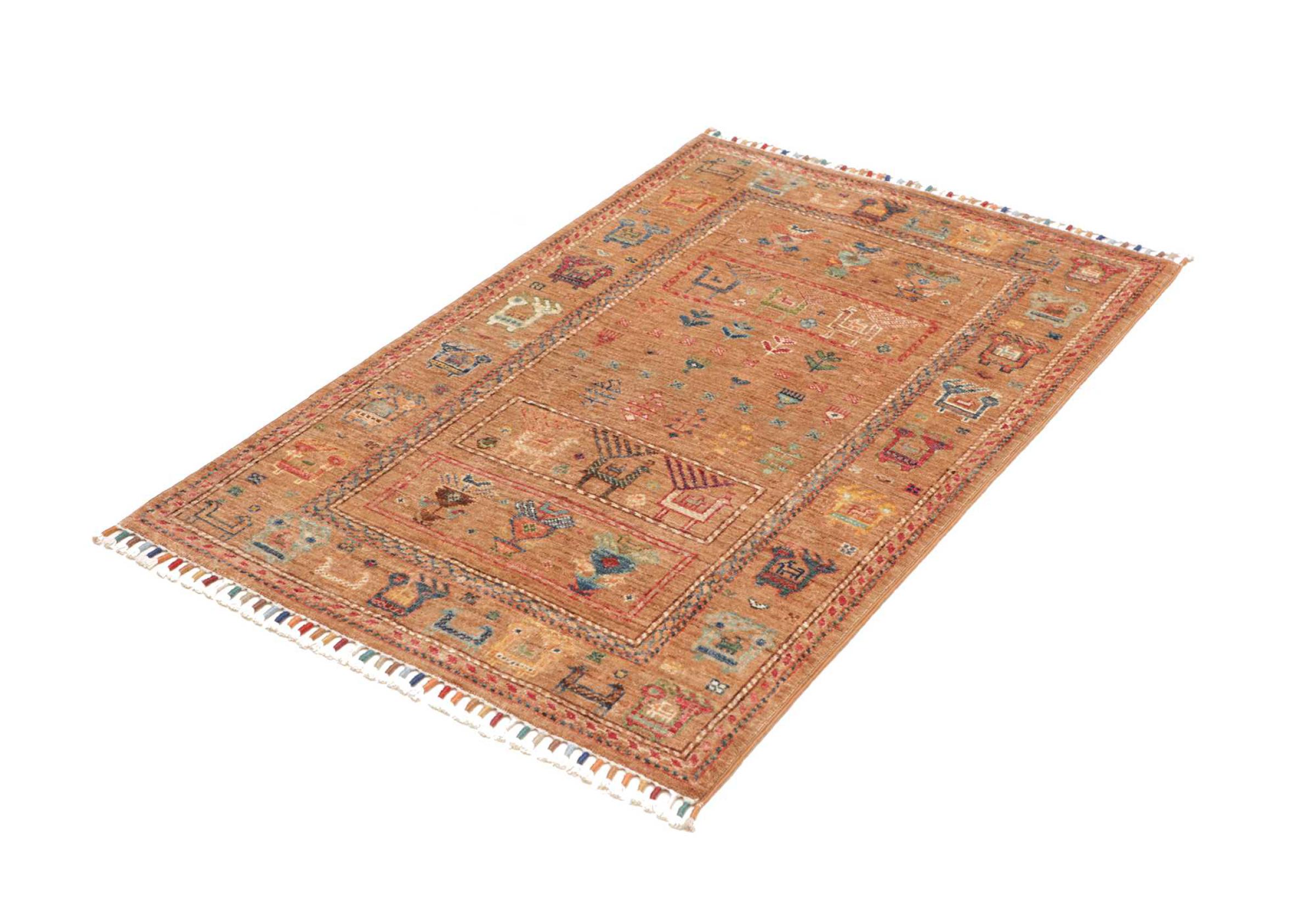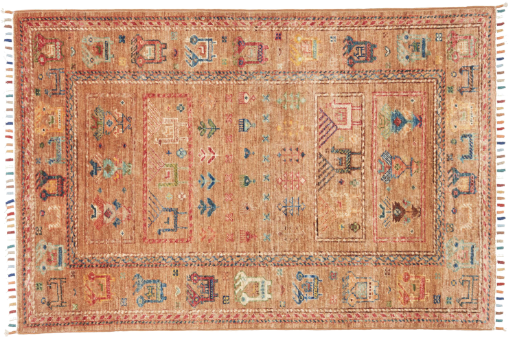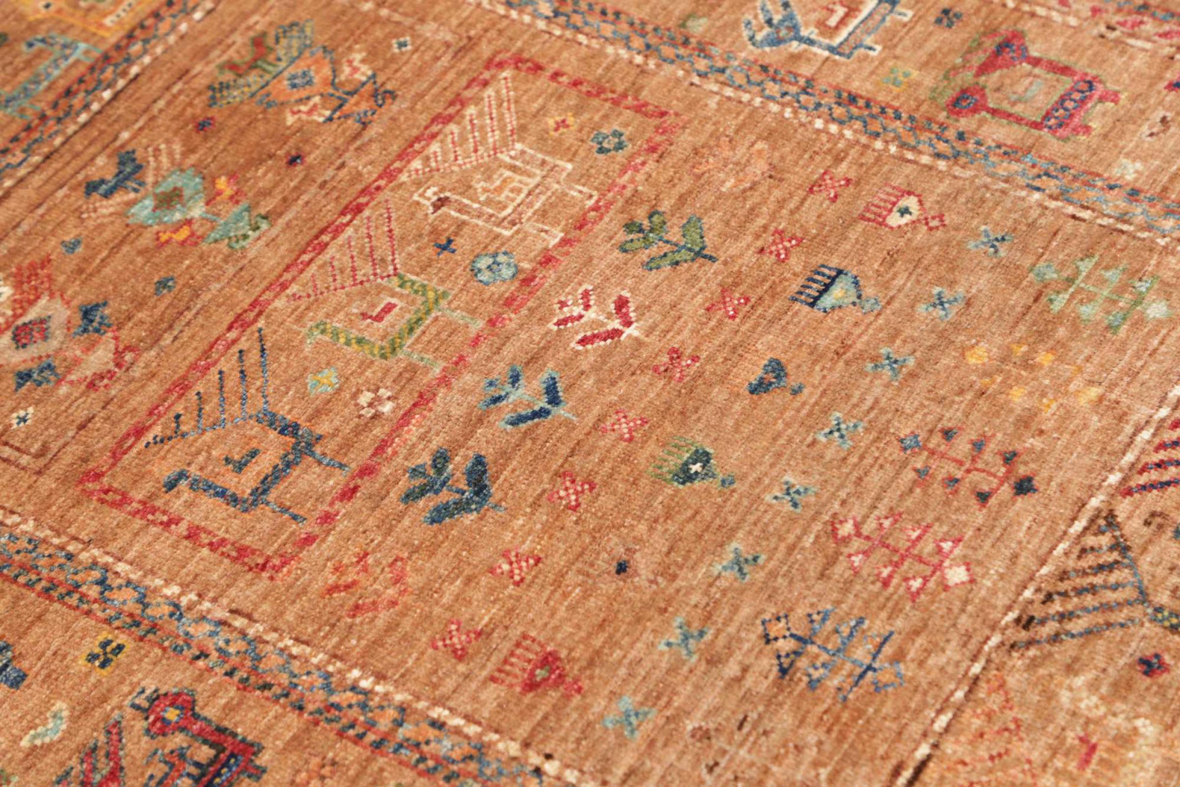 This rug is made of hand spun sheep wool of the highest quality. Especially in Iran (former Persia), Afghanistan and Pakistan wool is still spun by hand before the actual knotting of the rug begins. Wool has proven itself as a natural and extremely hard-wearing material over centuries. Among other things, it has dirt-repellent and heat-insulating properties. At the same time, wool is incomparably soft and has a natural shine.