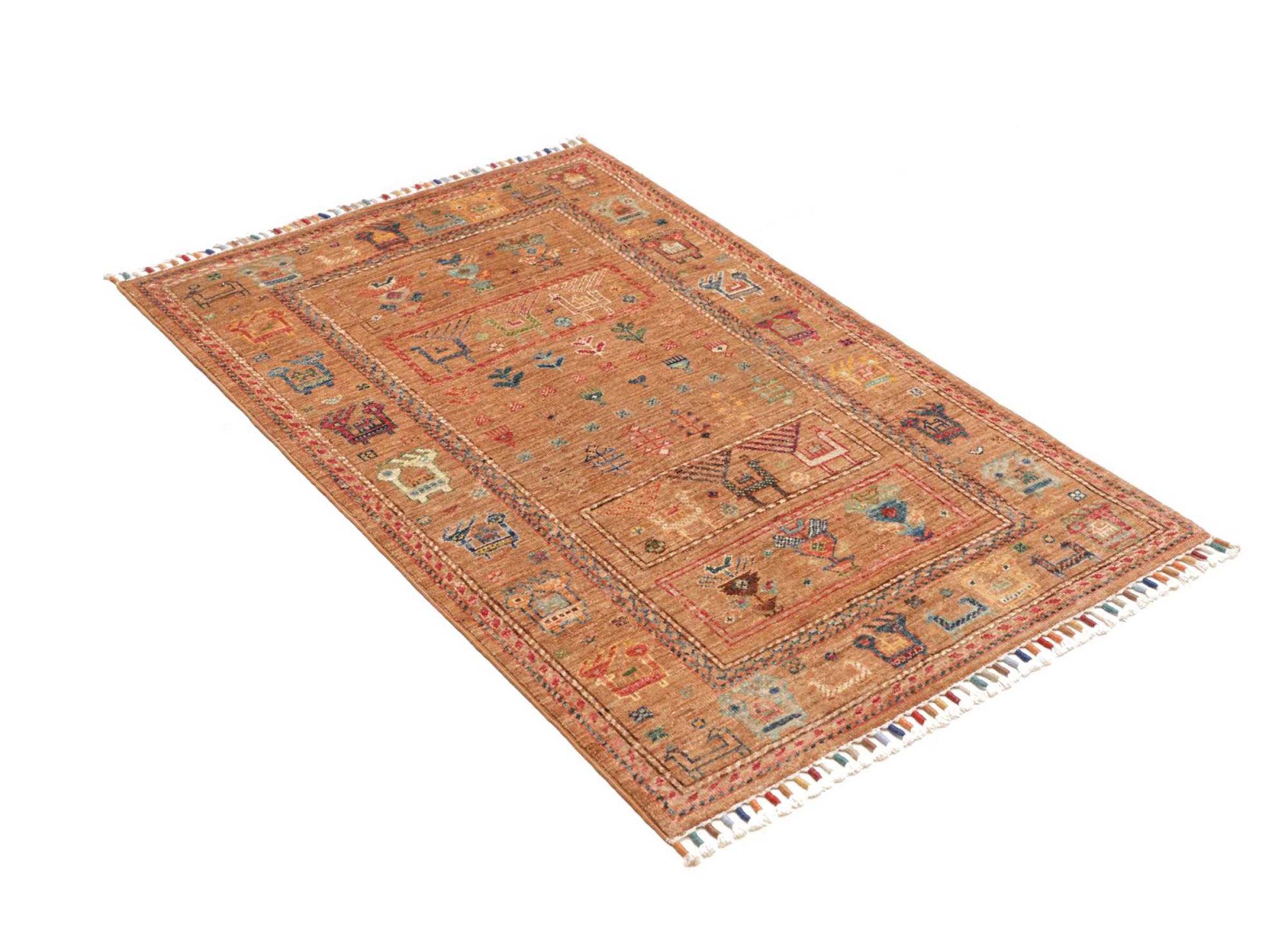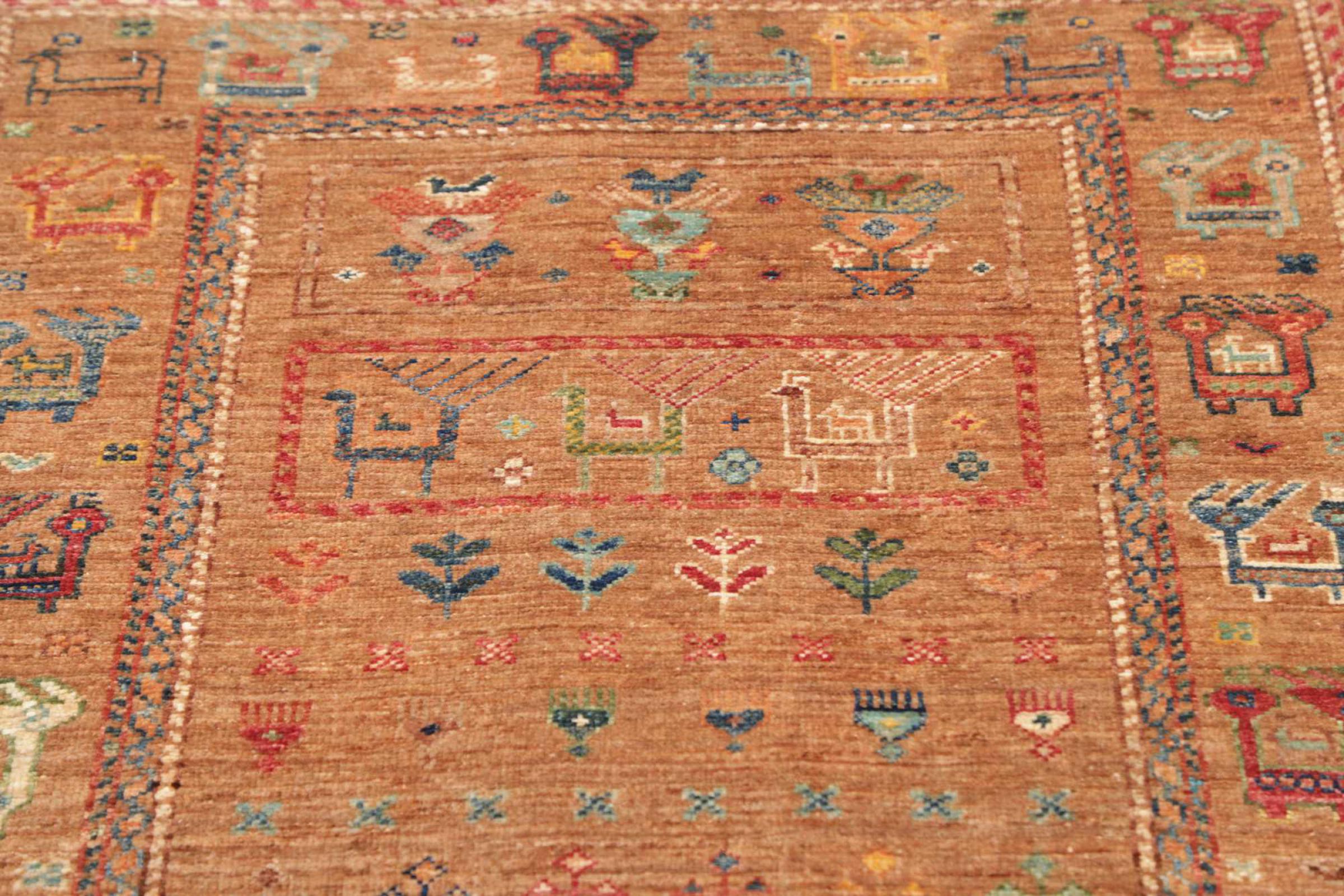 Rug ID: 306898007720315 Size: 4'0"x2'7" ft Thickness: ap. 0.2 in Knot density: 82 - 103 / square inch Manufacturing: Knotted by hand Pile: Handspun wool Warp: Cotton Origin: Pakistan Age: New Weight: ap. 7 lb In stock: Unique - Only 1 in stock