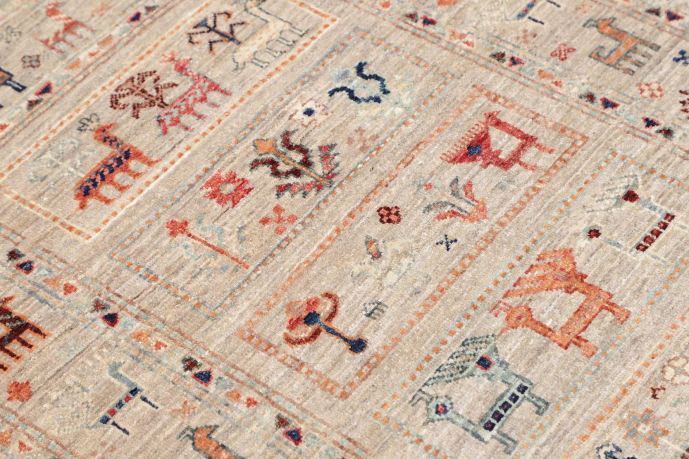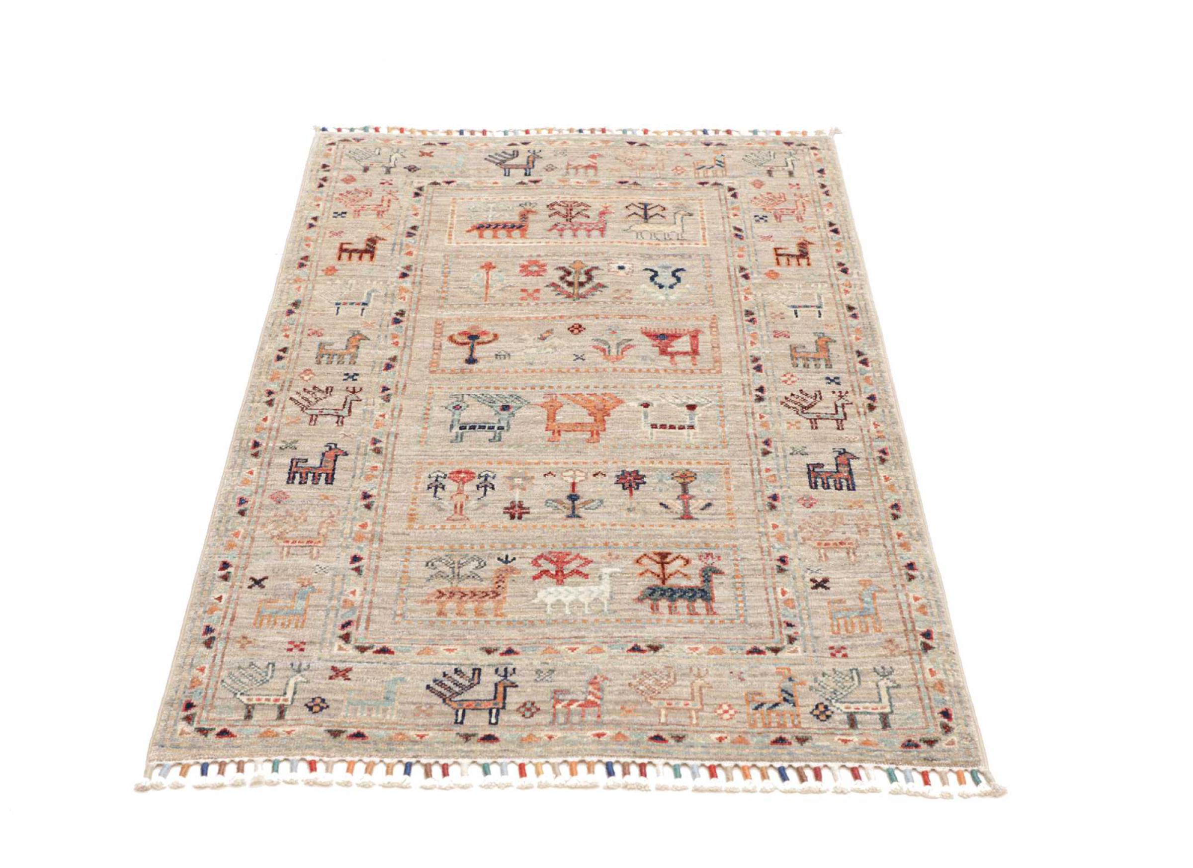 This rug is made of hand spun sheep wool of the highest quality. Especially in Iran (former Persia), Afghanistan and Pakistan wool is still spun by hand before the actual knotting of the rug begins. Wool has proven itself as a natural and extremely hard-wearing material over centuries. Among other things, it has dirt-repellent and heat-insulating properties. At the same time, wool is incomparably soft and has a natural shine.