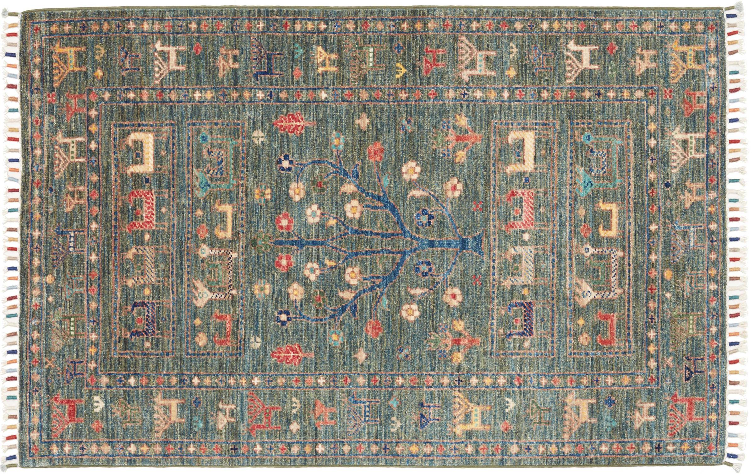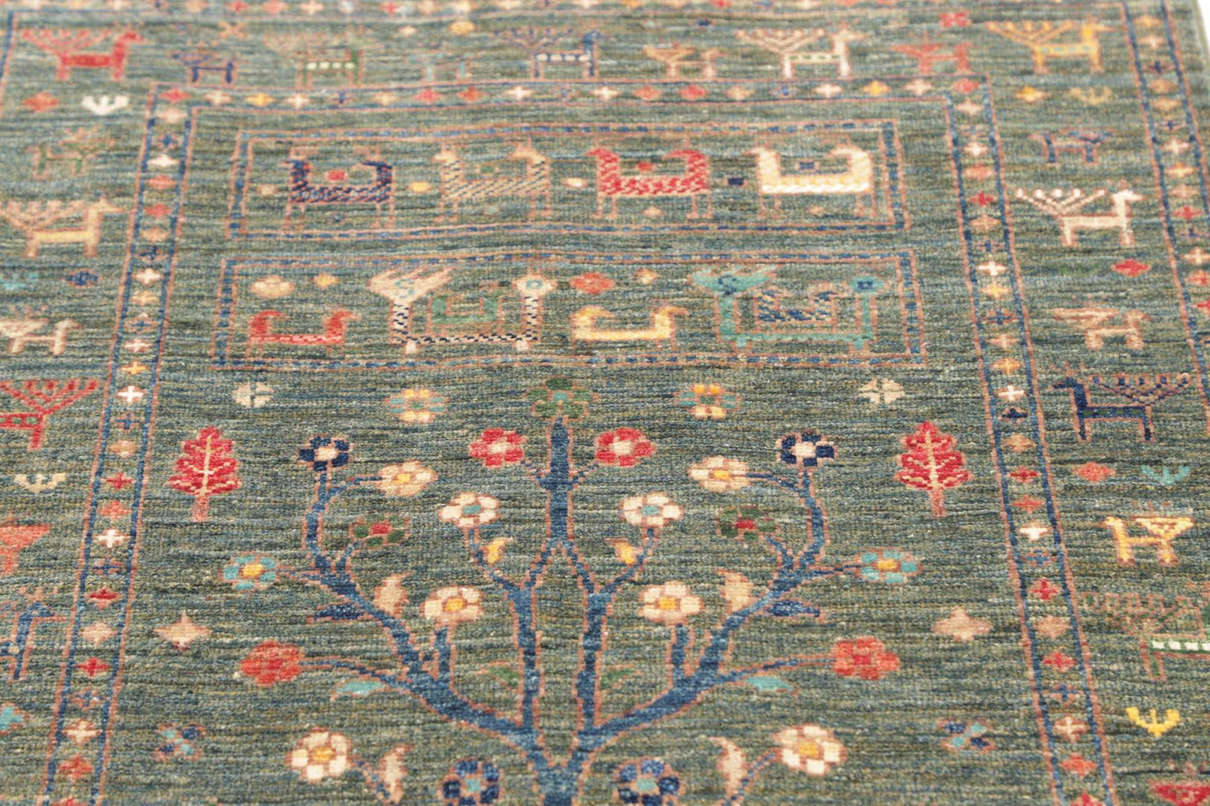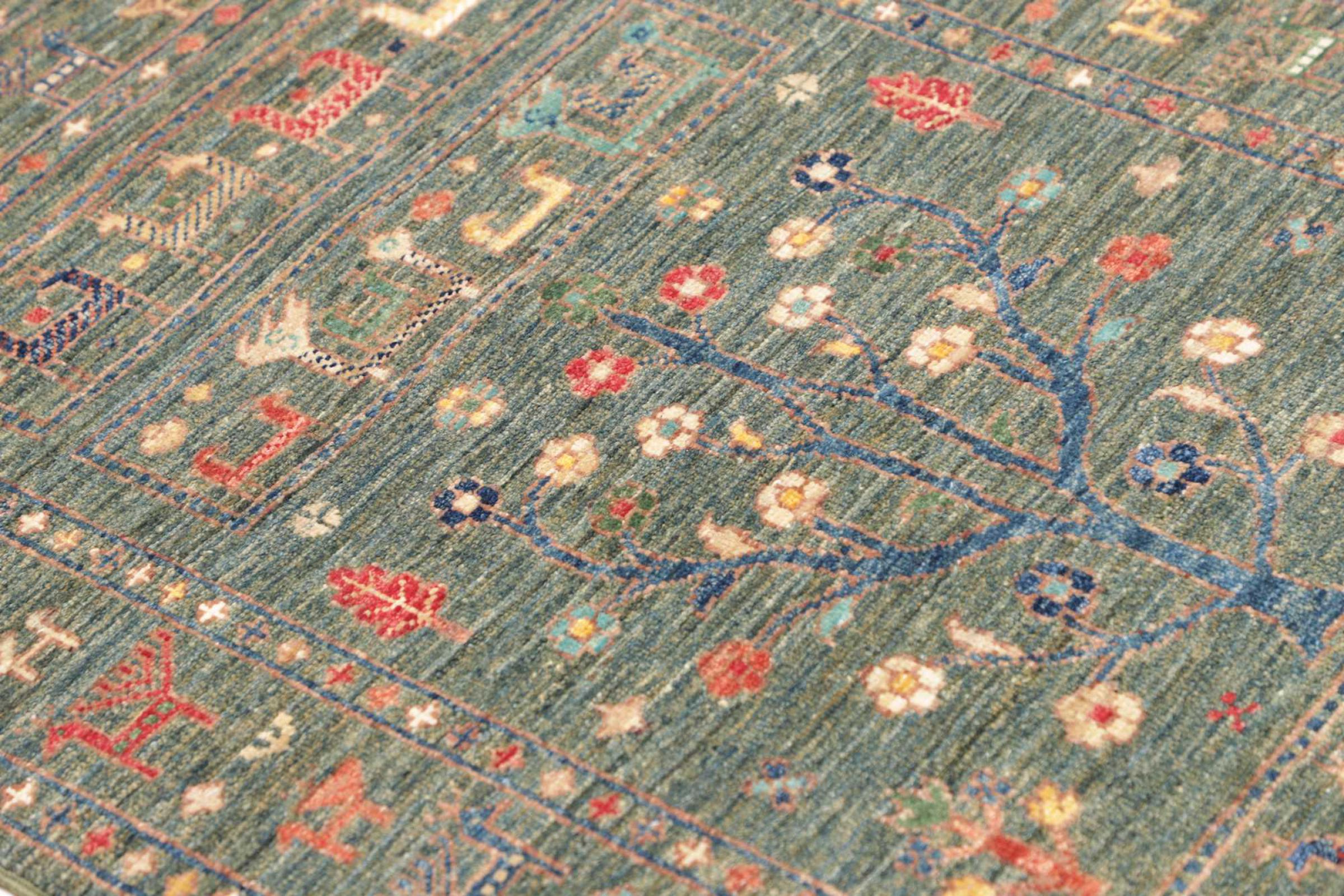 This rug is made of hand spun sheep wool of the highest quality. Especially in Iran (former Persia), Afghanistan and Pakistan wool is still spun by hand before the actual knotting of the rug begins. Wool has proven itself as a natural and extremely hard-wearing material over centuries. Among other things, it has dirt-repellent and heat-insulating properties. At the same time, wool is incomparably soft and has a natural shine.