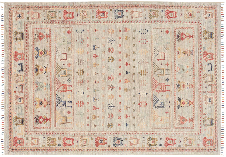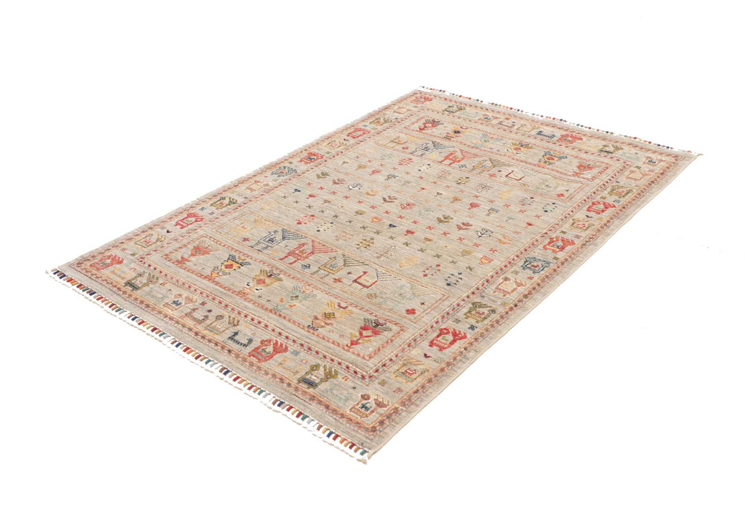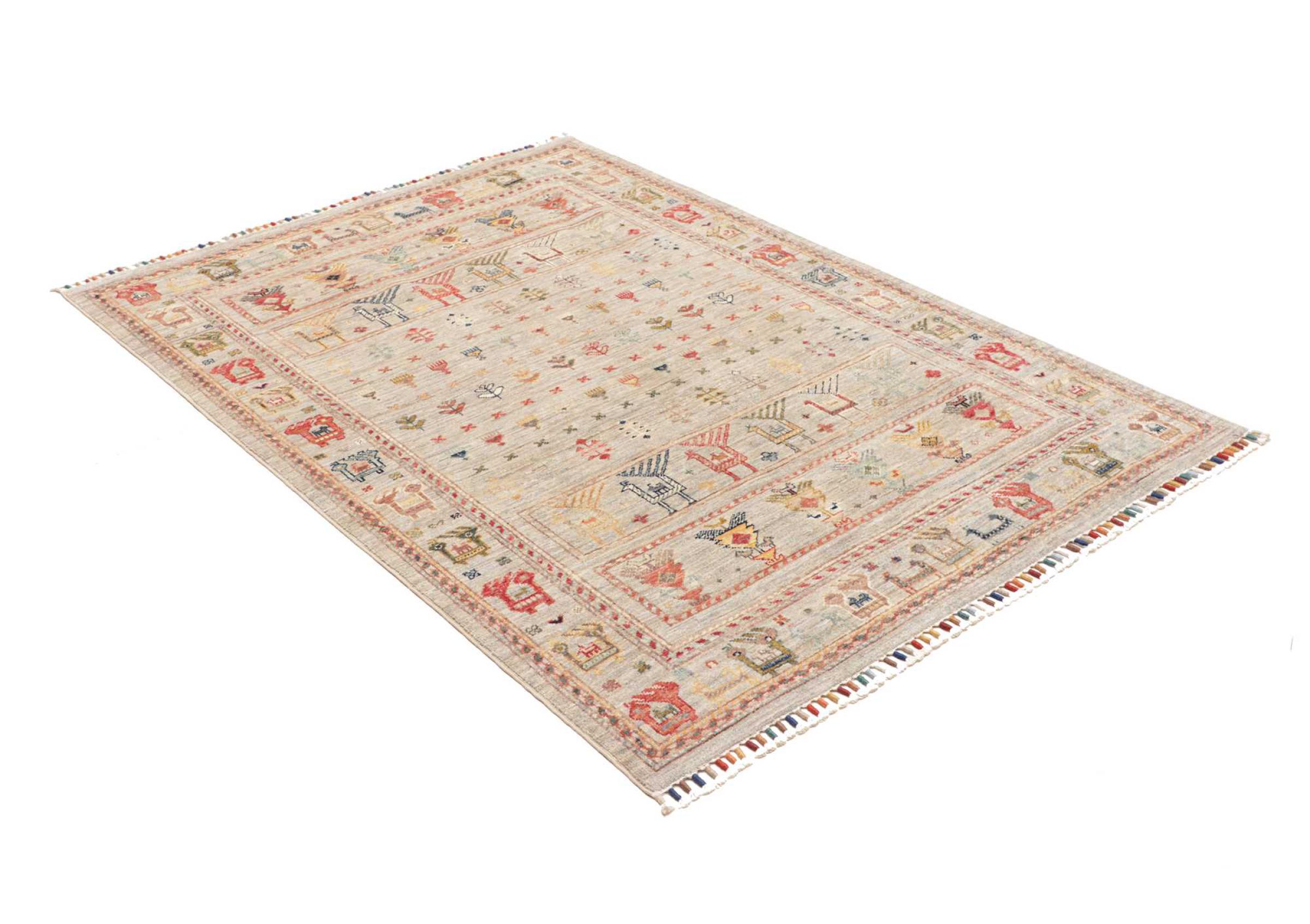 Rug ID: 306691005239440 Size: 5'8"x4'0" ft Thickness: ap. 0.2 in Knot density: 82 - 103 / square inch Manufacturing: Knotted by hand Pile: Handspun wool Warp: Cotton Origin: Pakistan Age: New Weight: ap. 15 lb In stock: Unique - Only 1 in stock
