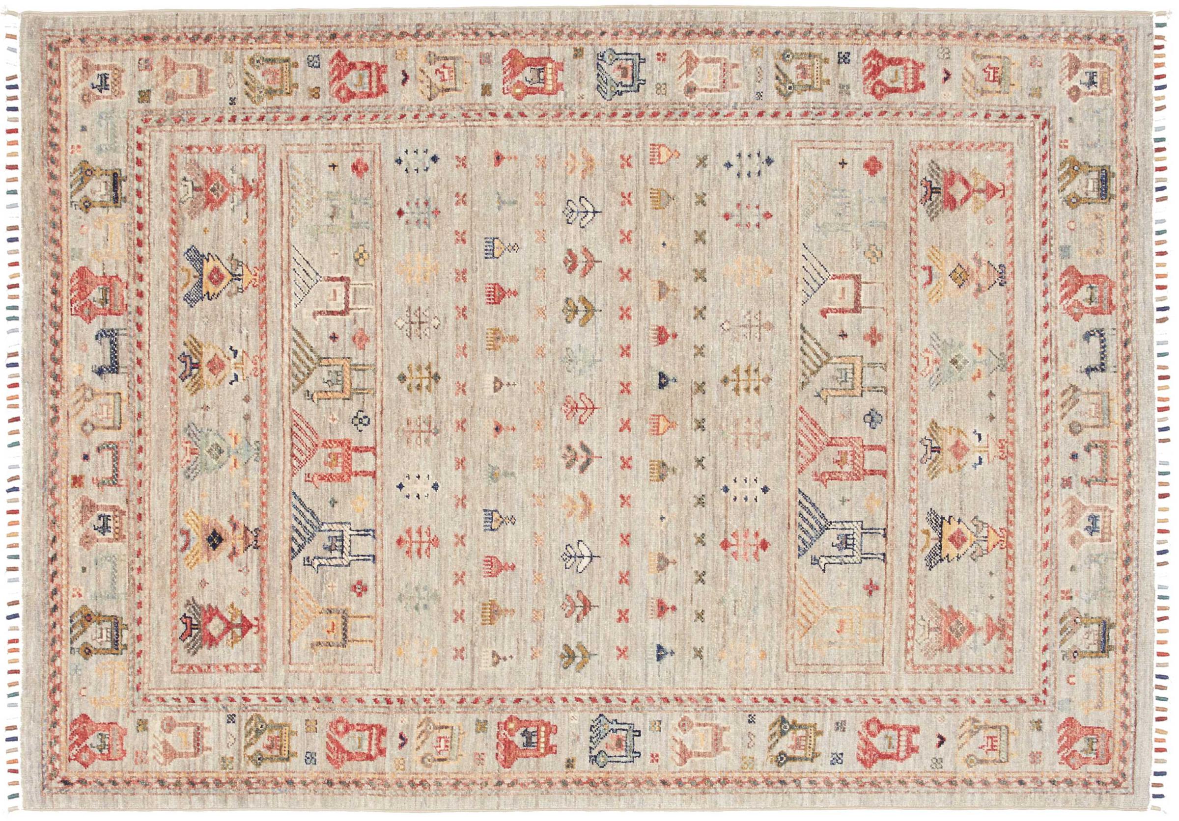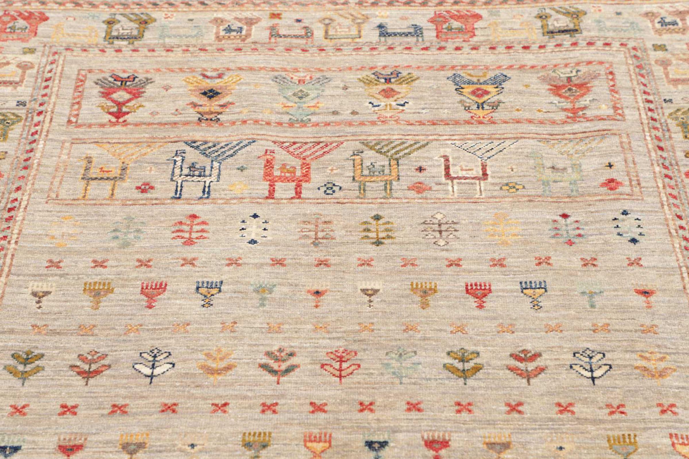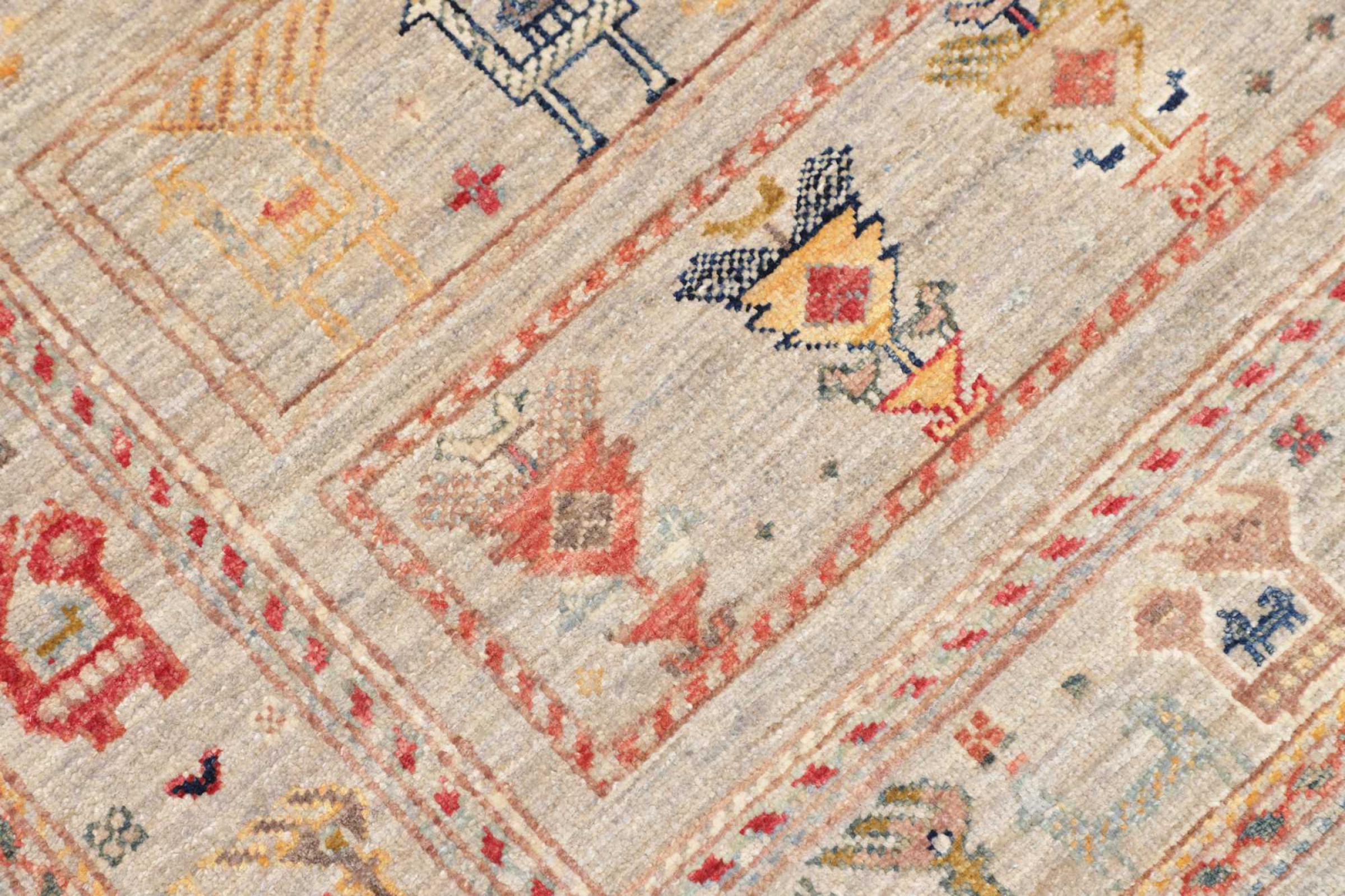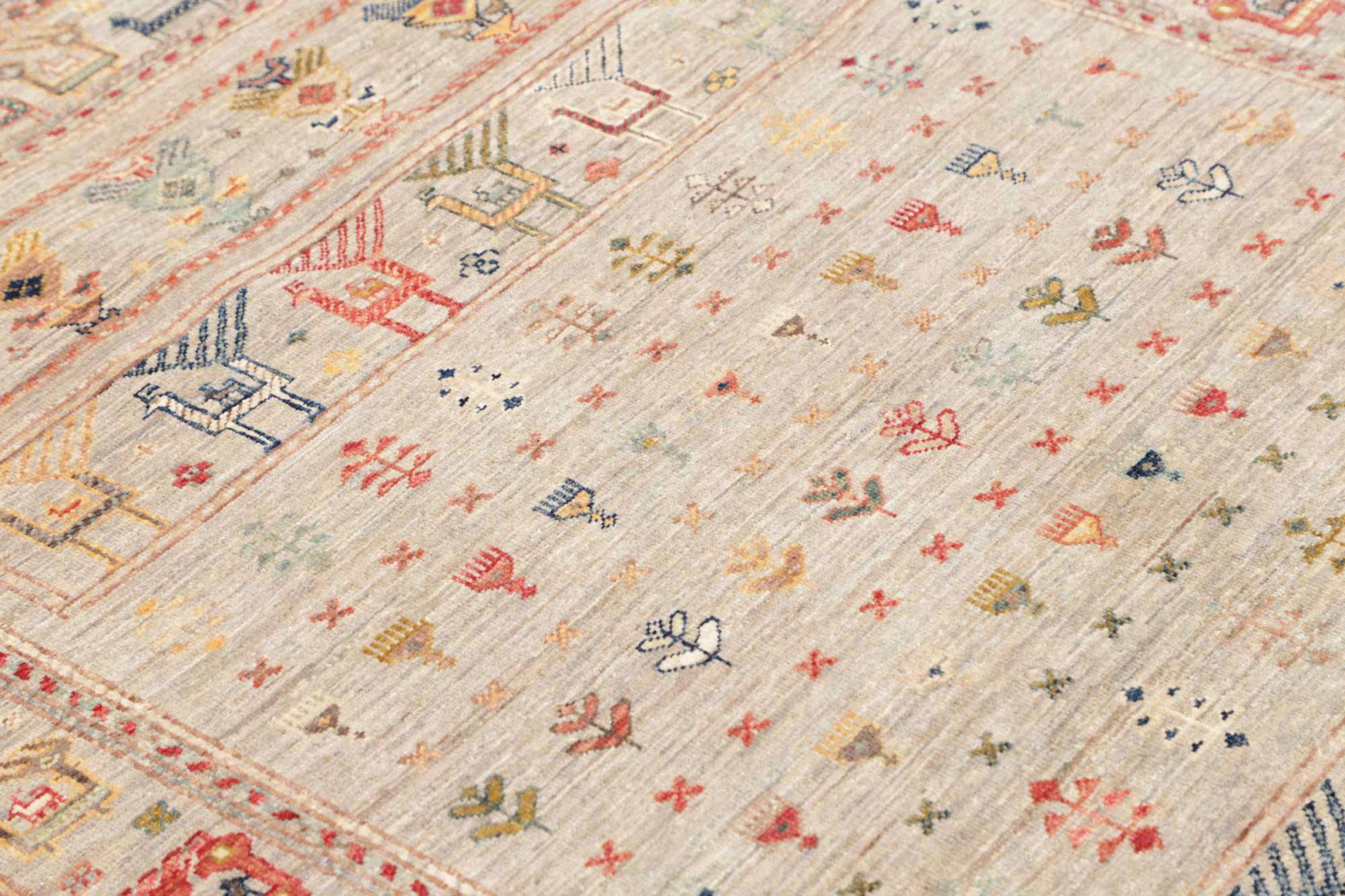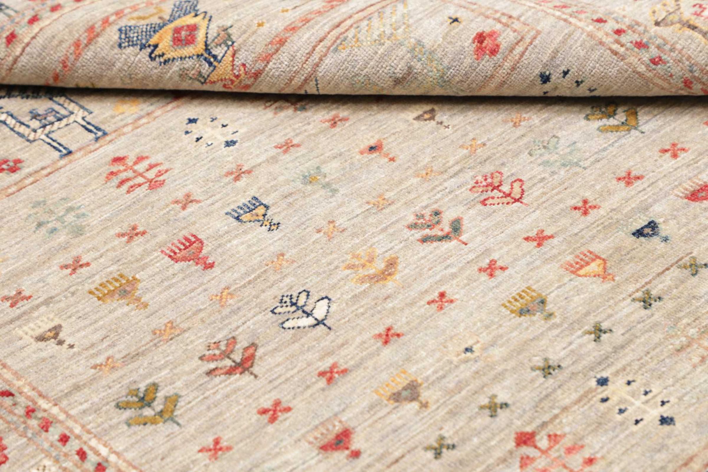 This rug is made of hand spun sheep wool of the highest quality. Especially in Iran (former Persia), Afghanistan and Pakistan wool is still spun by hand before the actual knotting of the rug begins. Wool has proven itself as a natural and extremely hard-wearing material over centuries. Among other things, it has dirt-repellent and heat-insulating properties. At the same time, wool is incomparably soft and has a natural shine.