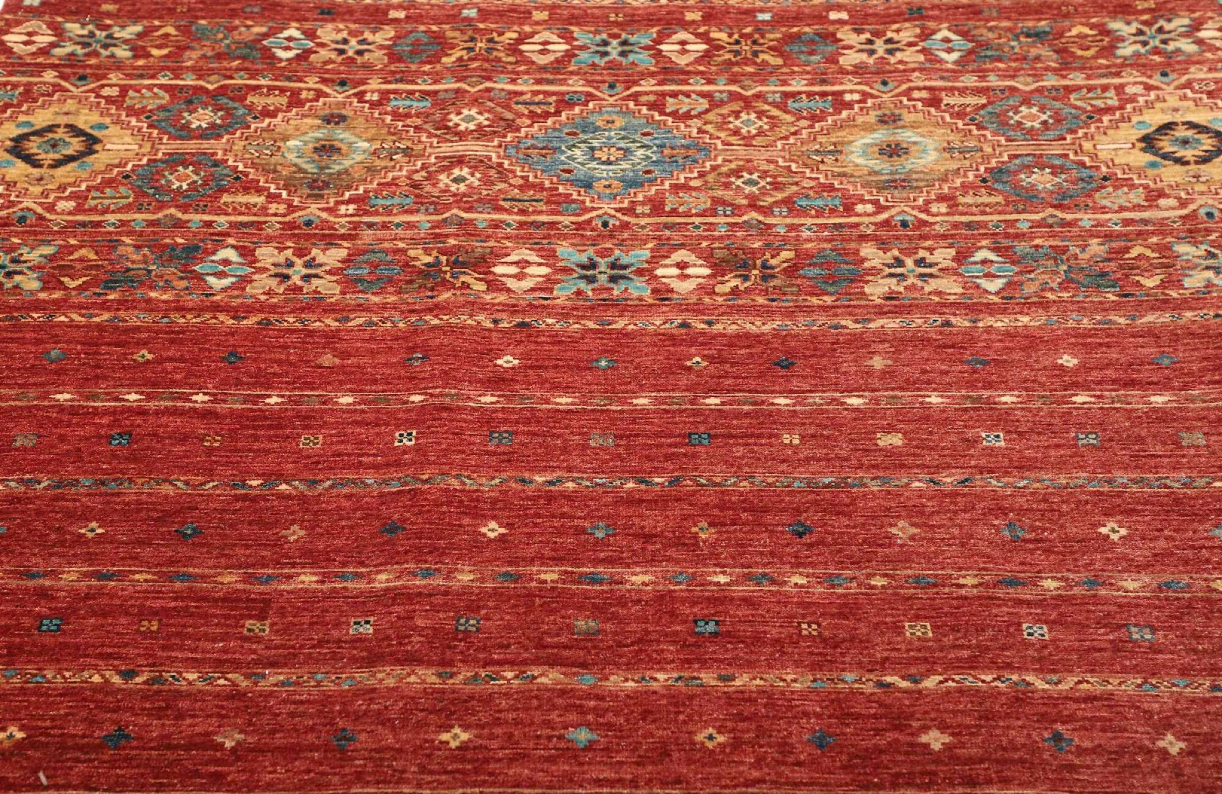 Rug ID: 306171002845707 Size: 6'7"x5'0" ft Thickness: ap. 0.2 in Knot density: 82 - 103 / square inch Manufacturing: Knotted by hand Pile: Handspun wool Warp: Cotton Origin: Pakistan Age: New Weight: ap. 24 lb In stock: Unique - Only 1 in stock