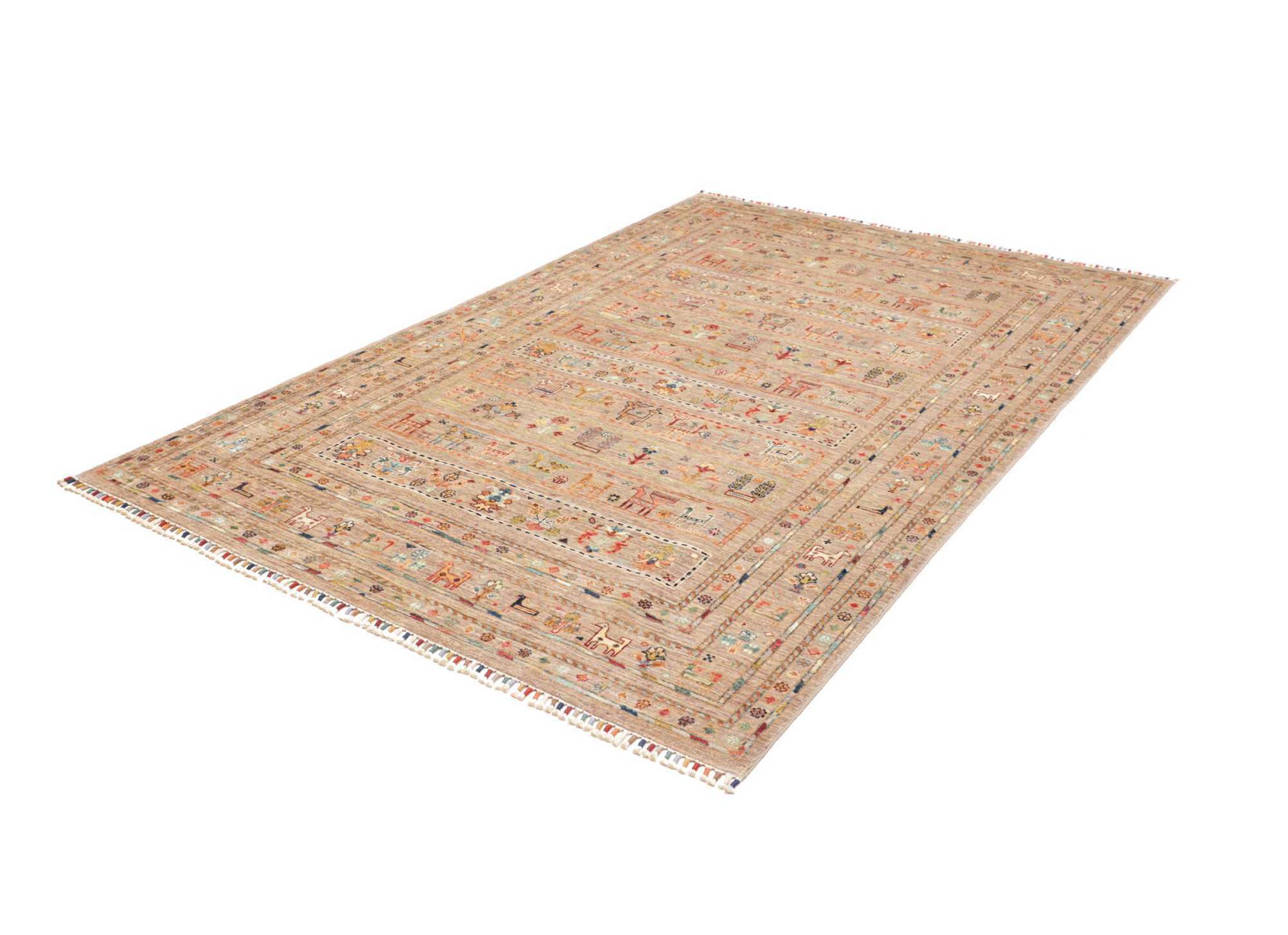 This rug is made of hand spun sheep wool of the highest quality. Especially in Iran (former Persia), Afghanistan and Pakistan wool is still spun by hand before the actual knotting of the rug begins. Wool has proven itself as a natural and extremely hard-wearing material over centuries. Among other things, it has dirt-repellent and heat-insulating properties. At the same time, wool is incomparably soft and has a natural shine.
