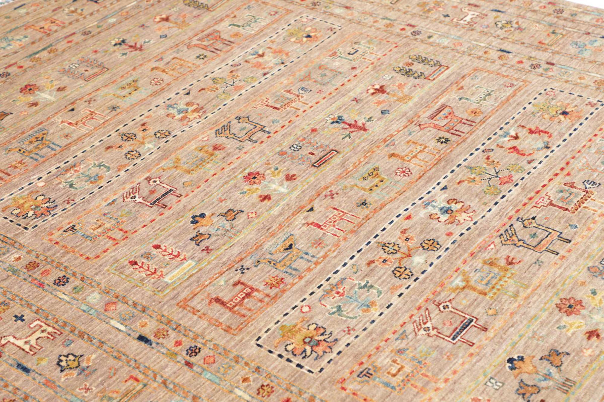 Rug ID: 306502004246848 Size: 7'10"x5'4" ft Thickness: ap. 0.2 in Knot density: 82 - 103 / square inch Manufacturing: Knotted by hand Pile: Handspun wool Warp: Cotton Origin: Pakistan Age: New Weight: ap. 31 lb In stock: Unique - Only 1 in stock