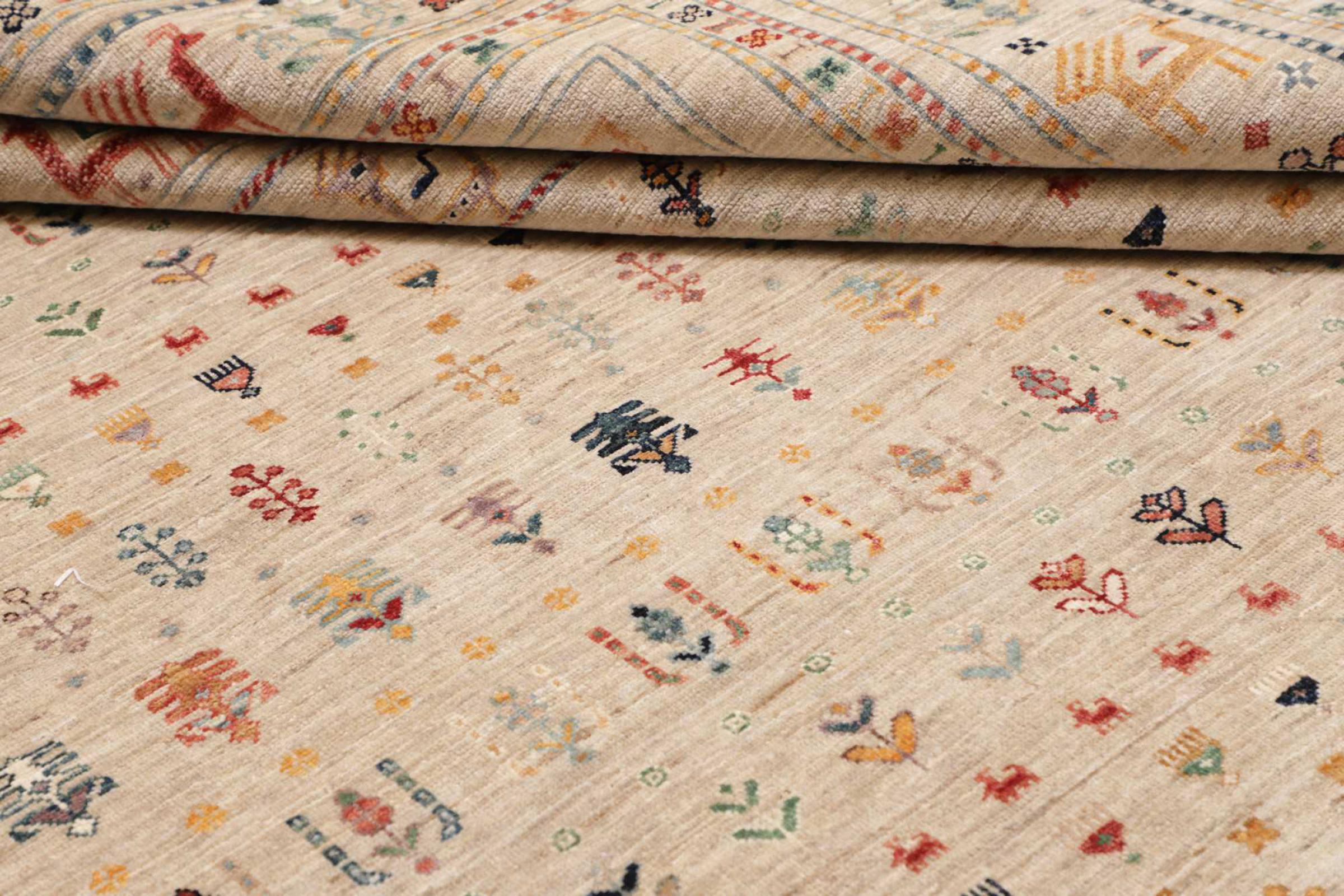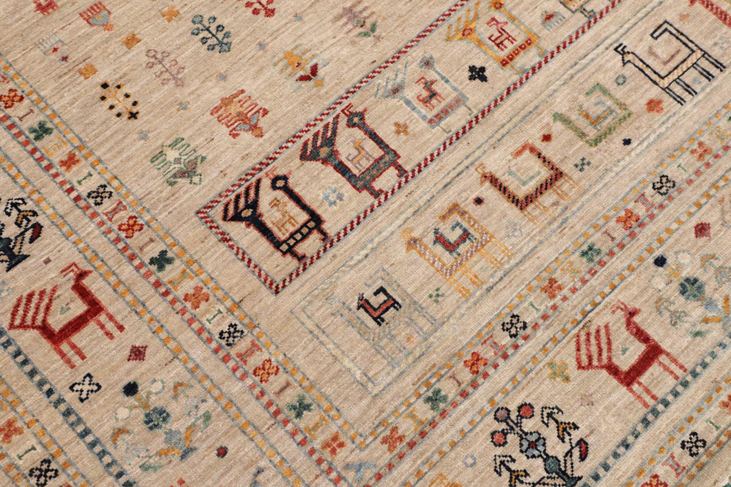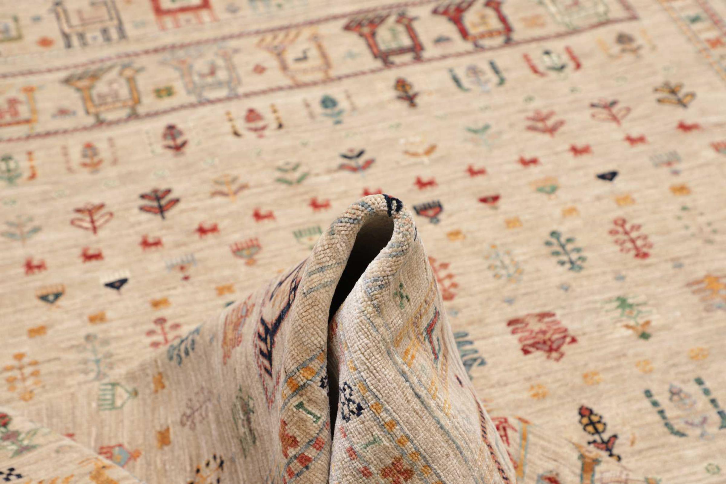This rug is made of hand spun sheep wool of the highest quality. Especially in Iran (former Persia), Afghanistan and Pakistan wool is still spun by hand before the actual knotting of the rug begins. Wool has proven itself as a natural and extremely hard-wearing material over centuries. Among other things, it has dirt-repellent and heat-insulating properties. At the same time, wool is incomparably soft and has a natural shine.